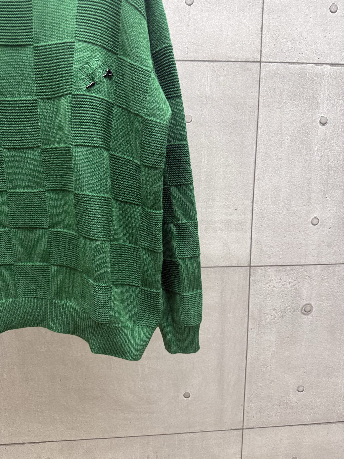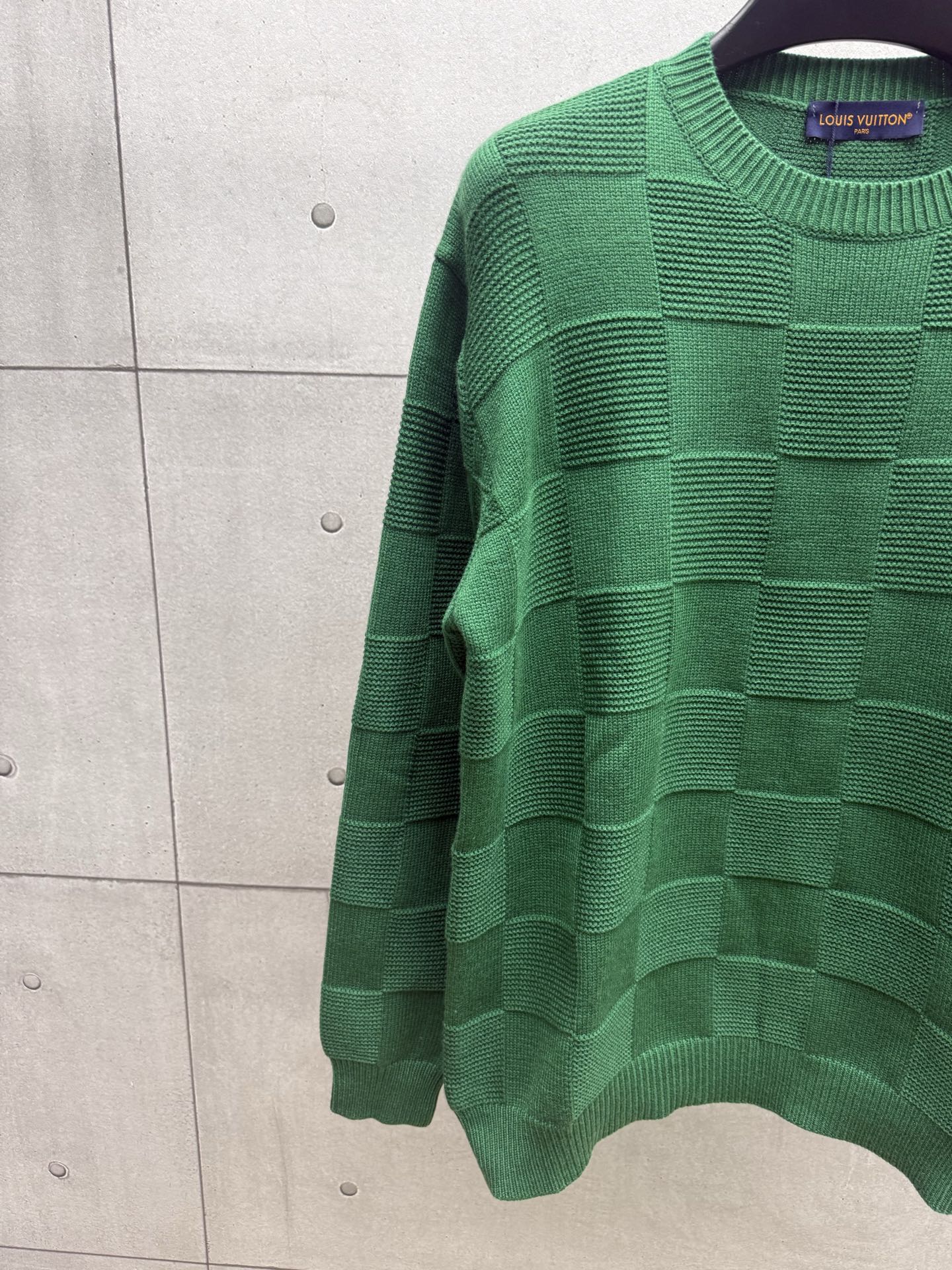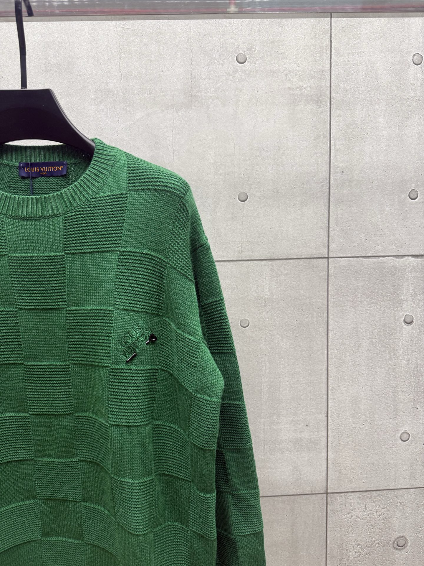 Louis Vuitton 24FW Green Wool Damier Knit Sweater with Pin Detail
