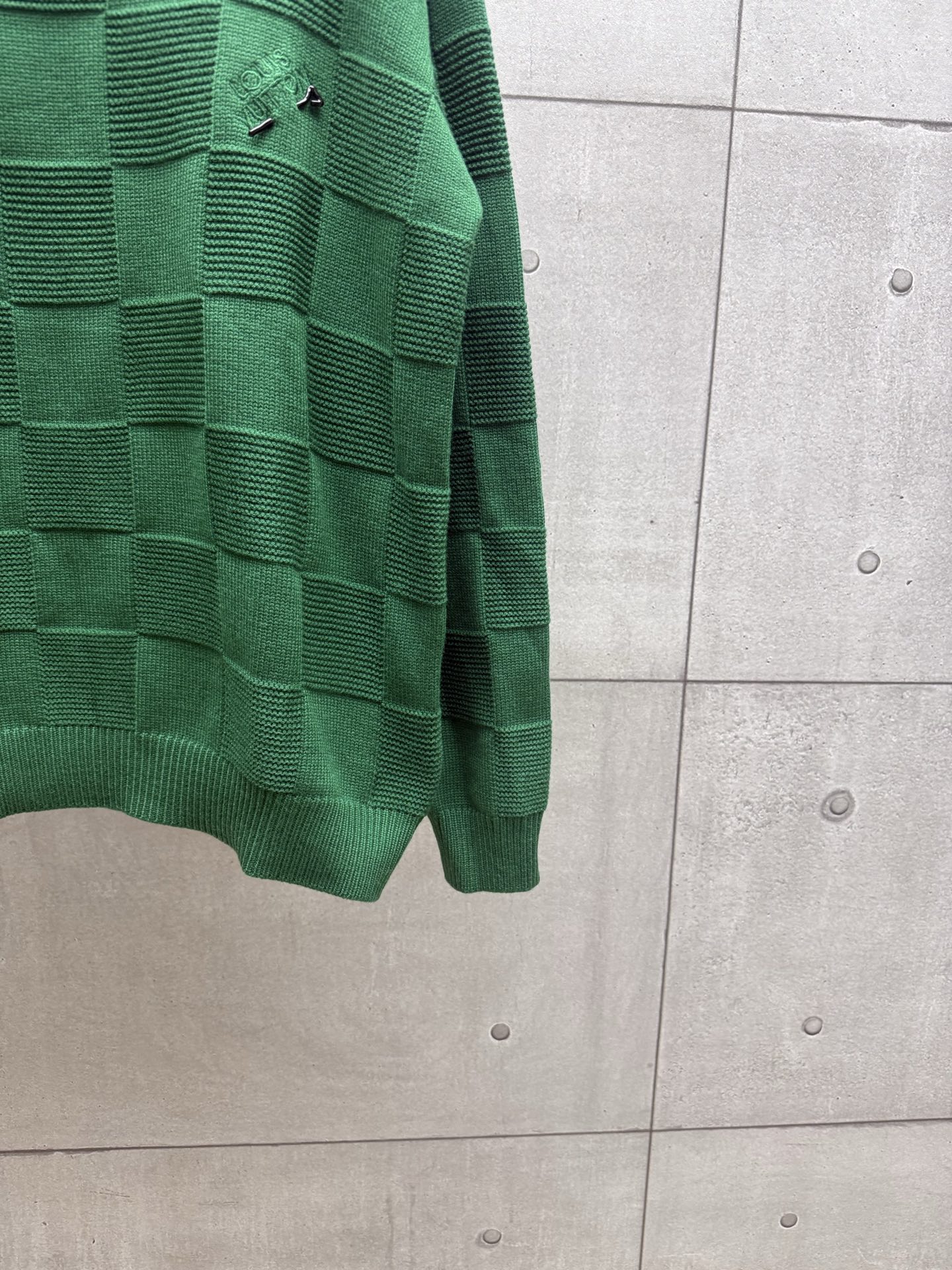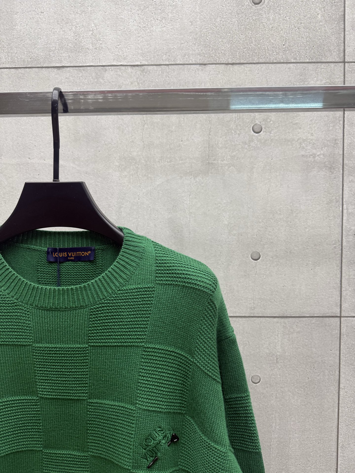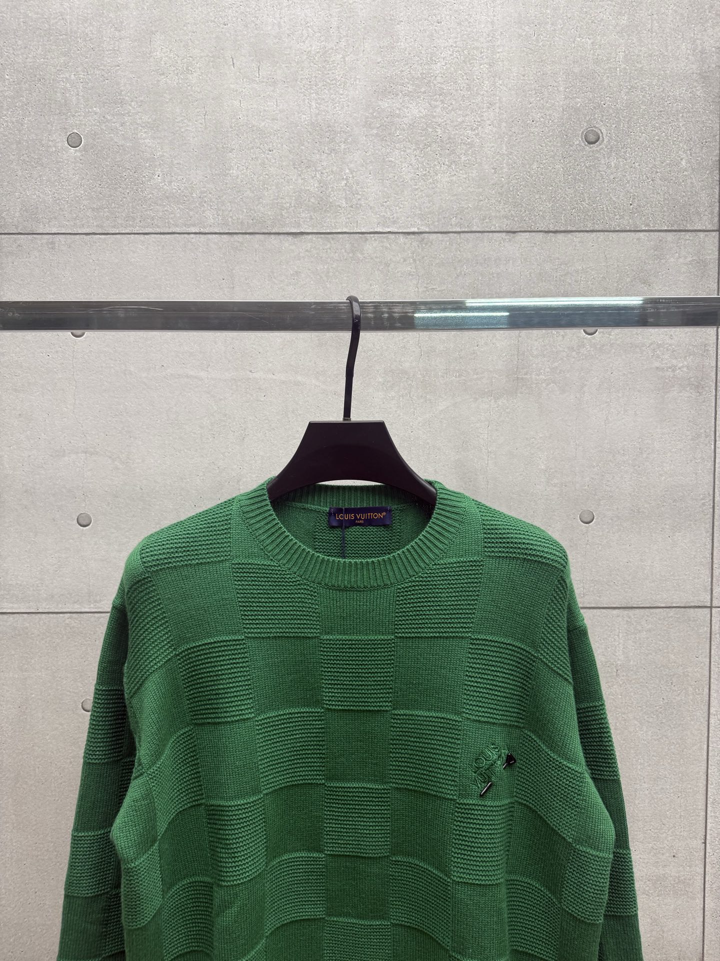 Louis Vuitton 24FW Green Wool Damier Knit Sweater with Pin Detail
