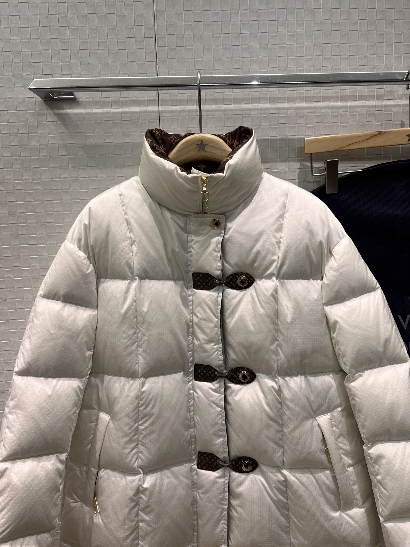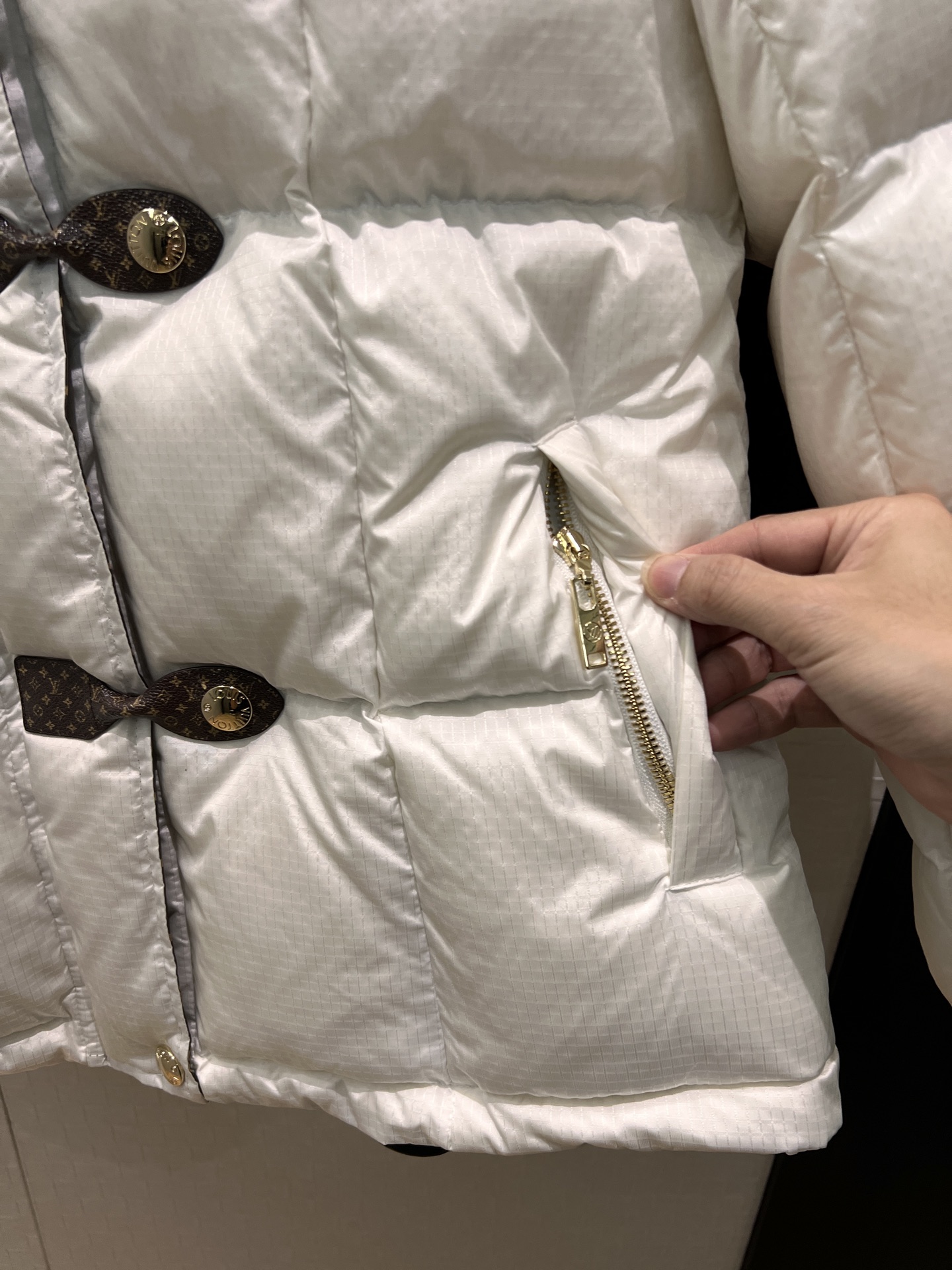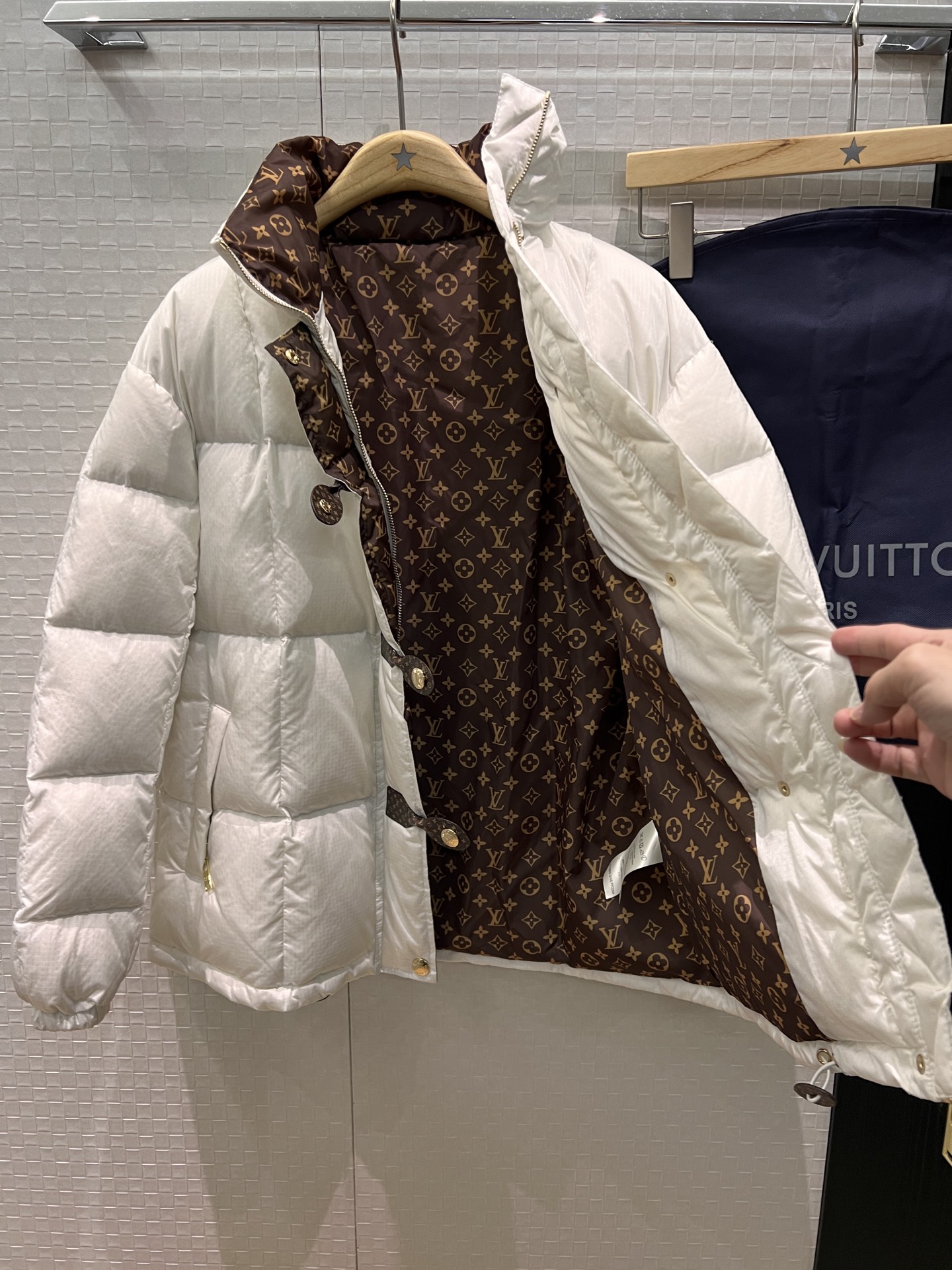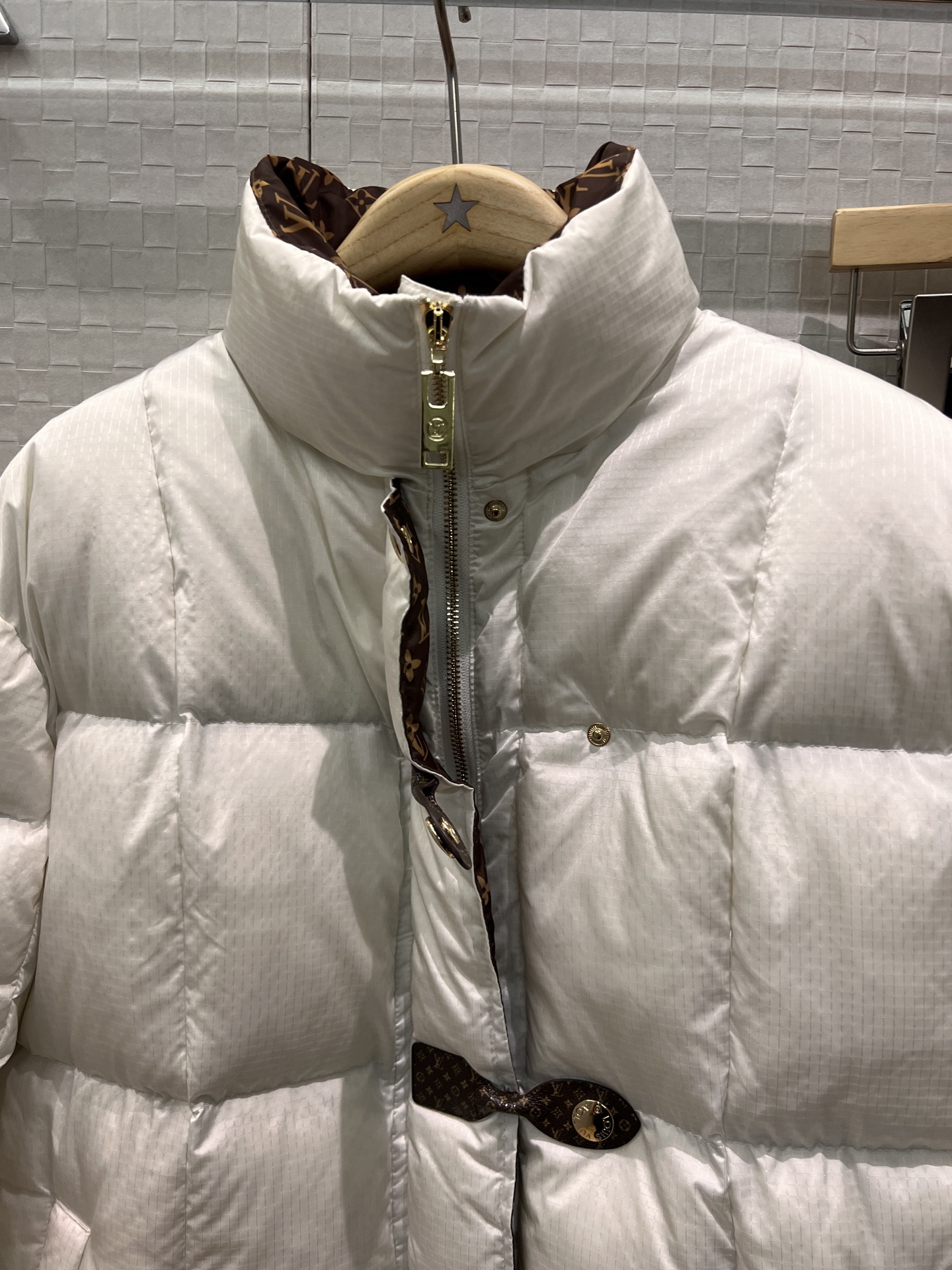 This stylish down jacket is inspired by the iconic designs of Louis Vuitton, offering a blend of luxury and practicality for the fashion-conscious individual.