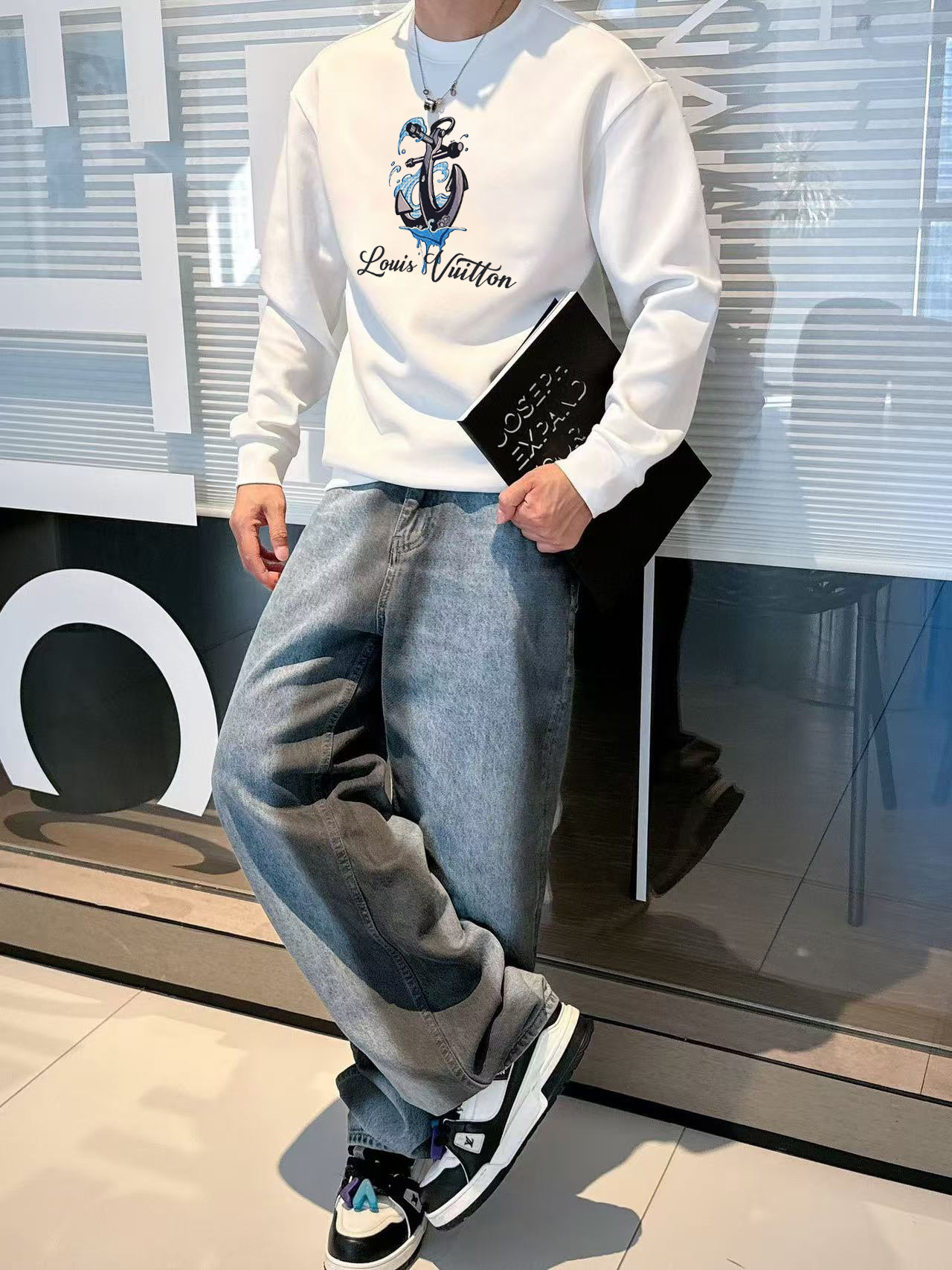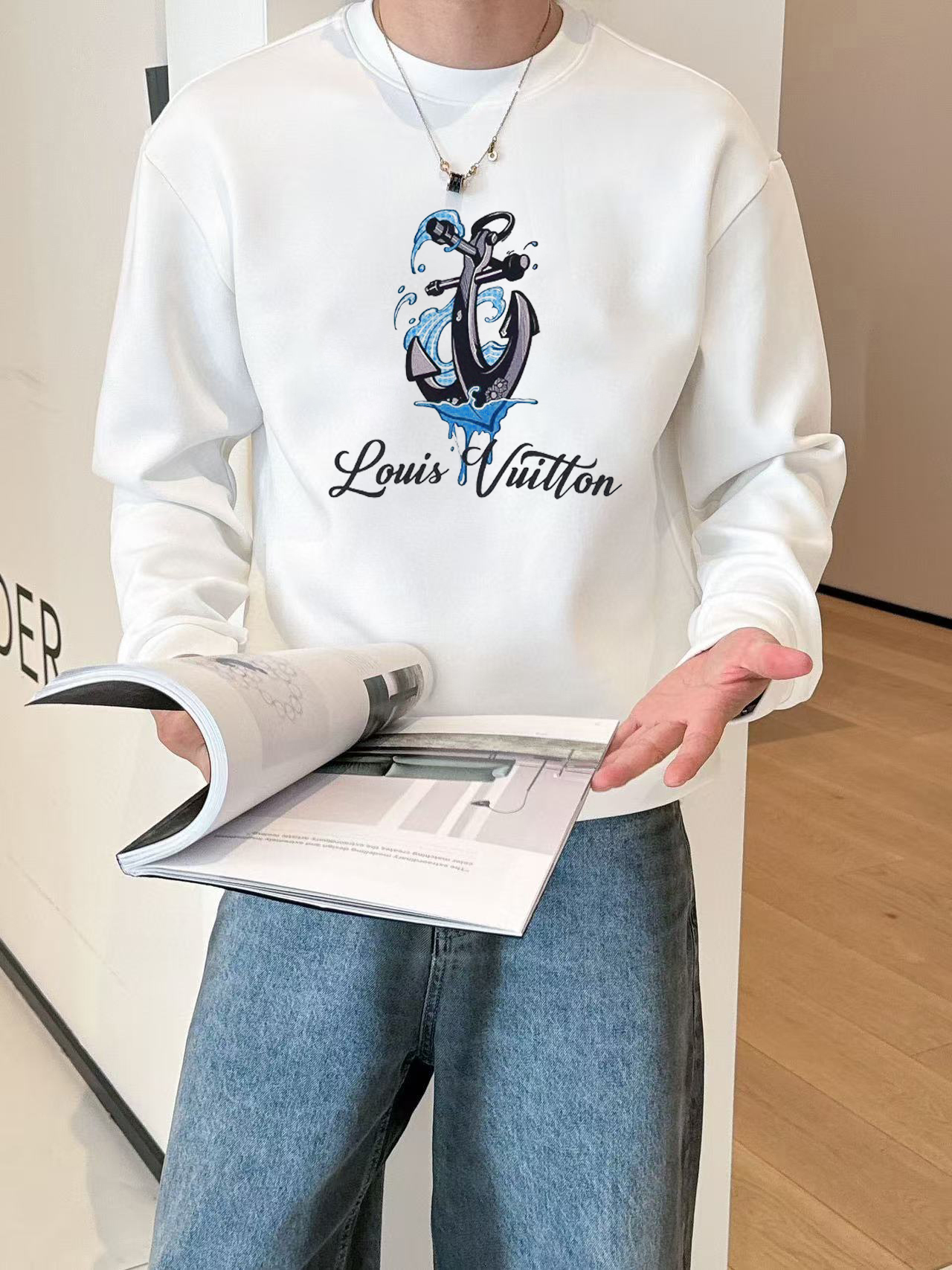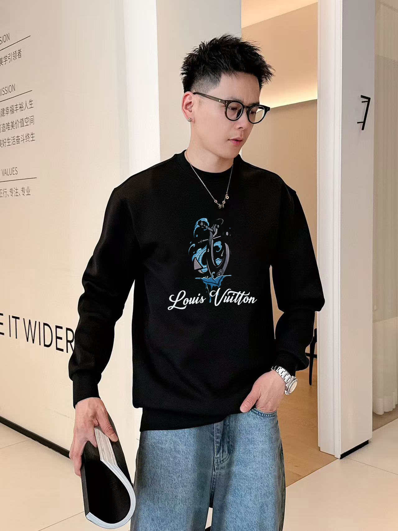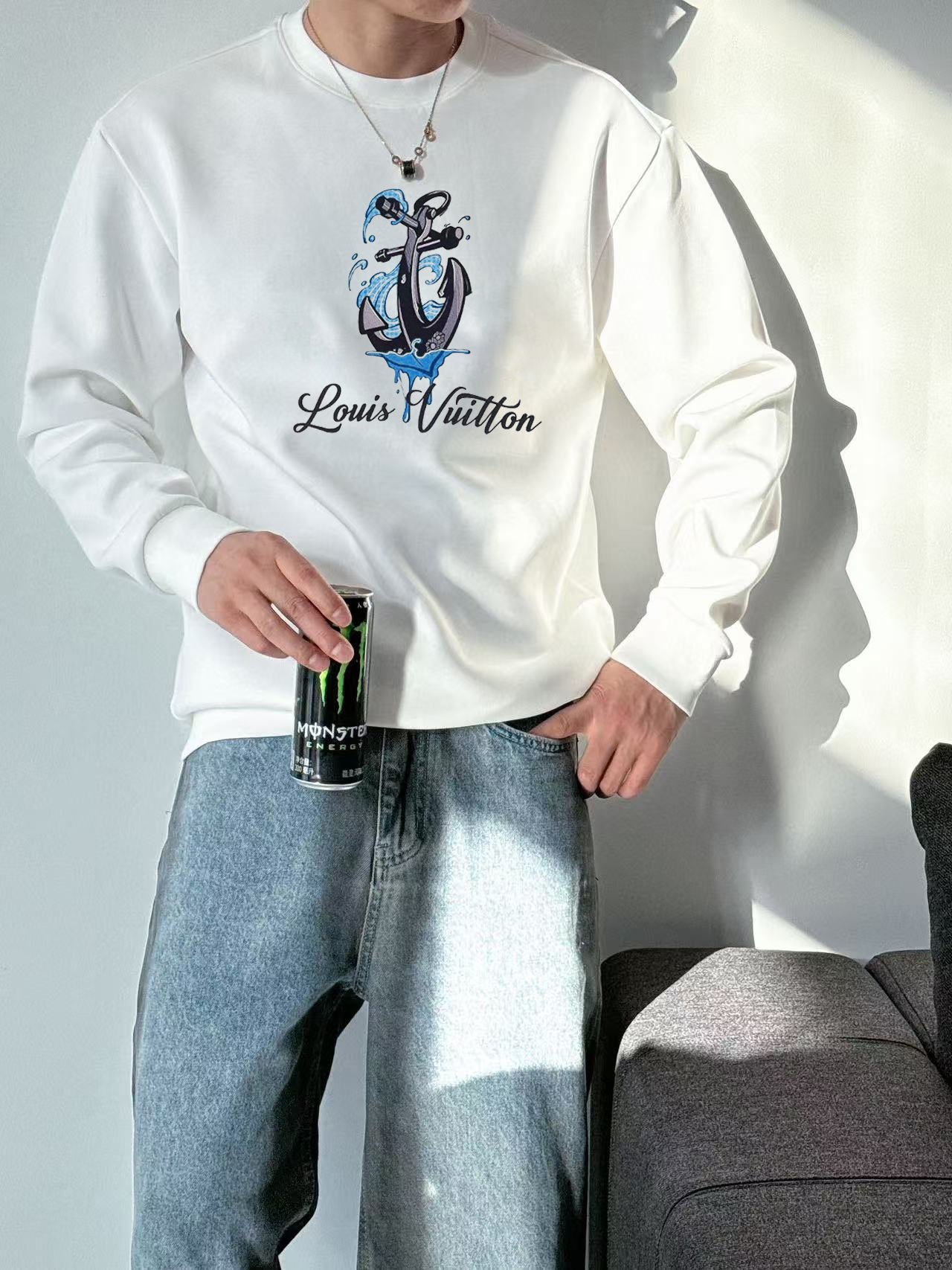 Elevate your fall style with this Louis Vuitton crewneck sweatshirt. Crafted from 400g cotton, it offers warmth, comfort, and a touch of luxury.