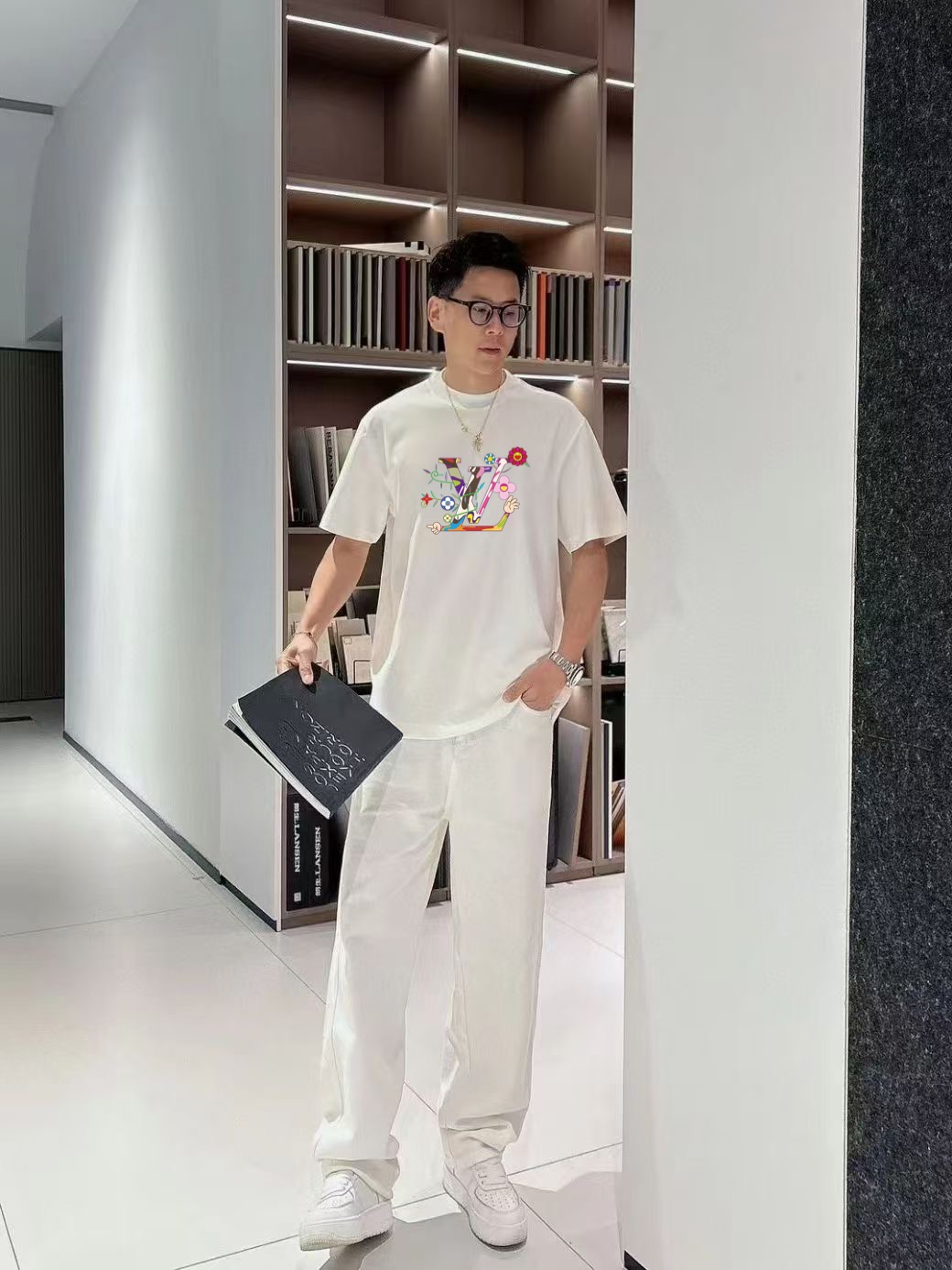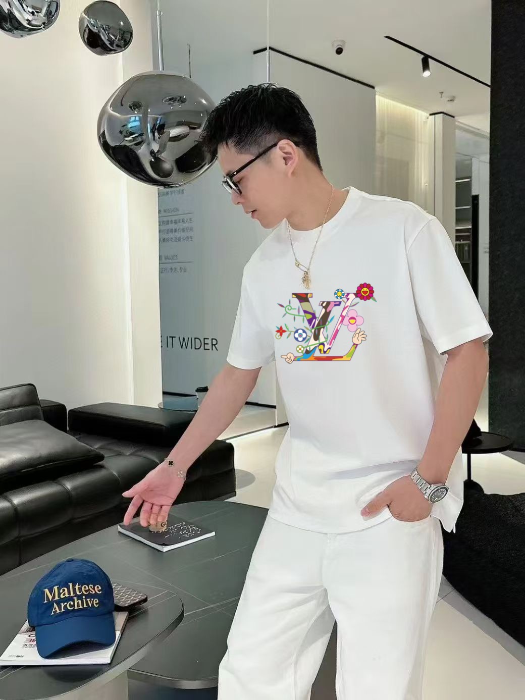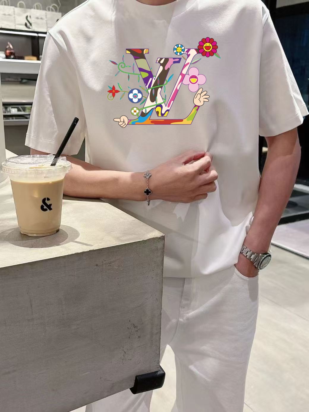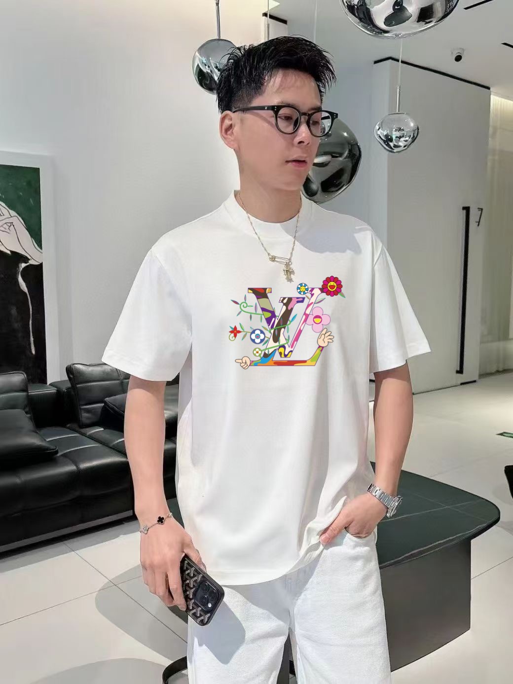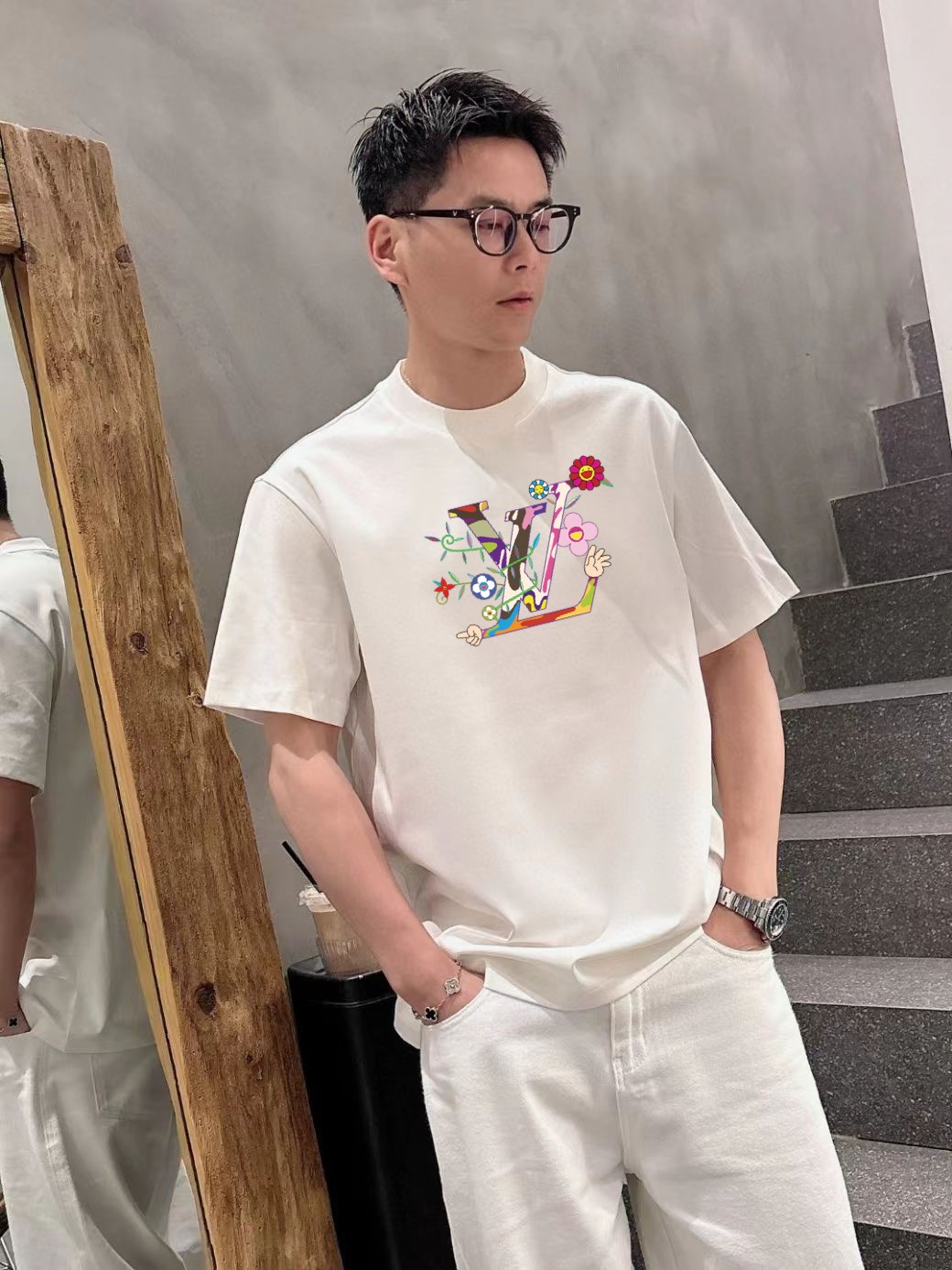 This Louis Vuitton short-sleeve T-shirt is a must-have for the fashion-forward man. Crafted from premium liquid ammonia cotton, this tee offers unparalleled comfort and style. With its eye-catching digital direct jet design, it's sure to turn heads wherever you go.