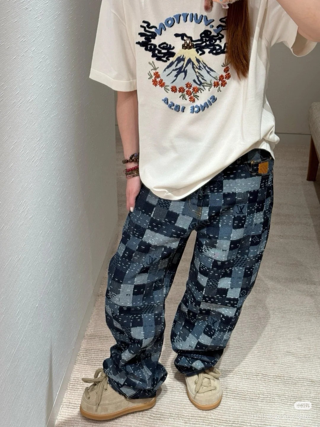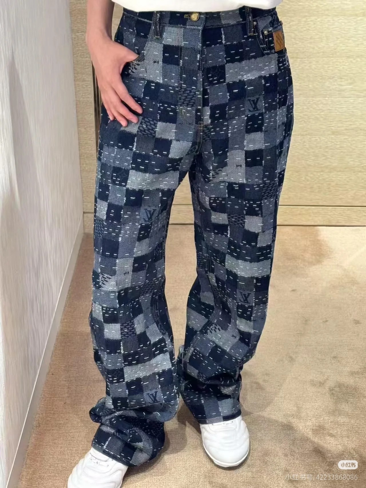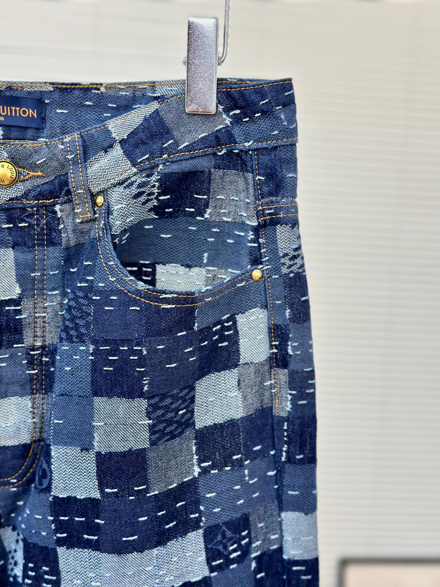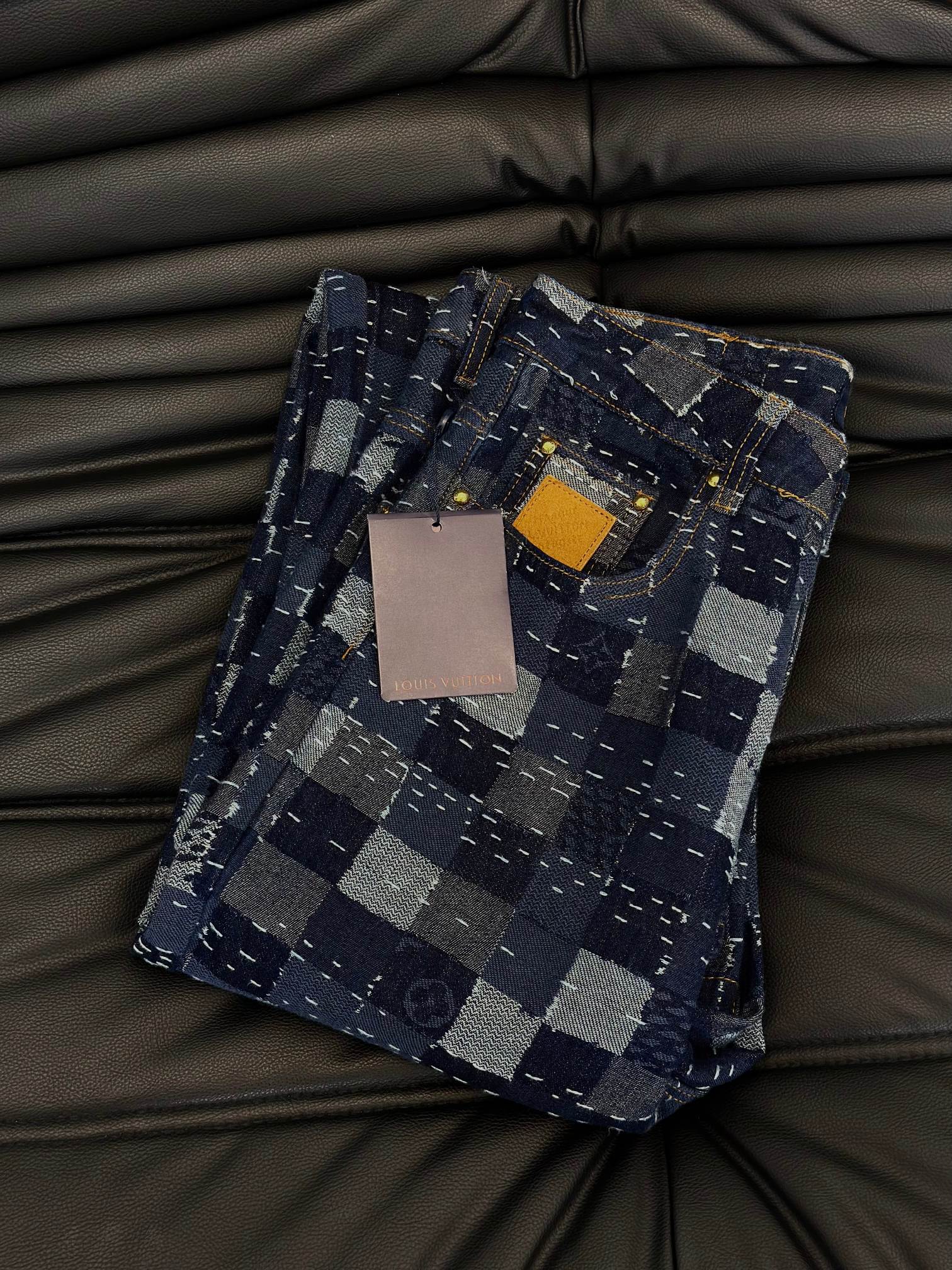 Elevate your wardrobe with these Louis Vuitton x Nigo patchwork denim pants. A unique blend of luxury and streetwear style.