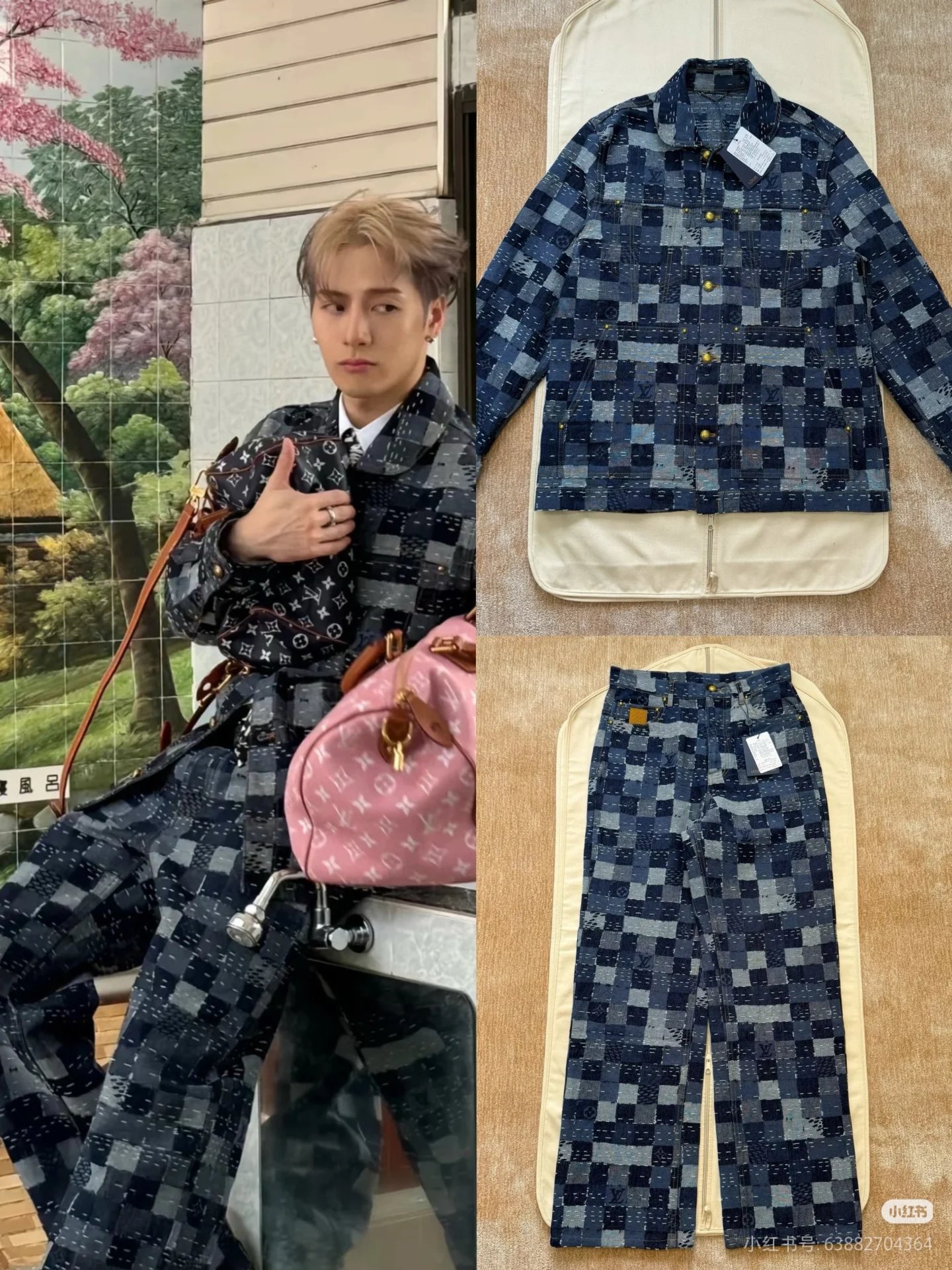 These Louis Vuitton x Nigo Damier patchwork denim pants are a standout piece from the collaboration between Pharrell Williams and Nigo. Featuring a unique Damier pattern with classic brand elements, these jeans pay homage to Japanese patchwork artistry with striking stitching effects.
