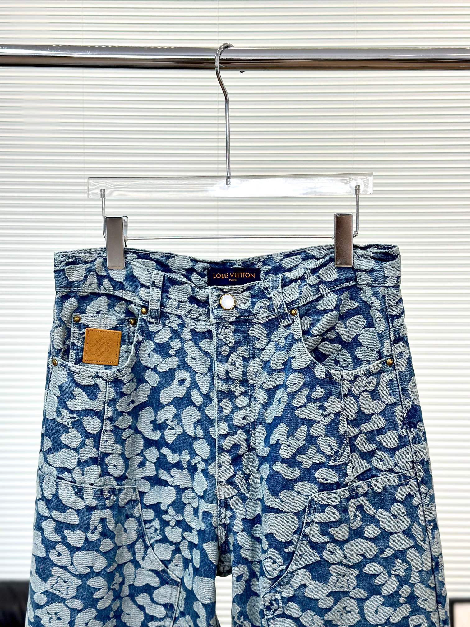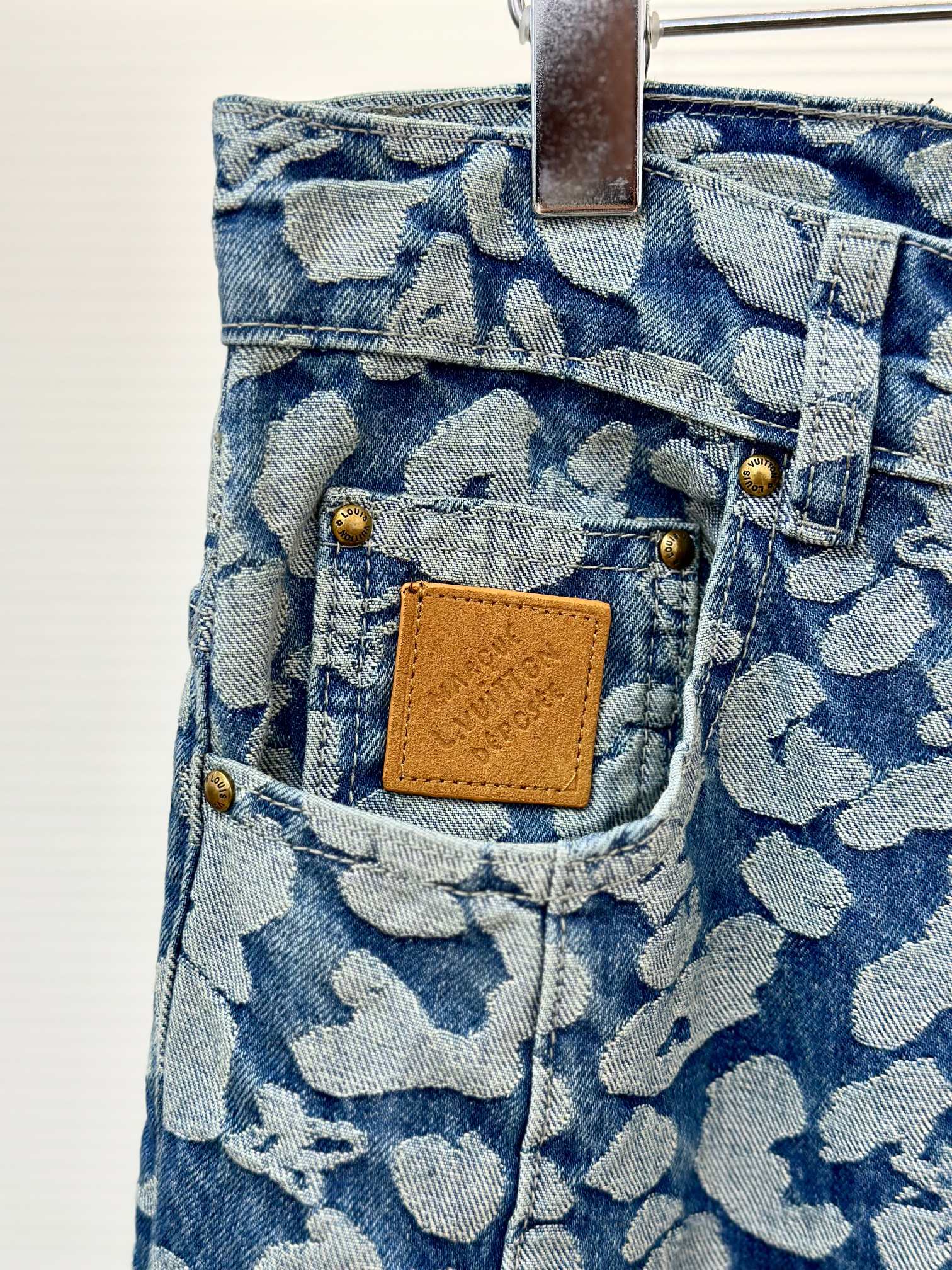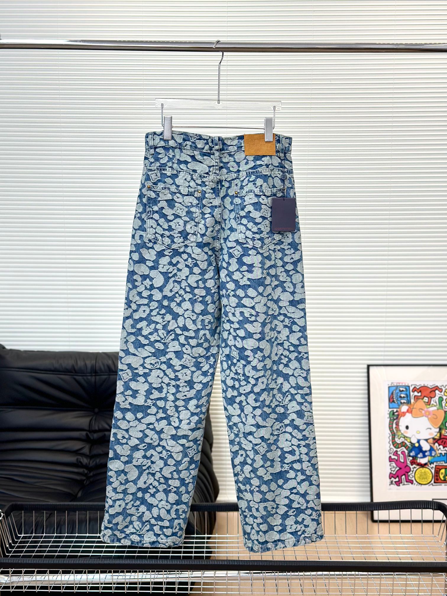 Elevate your streetwear with these Louis Vuitton x Nigo denim jeans. Featuring a modern leopard print, loose silhouette, and classic five-pocket design.