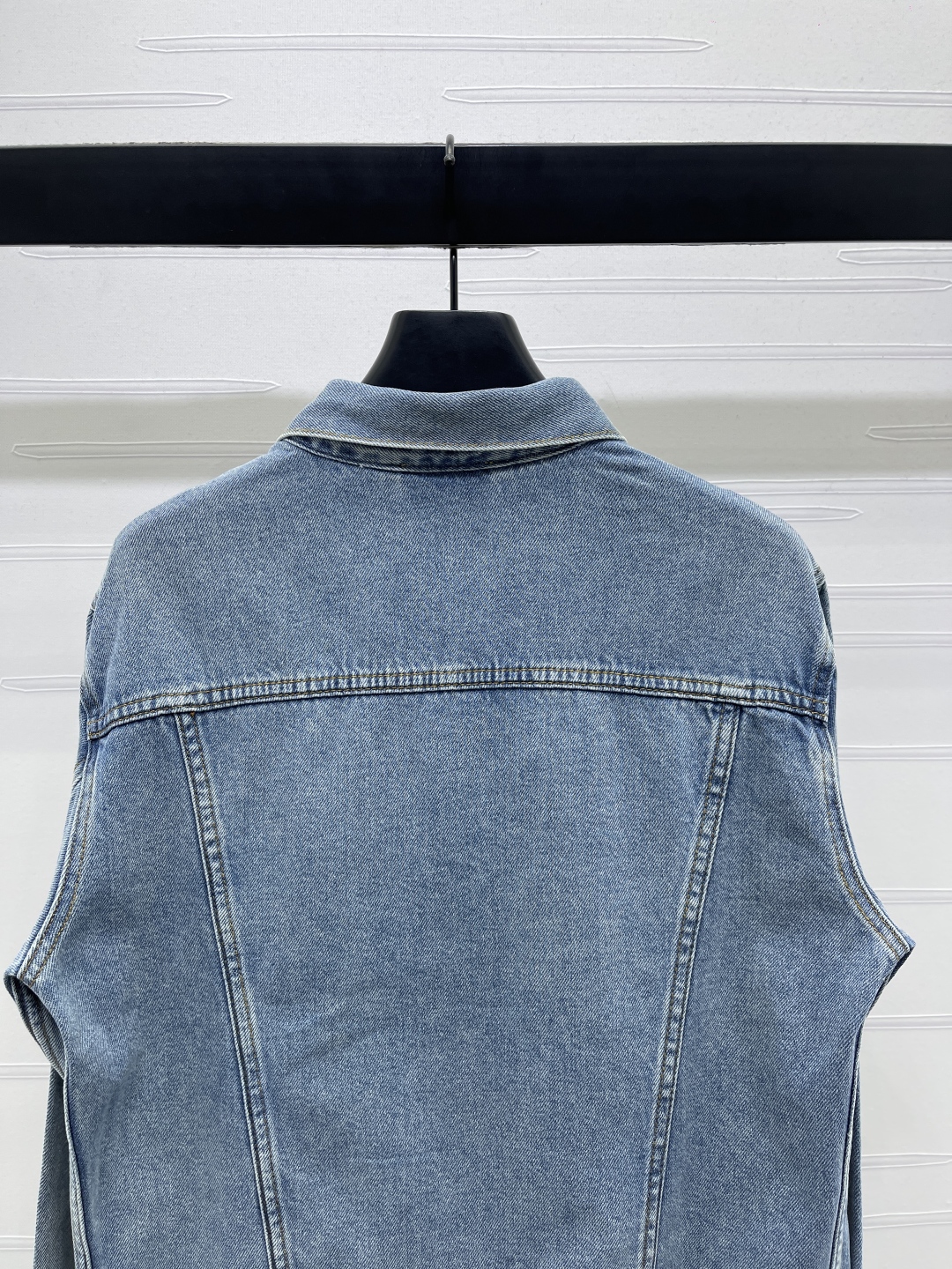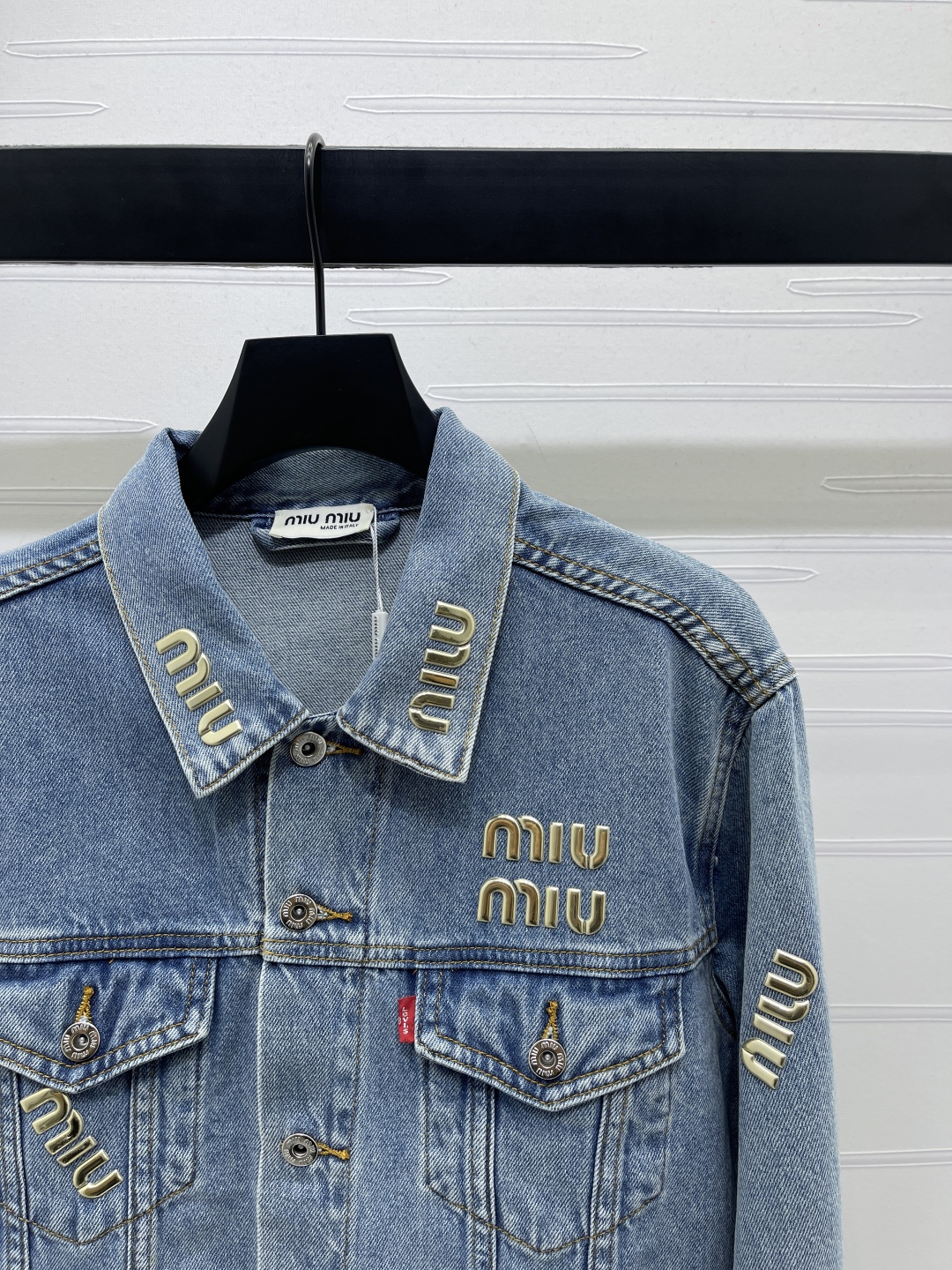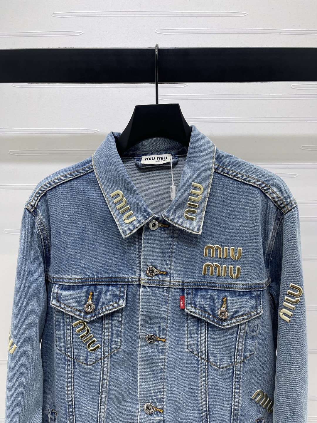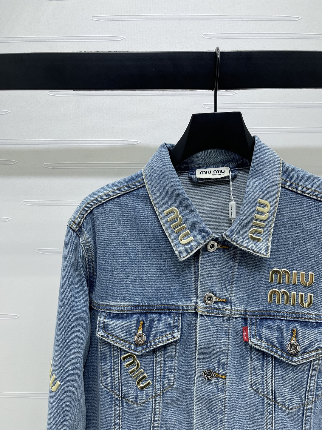 With its exquisite design and high-quality craftsmanship, this Miu Miu denim jacket is perfect for achieving a stylish and youthful look. Don't miss the chance to add this unique piece to your wardrobe.
