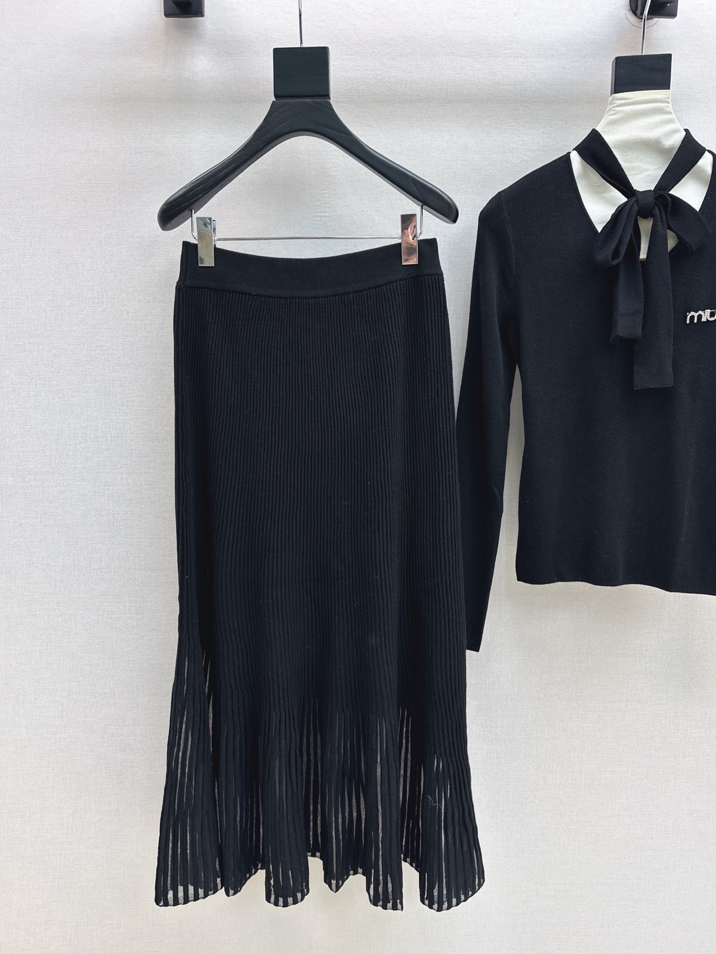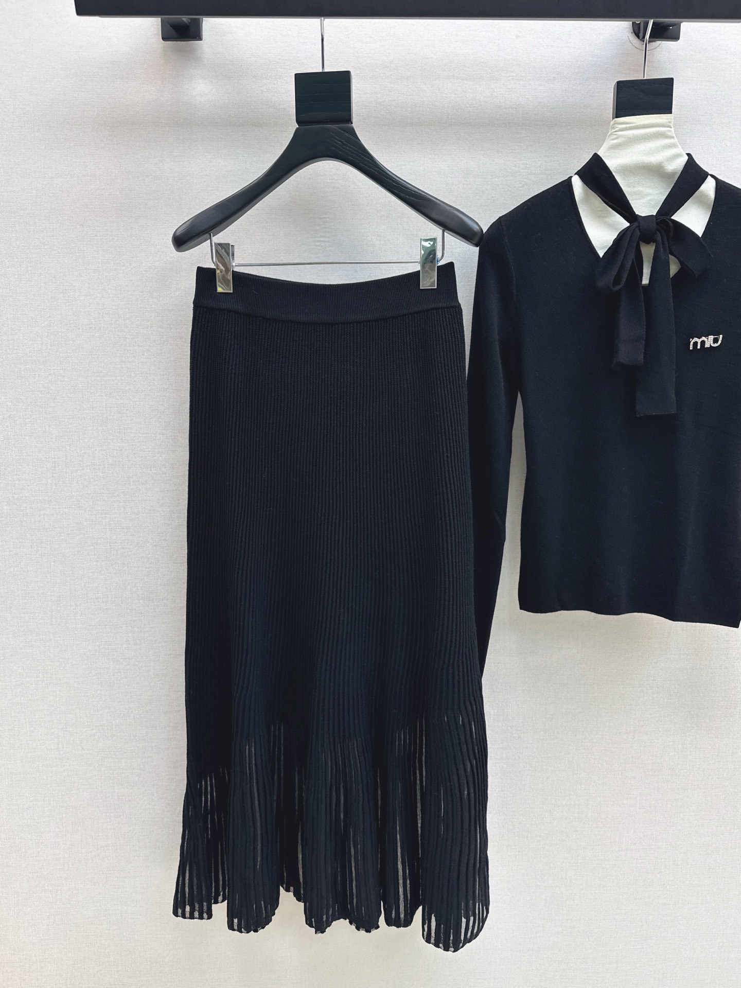 Miu Miu 25Ss Knit Set: Tie Blouse & Midi Skirt, Elegant & Versatile Outfit