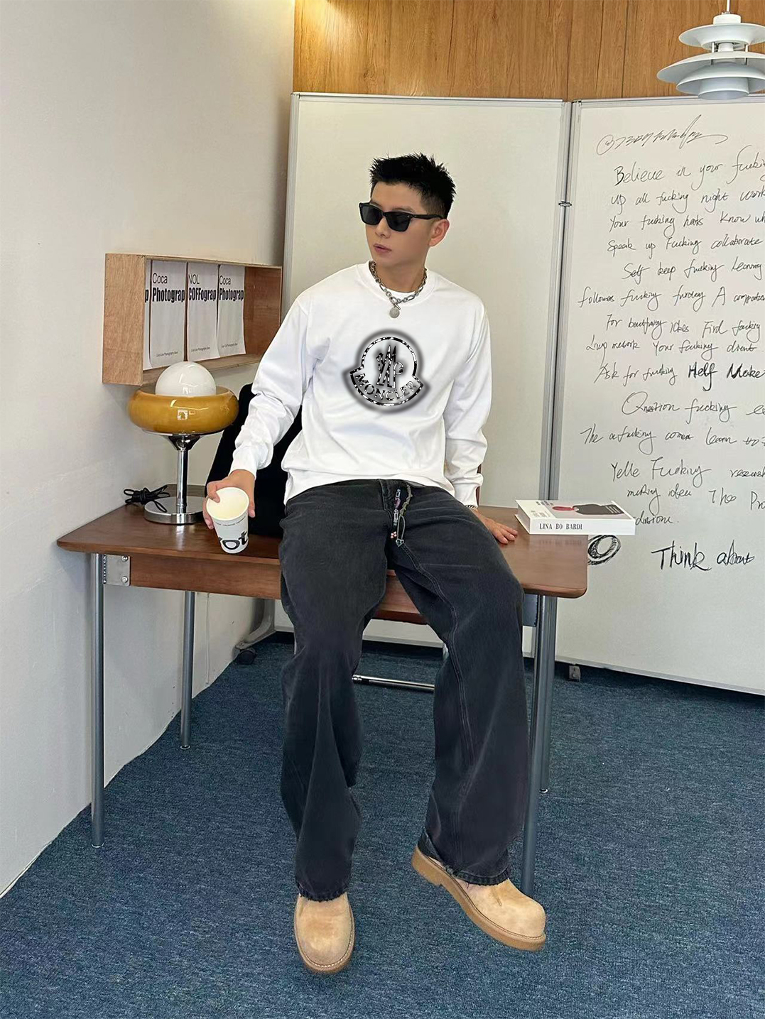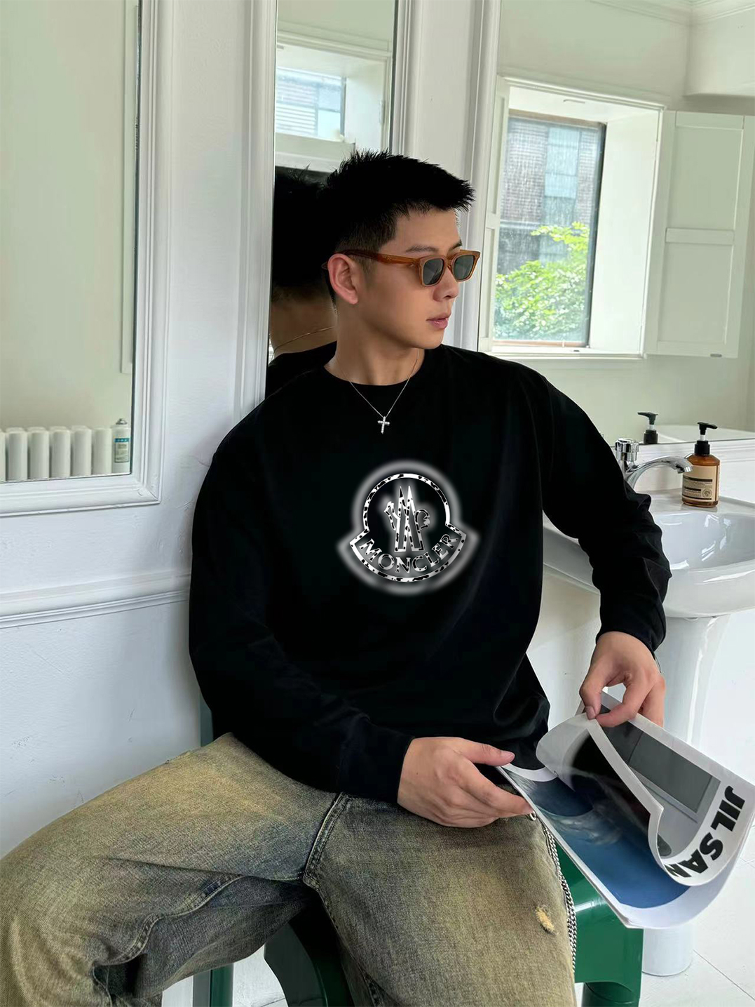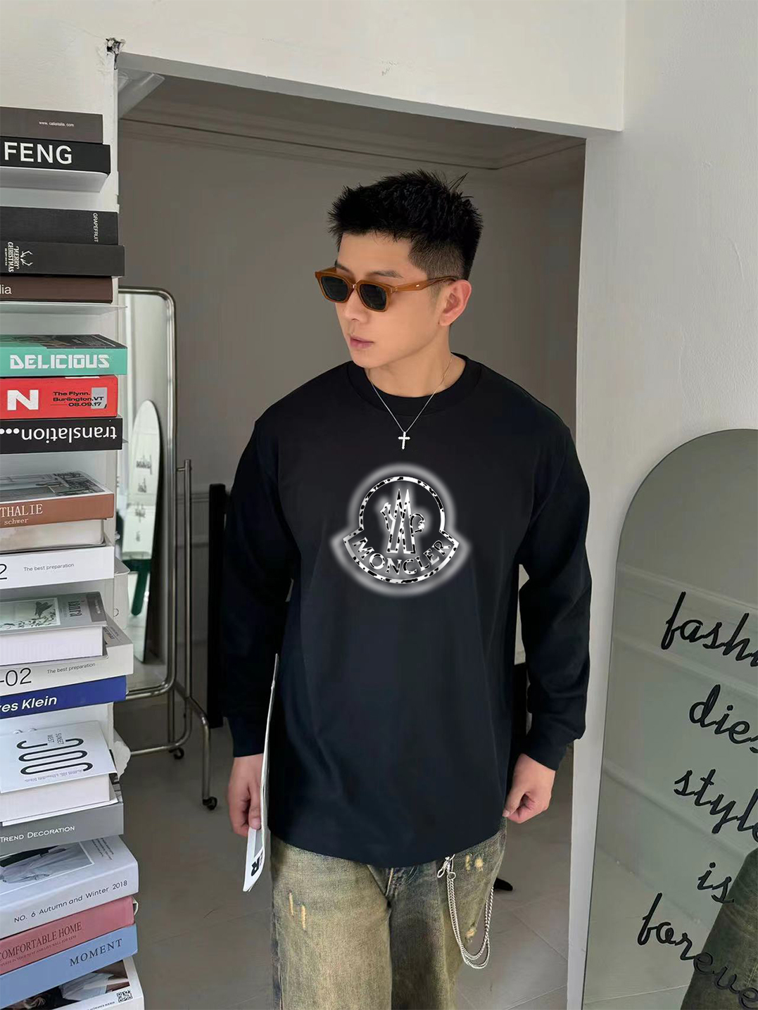 Moncler Long Sleeve T-Shirt Metal Logo Print Casual Unisex Top