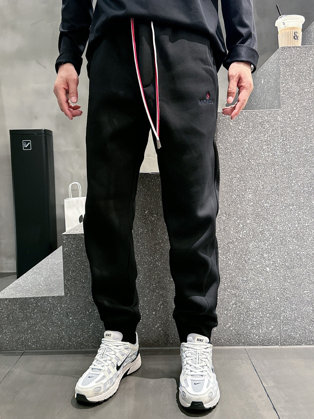 Moncler Men's Fleece Sweatpants Warm Winter Trousers With Drawstring and Logo