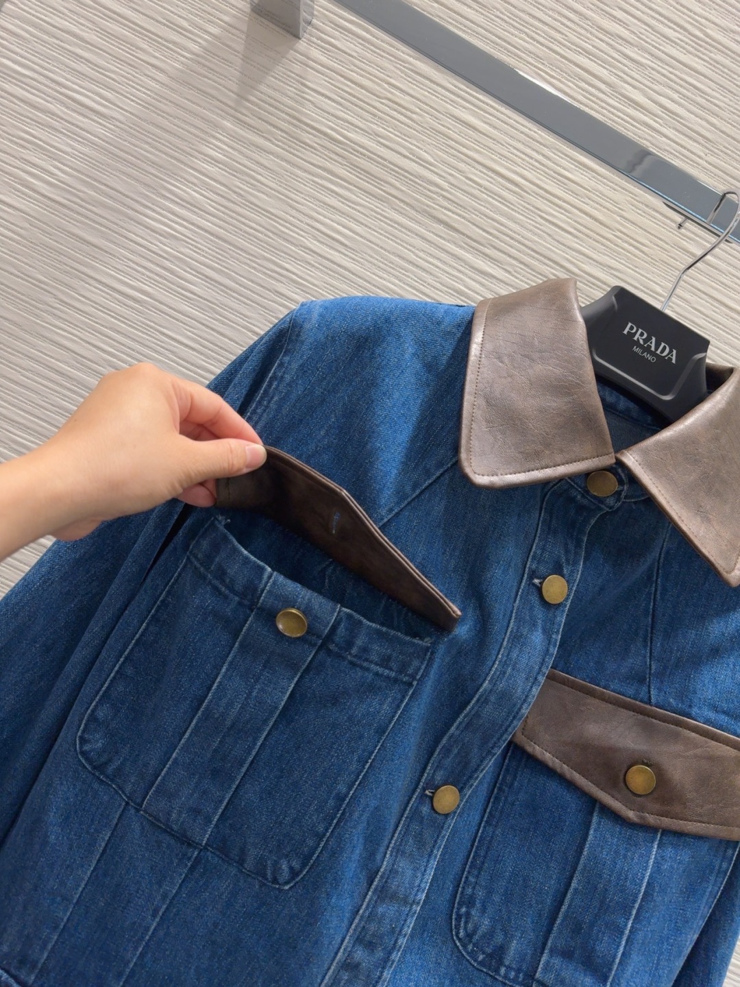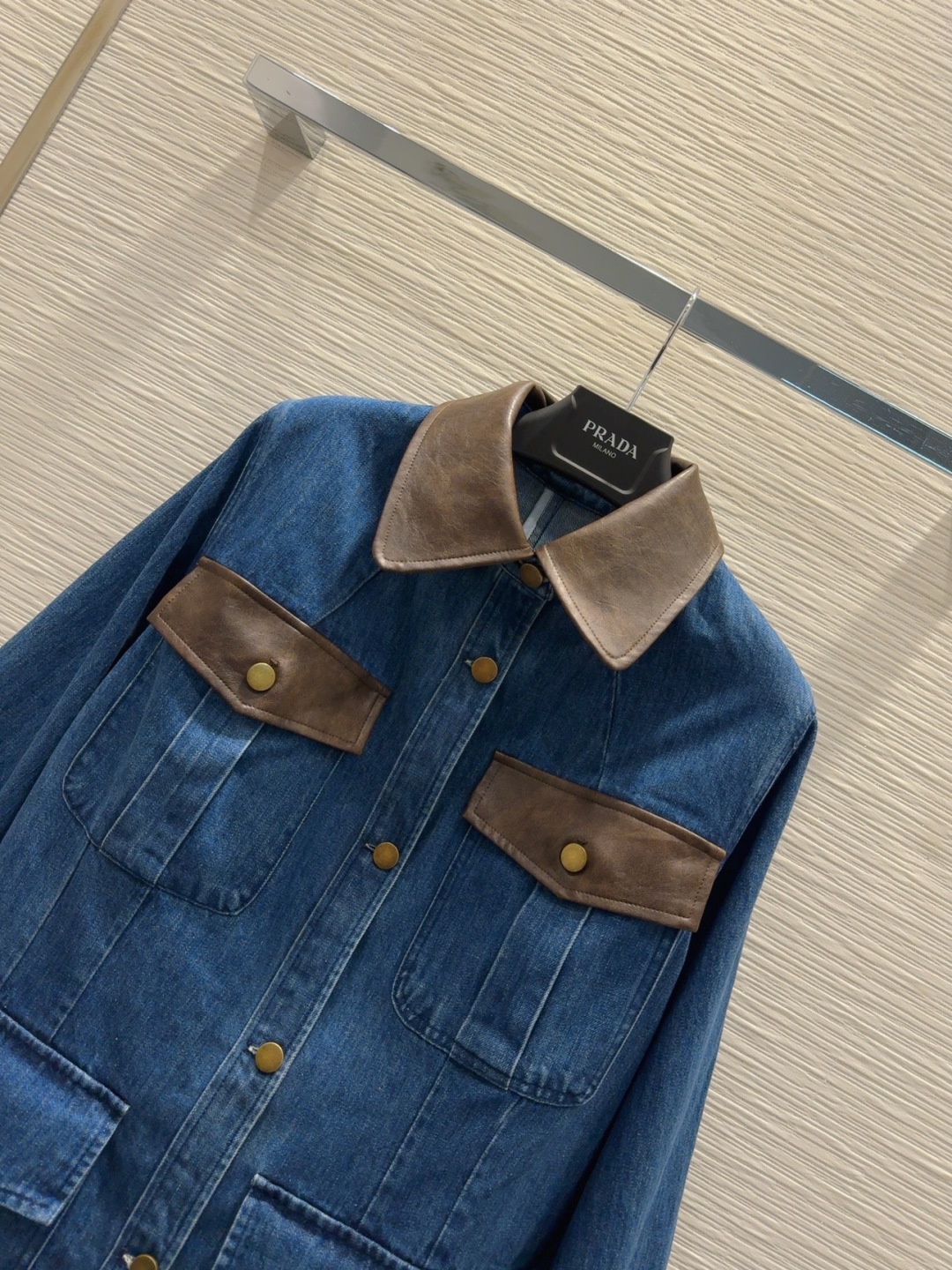 Introducing the Prada-inspired denim jacket, a blend of classic design and modern style.