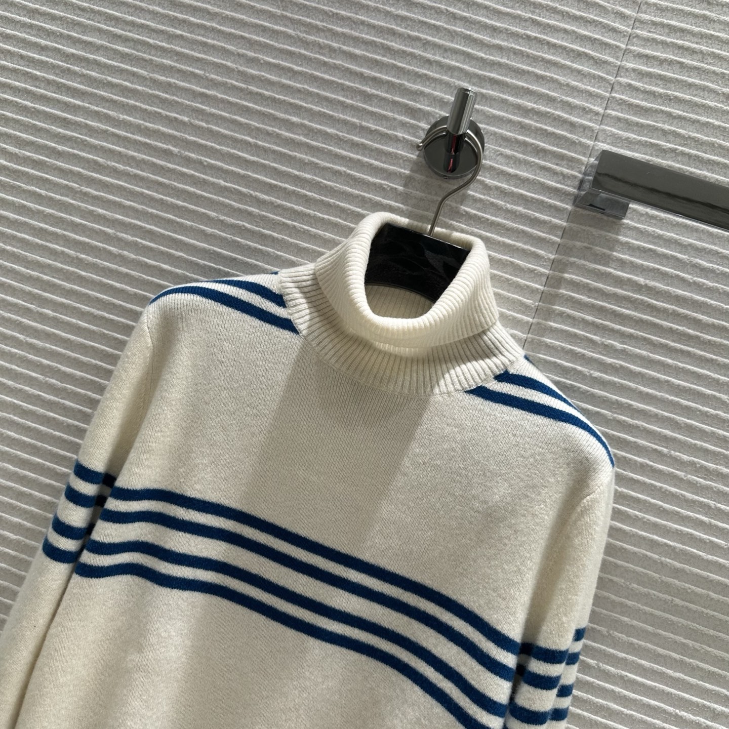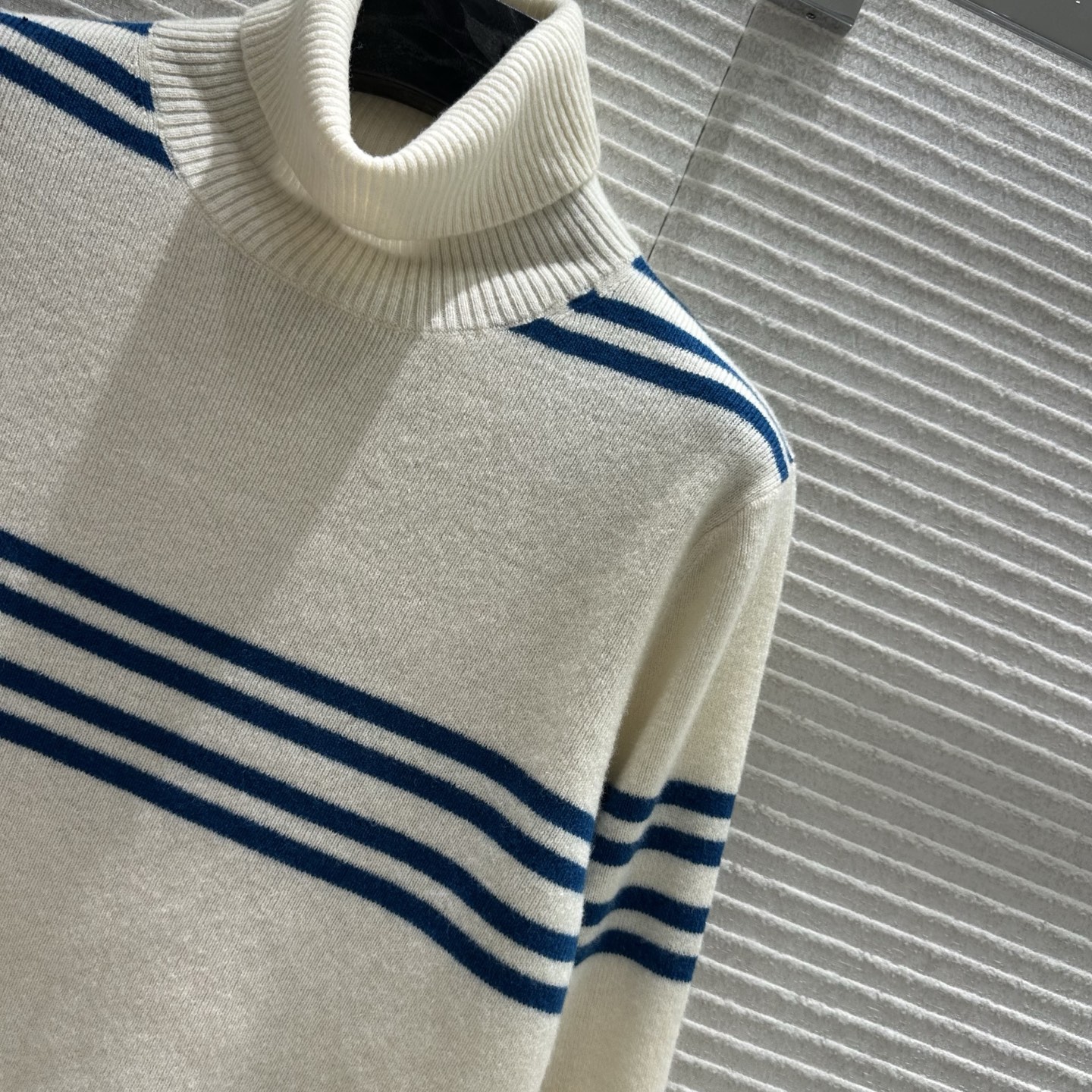 Stay cozy and stylish in this Prada turtleneck sweater. Crafted from soft wool with a chic blue stripe design, perfect for layering or wearing alone.