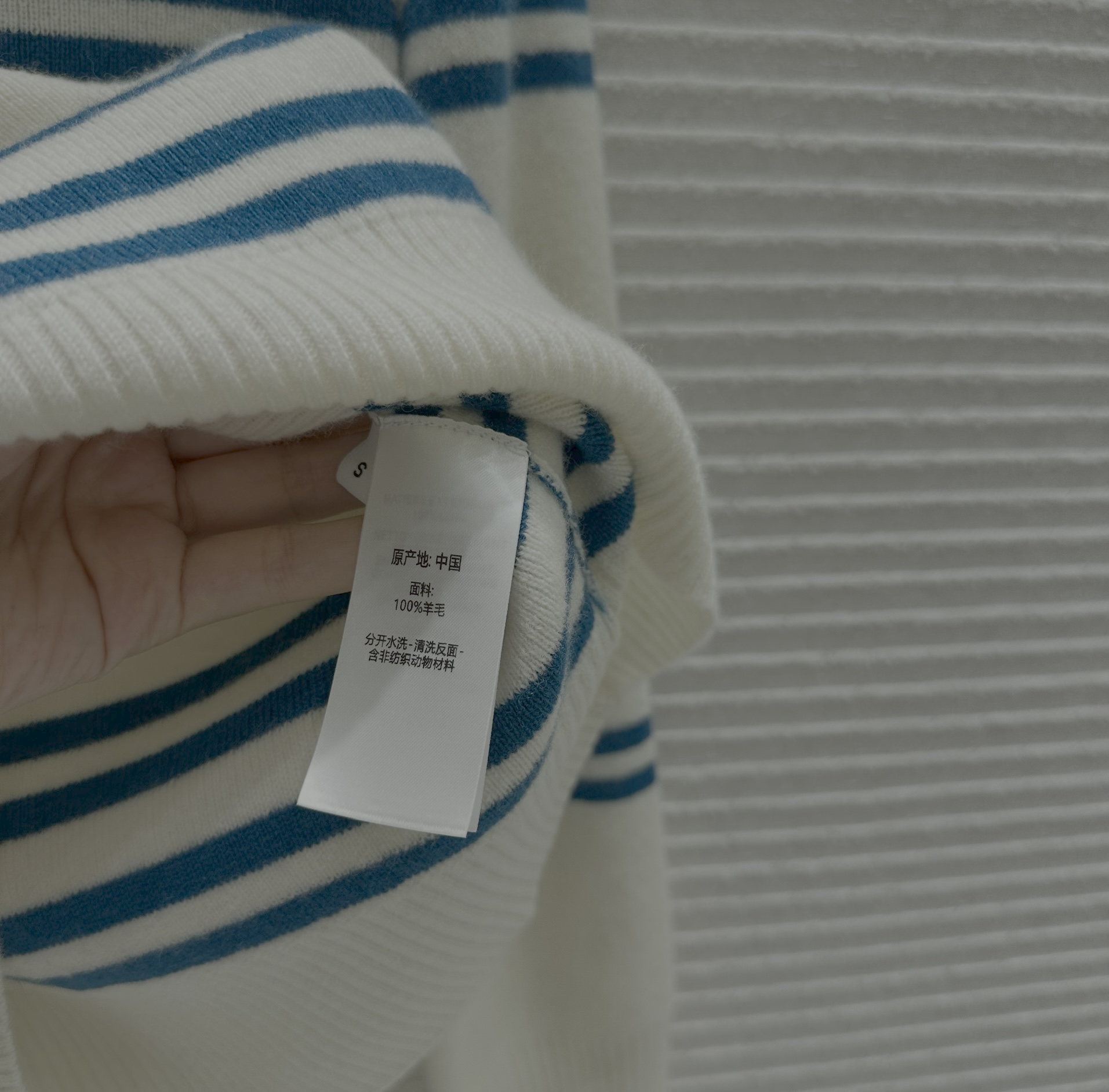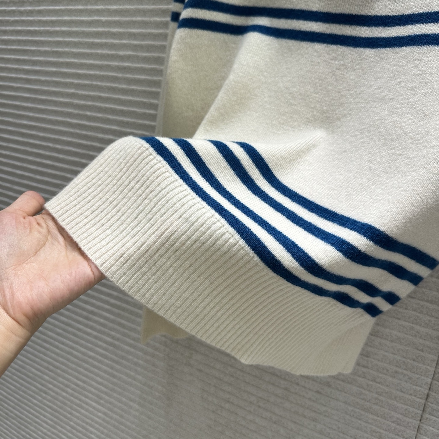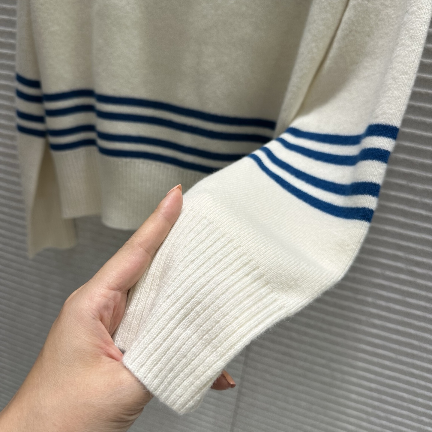 Prada Women's White Turtleneck Wool Sweater with Blue Stripe Design