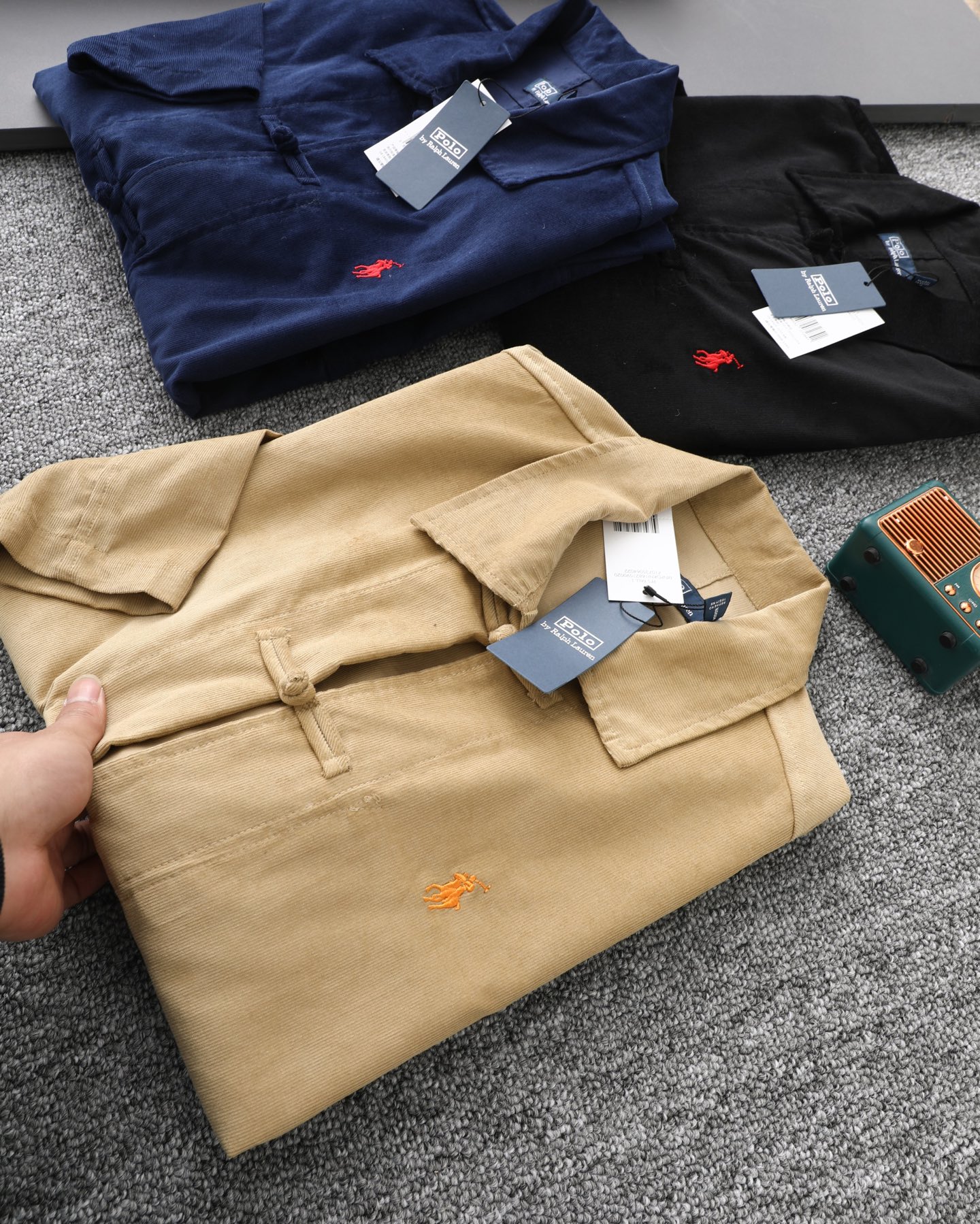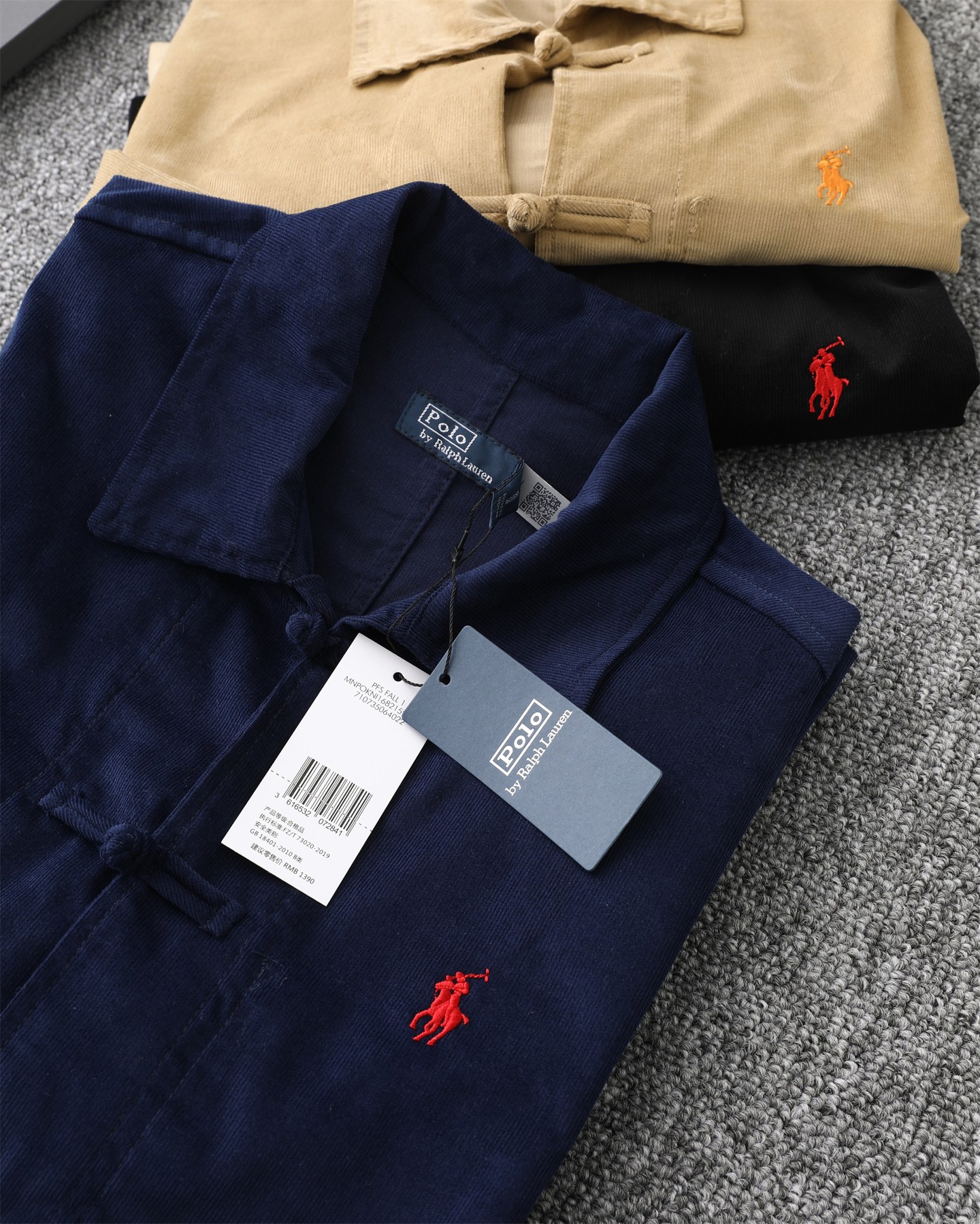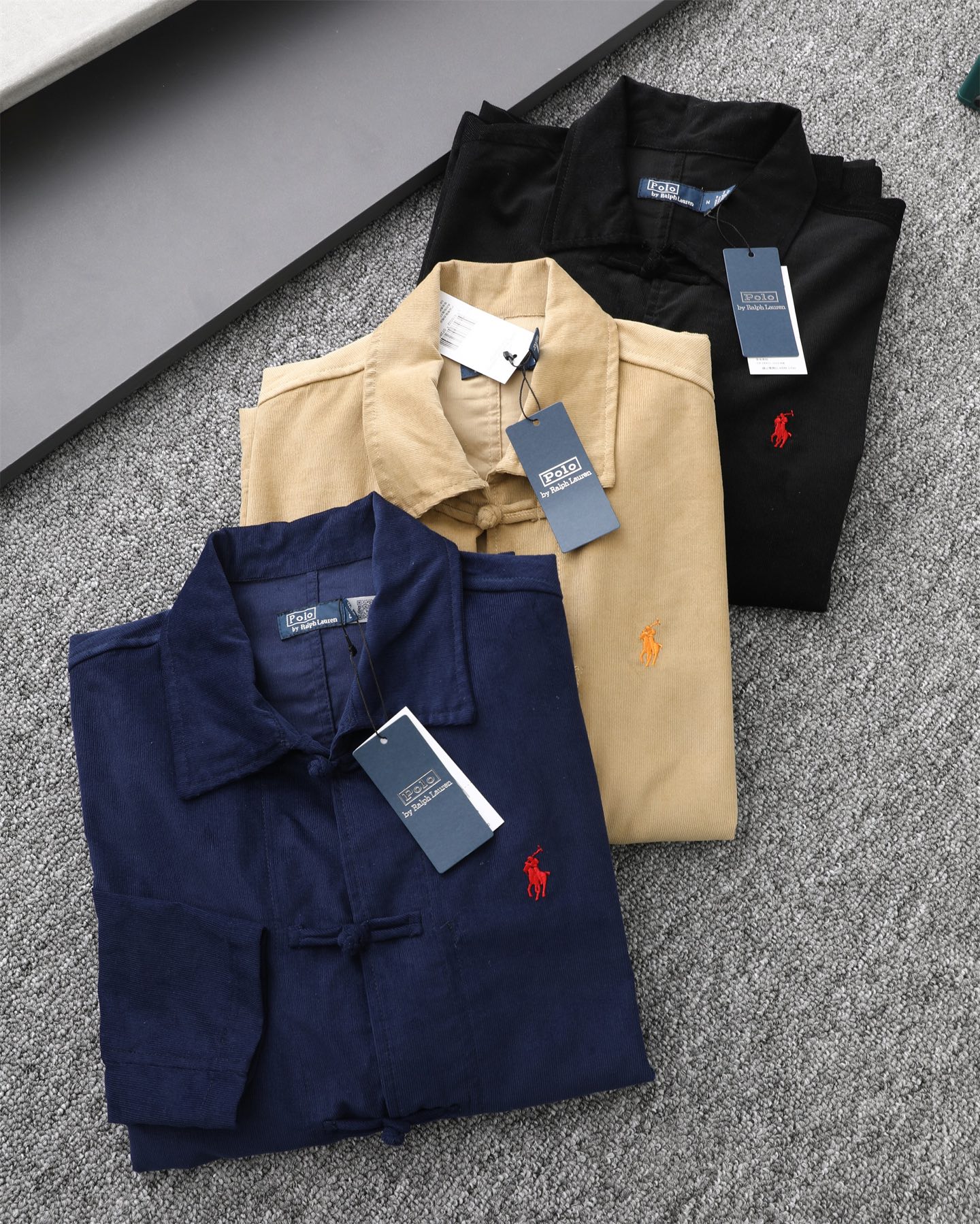 Elevate your style with this Ralph Lauren mandarin collar shirt. Crafted from soft cotton corduroy, perfect for spring. Unisex design, available in multiple colors.