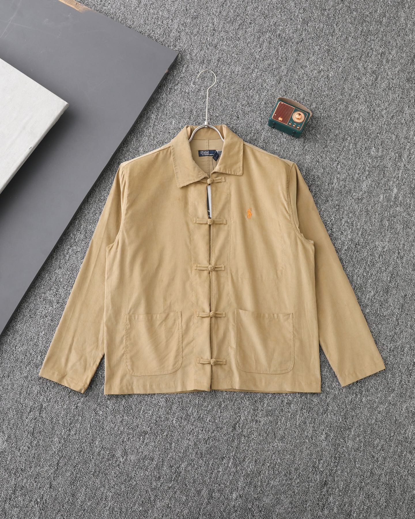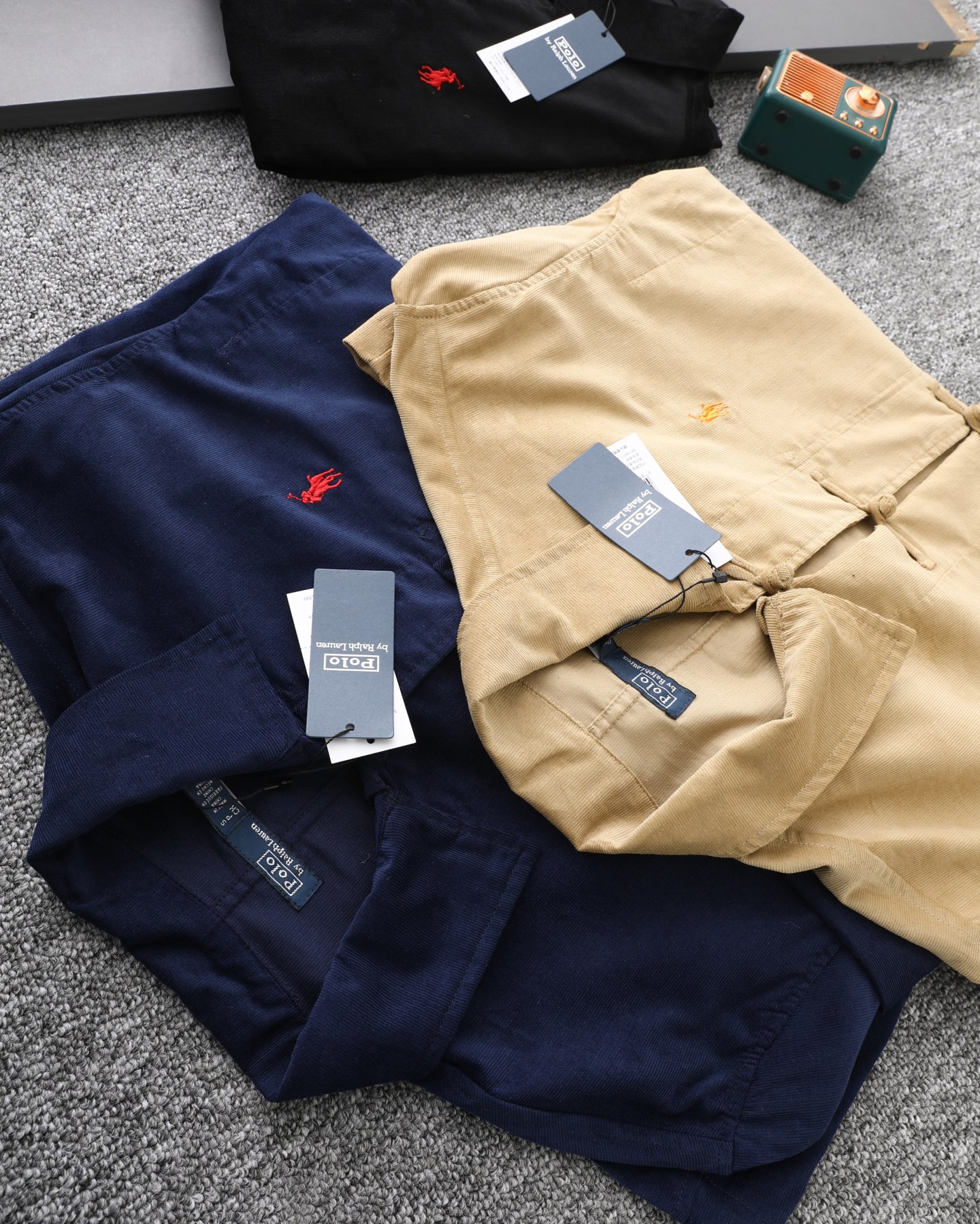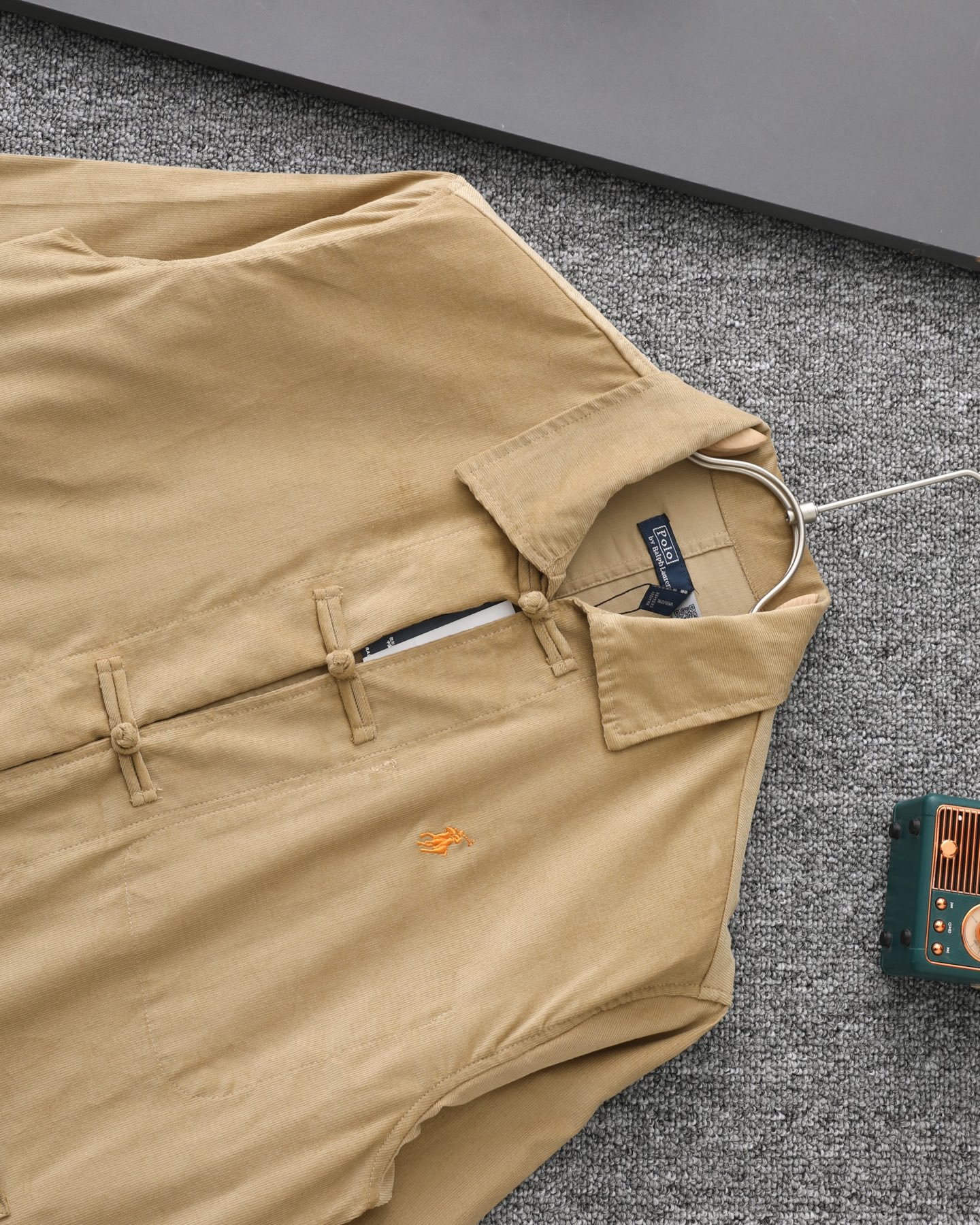 Elevate your style with this Ralph Lauren mandarin collar shirt. Crafted from soft cotton corduroy, perfect for spring. Unisex design, available in multiple colors.