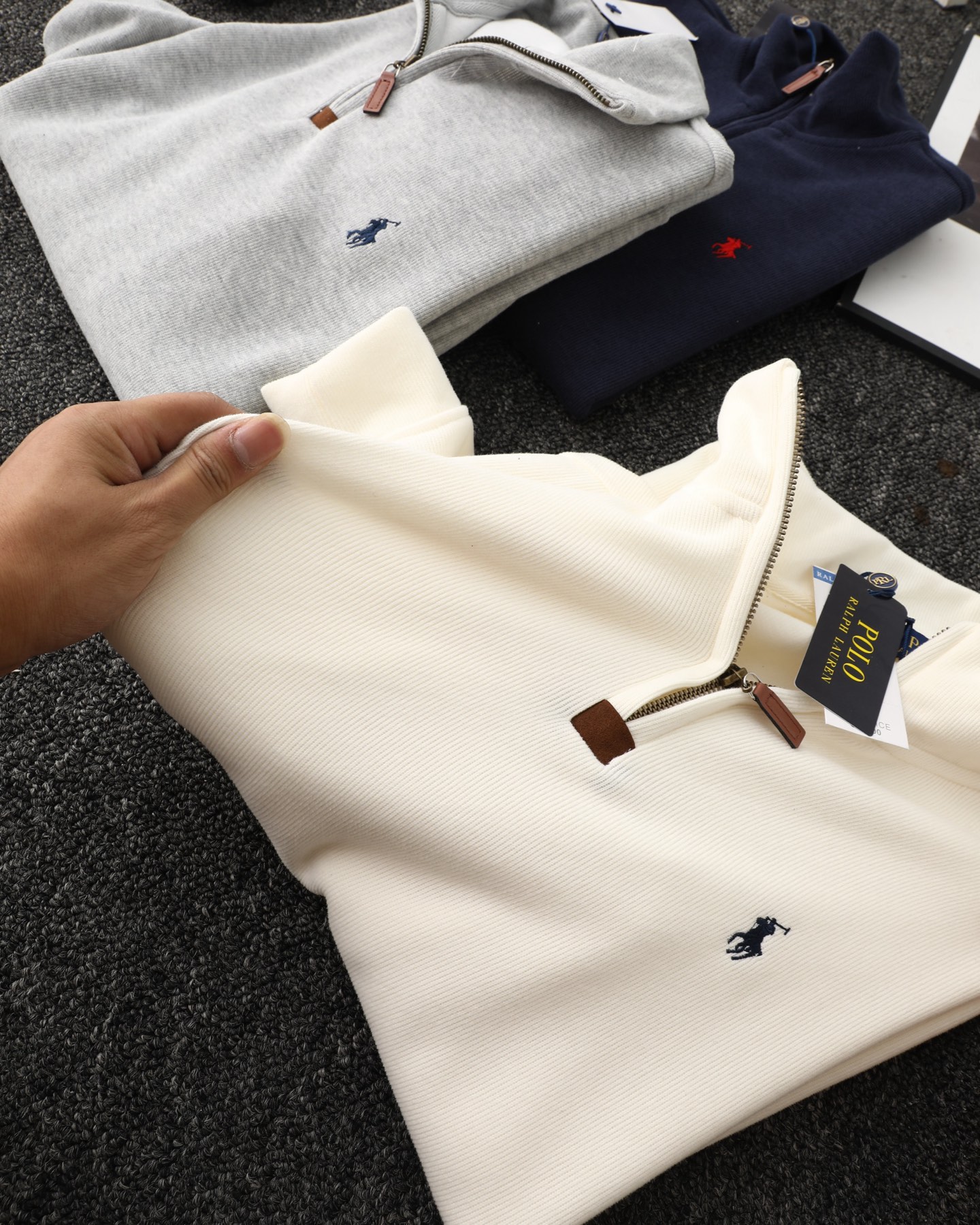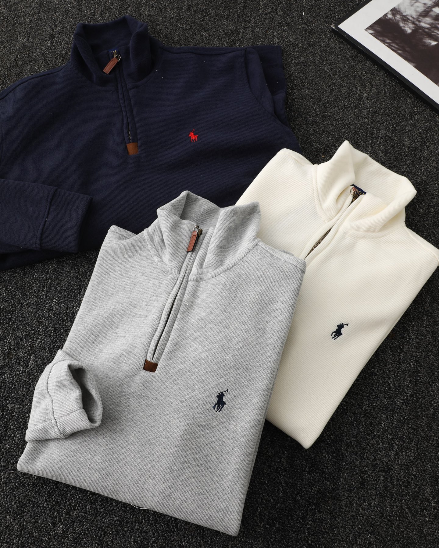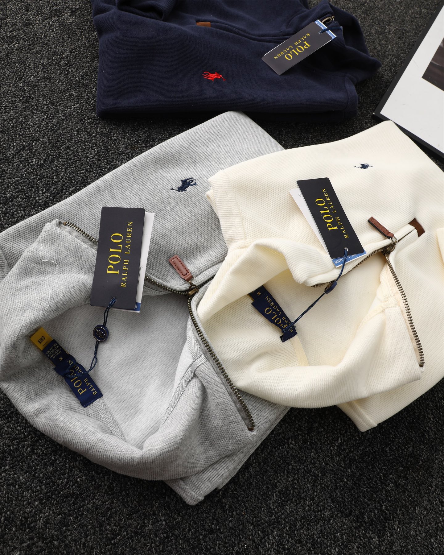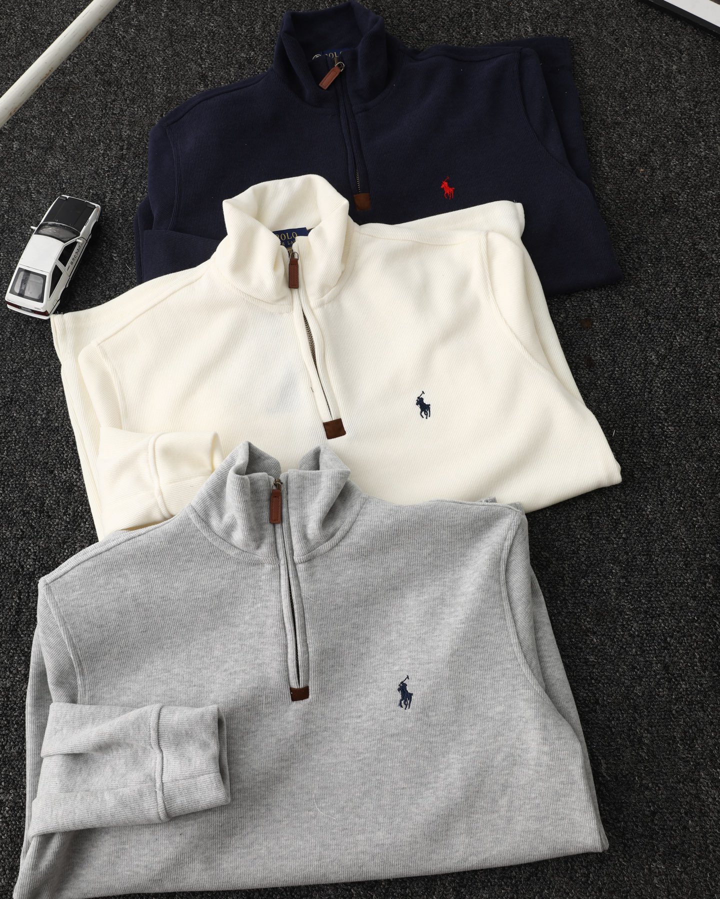 Elevate your style with this Ralph Lauren quarter-zip pullover sweatshirt. Features an embroidered logo and comfortable long sleeves.
