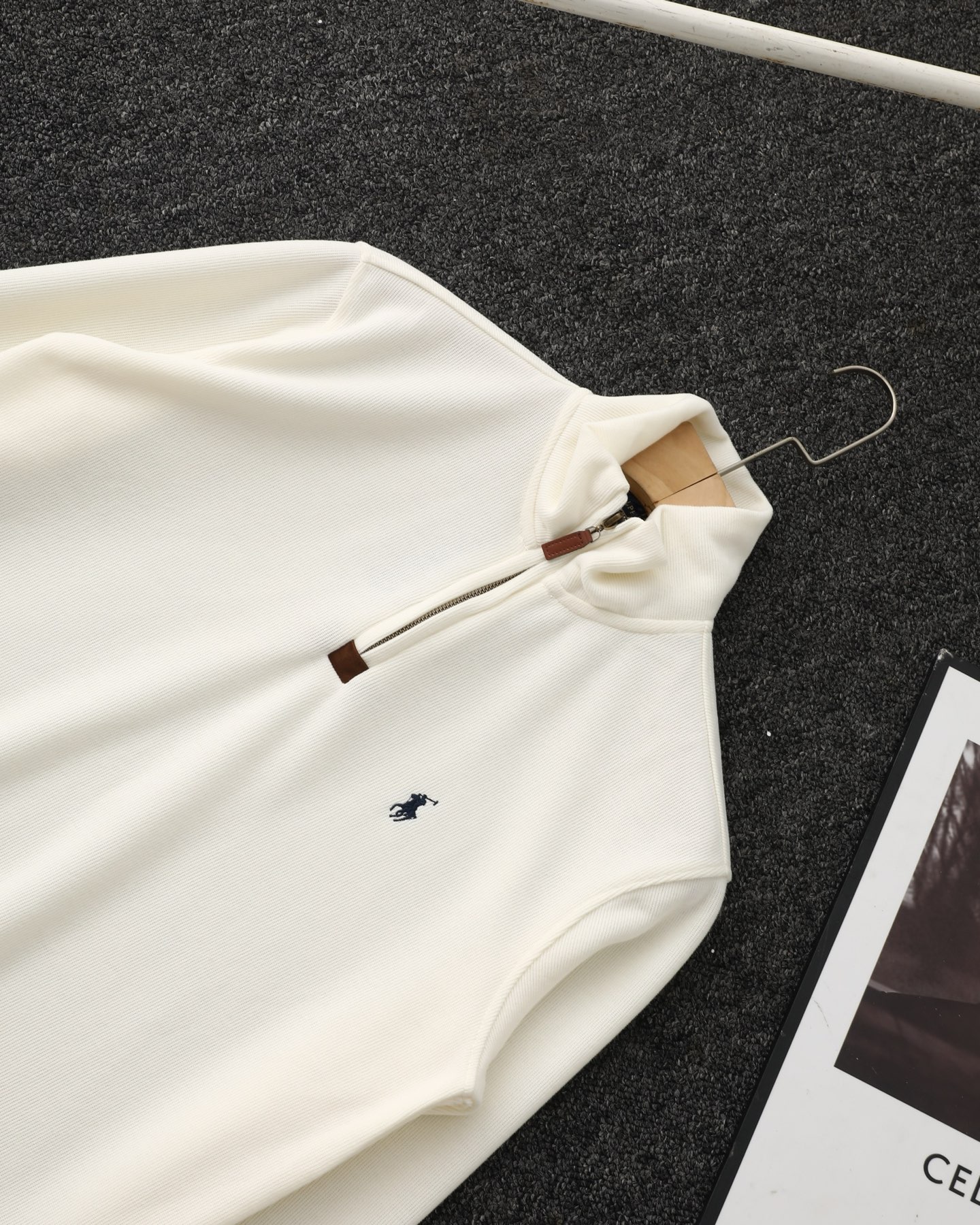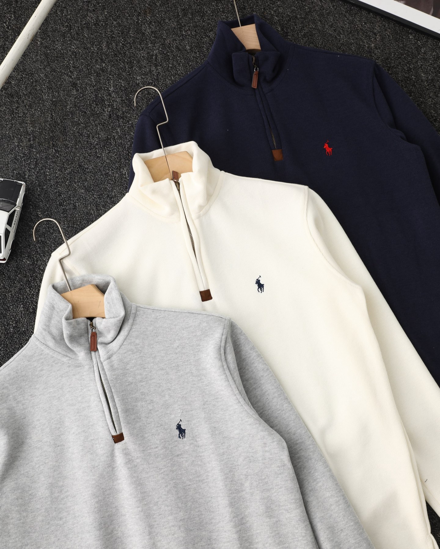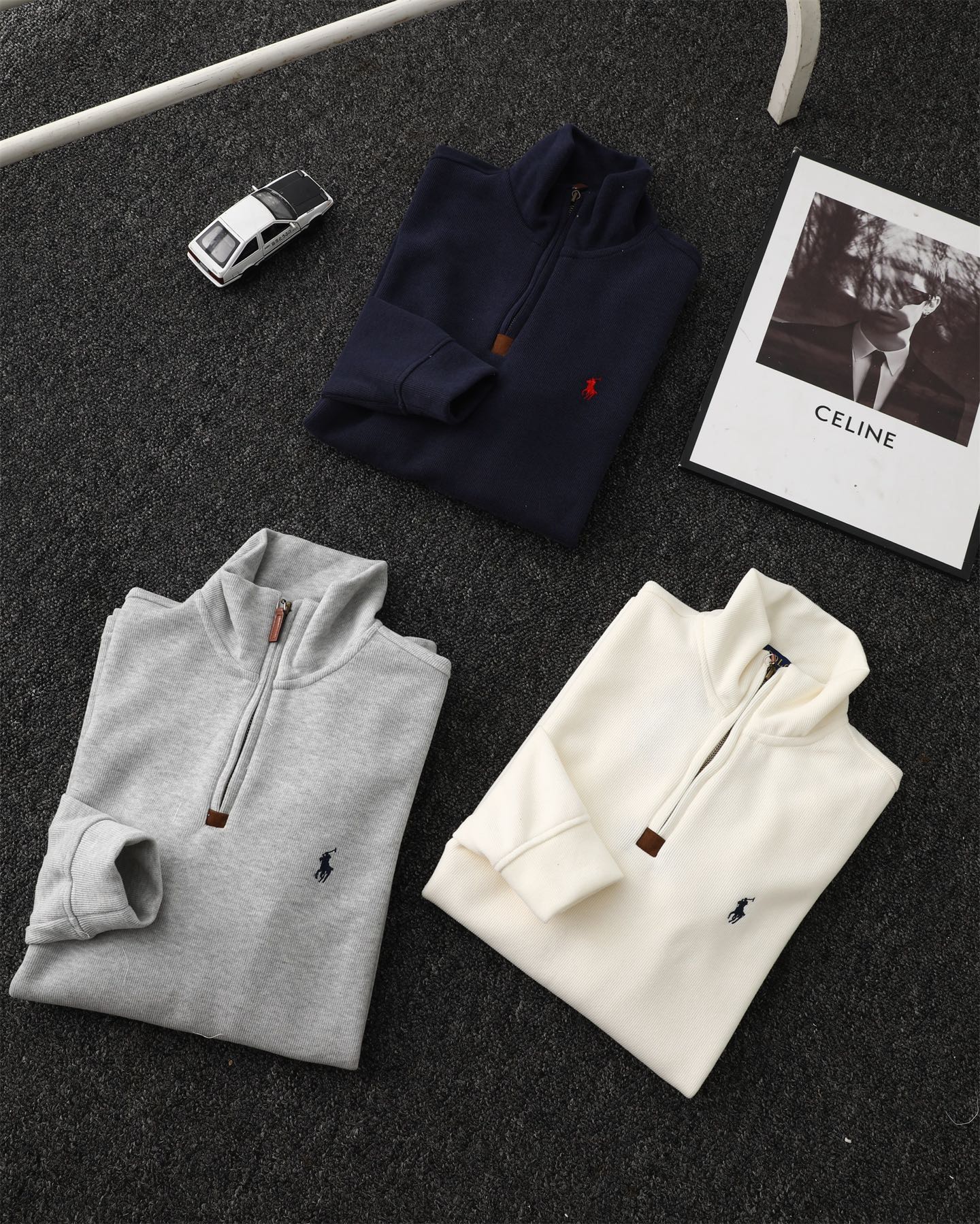 This Ralph Lauren quarter-zip pullover is a stylish and comfortable addition to any wardrobe. With its classic design and high-quality construction, it's perfect for casual wear or layering on cooler days.