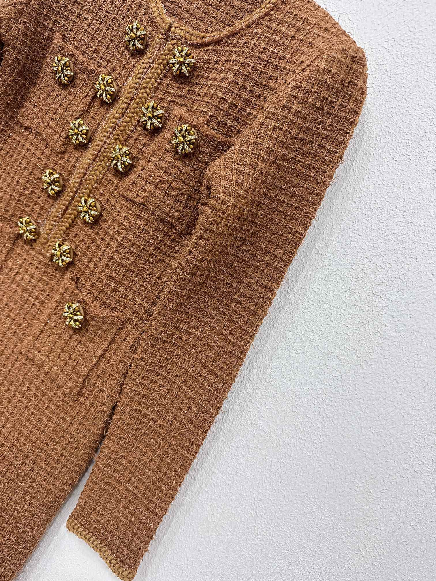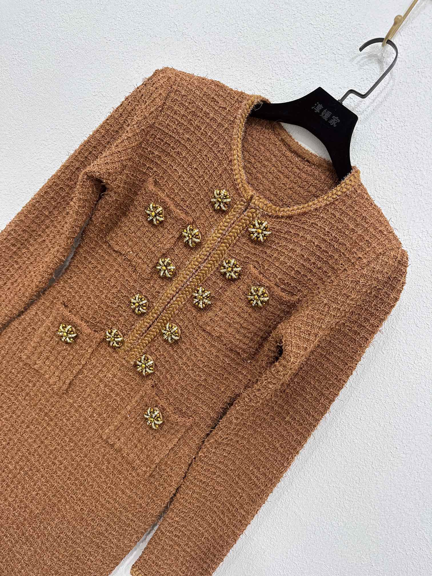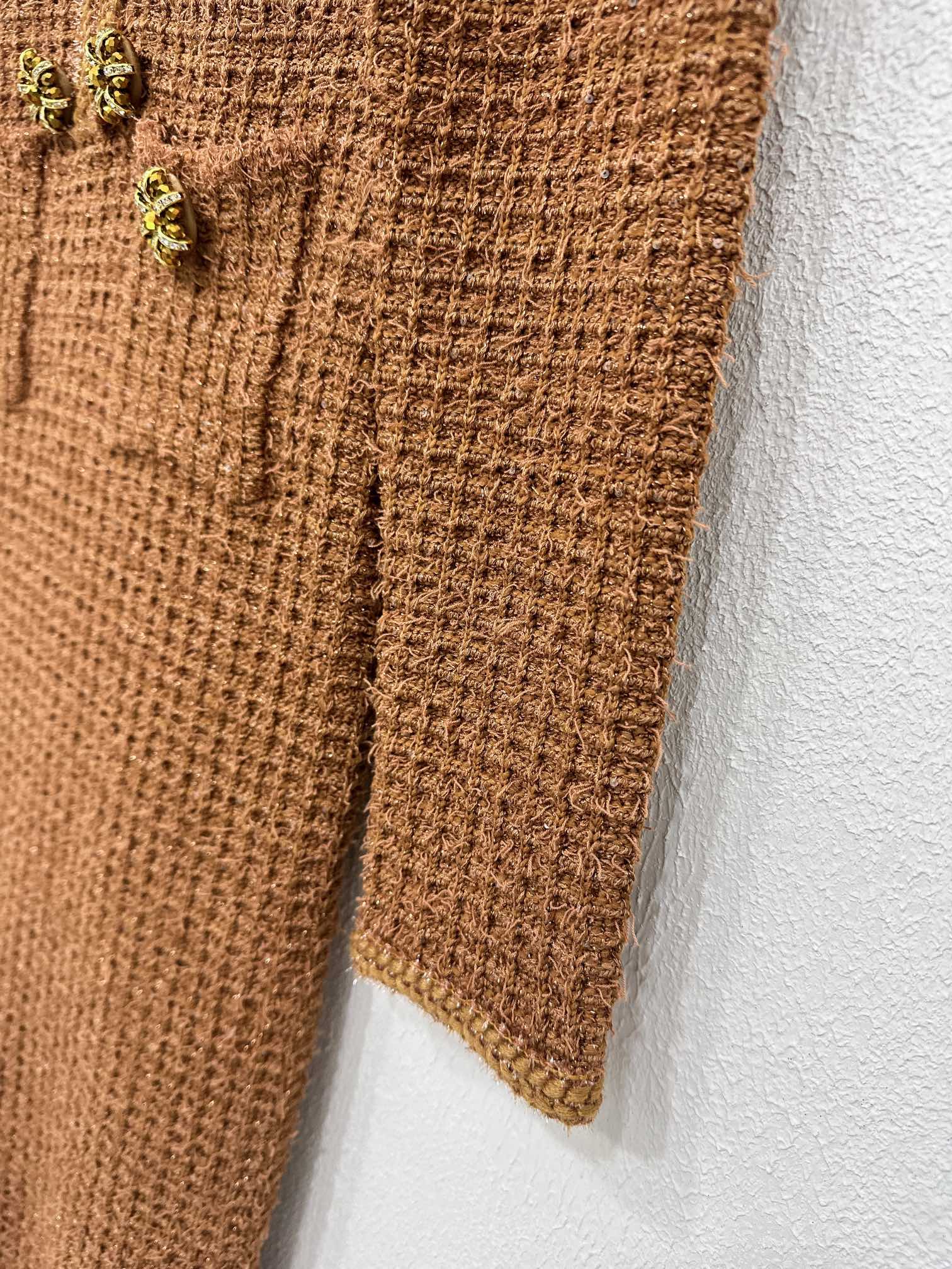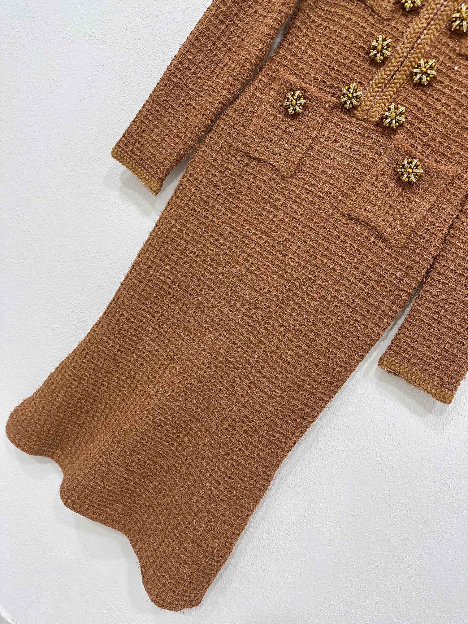 Self-Portrait Inspired Brown Waffle Knit Long Sleeve Round Neck Midi Dress