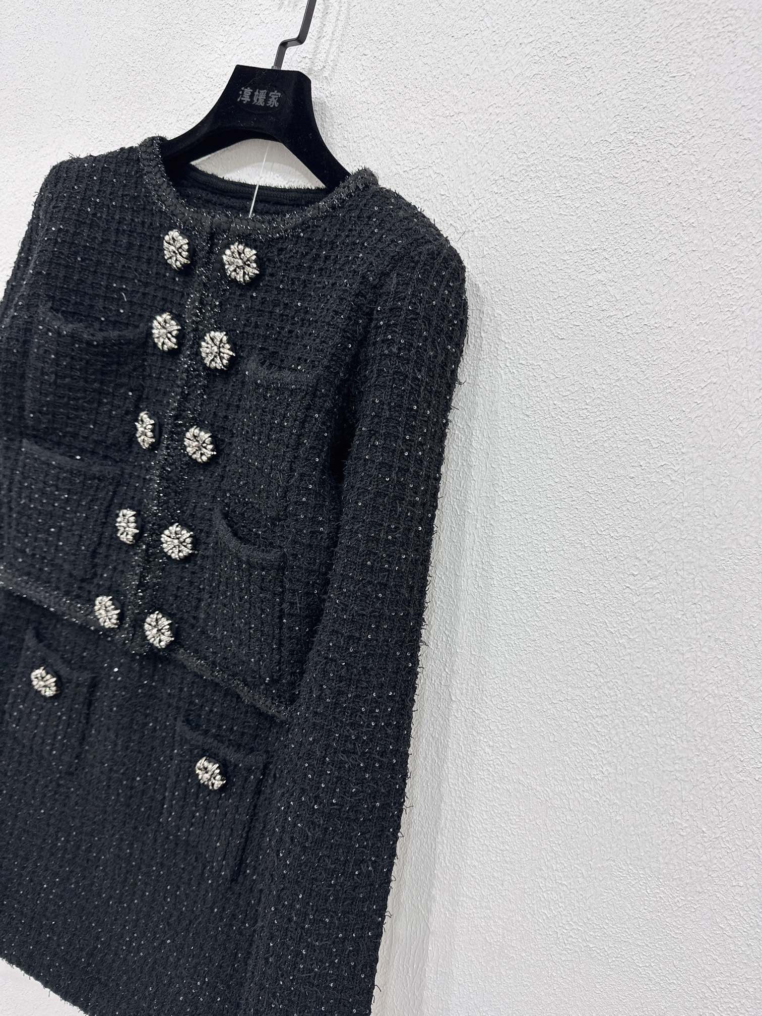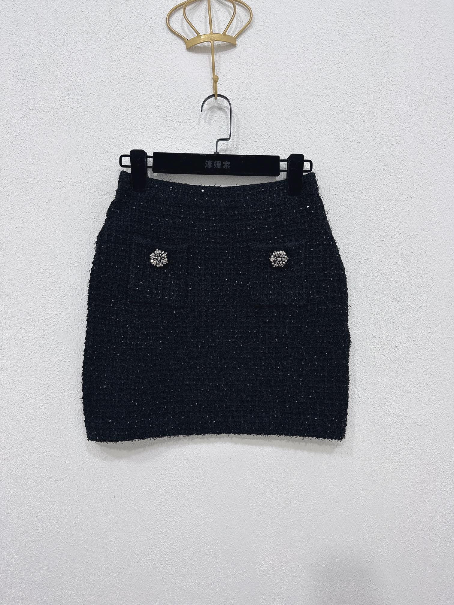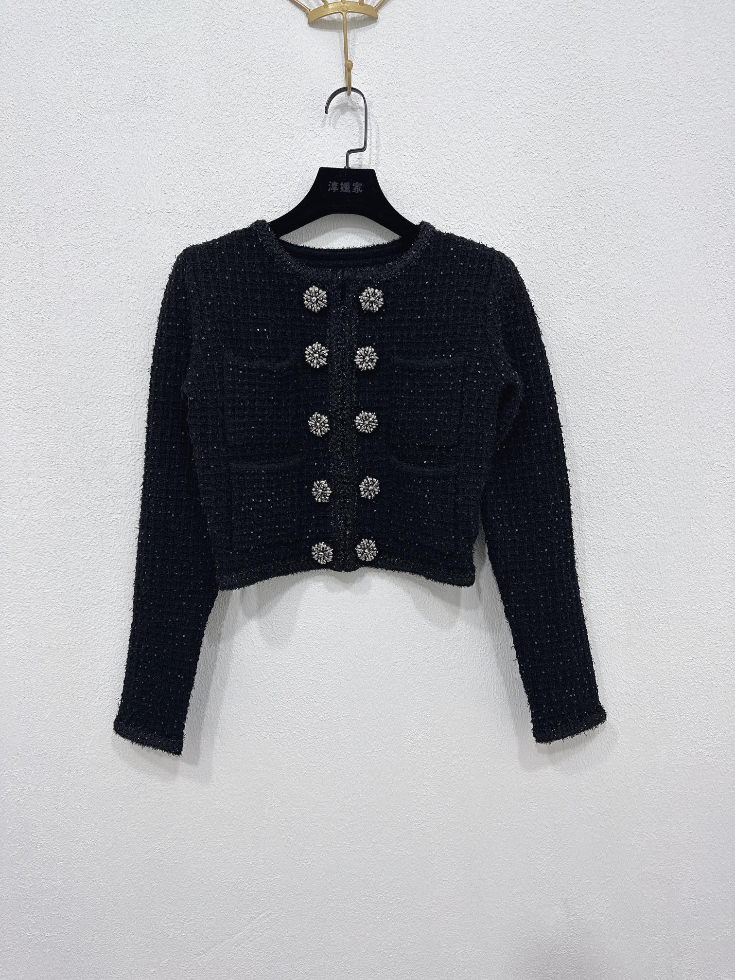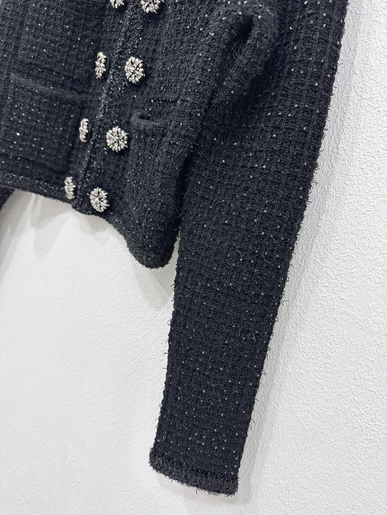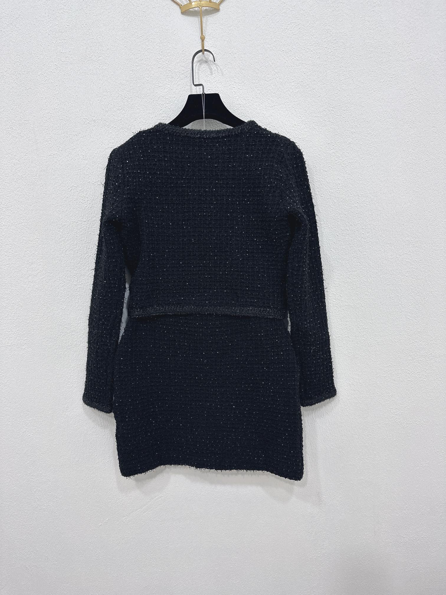 This sophisticated knit set is inspired by the elegance of Self-Portrait and the classic style of Chanel, offering a luxurious and refined look.