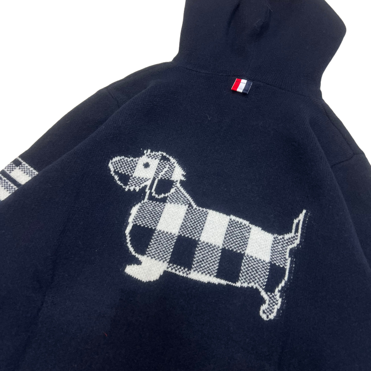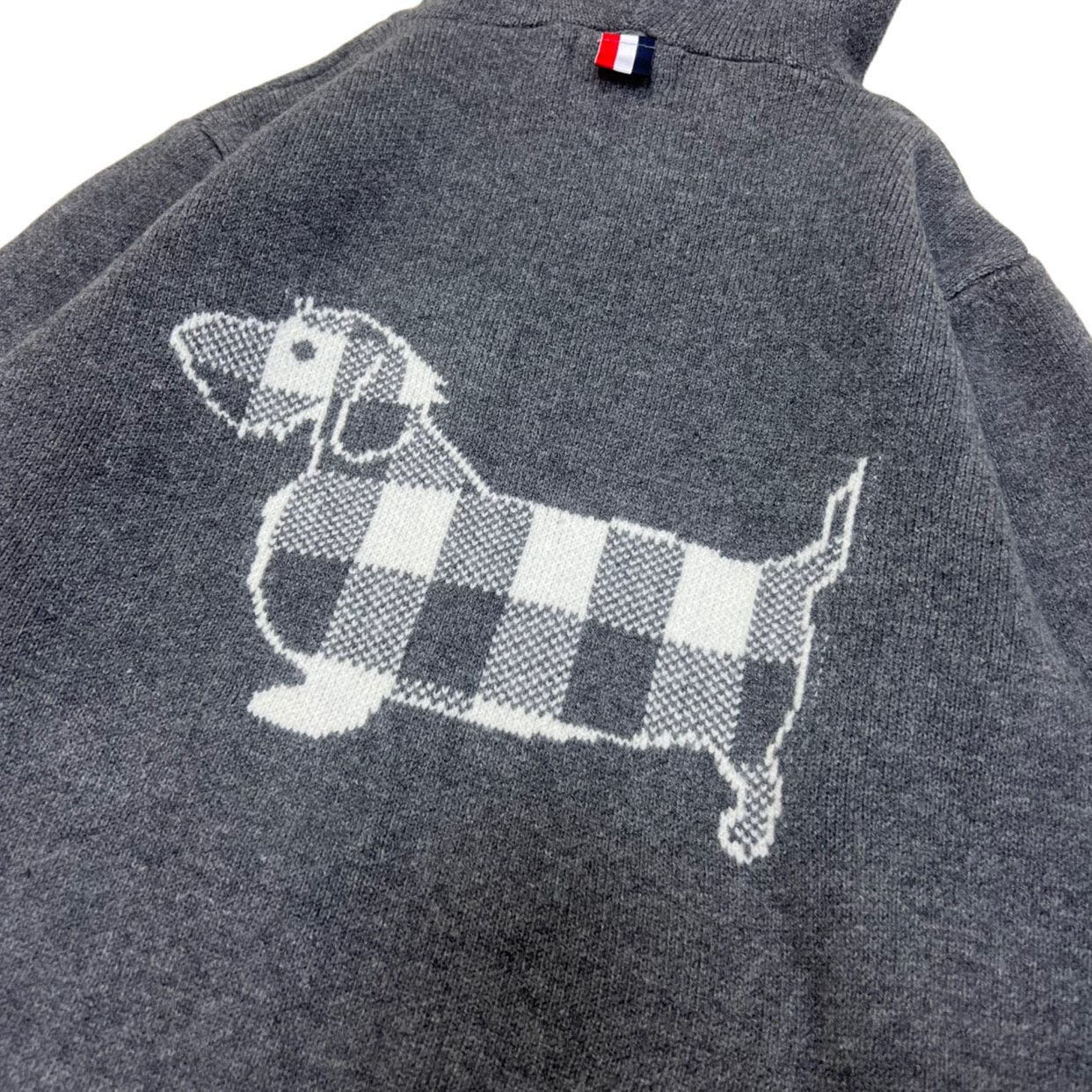 Thom Browne TB Classic Four-Bar Corgi Couple Hooded Zip Knit Cardigan