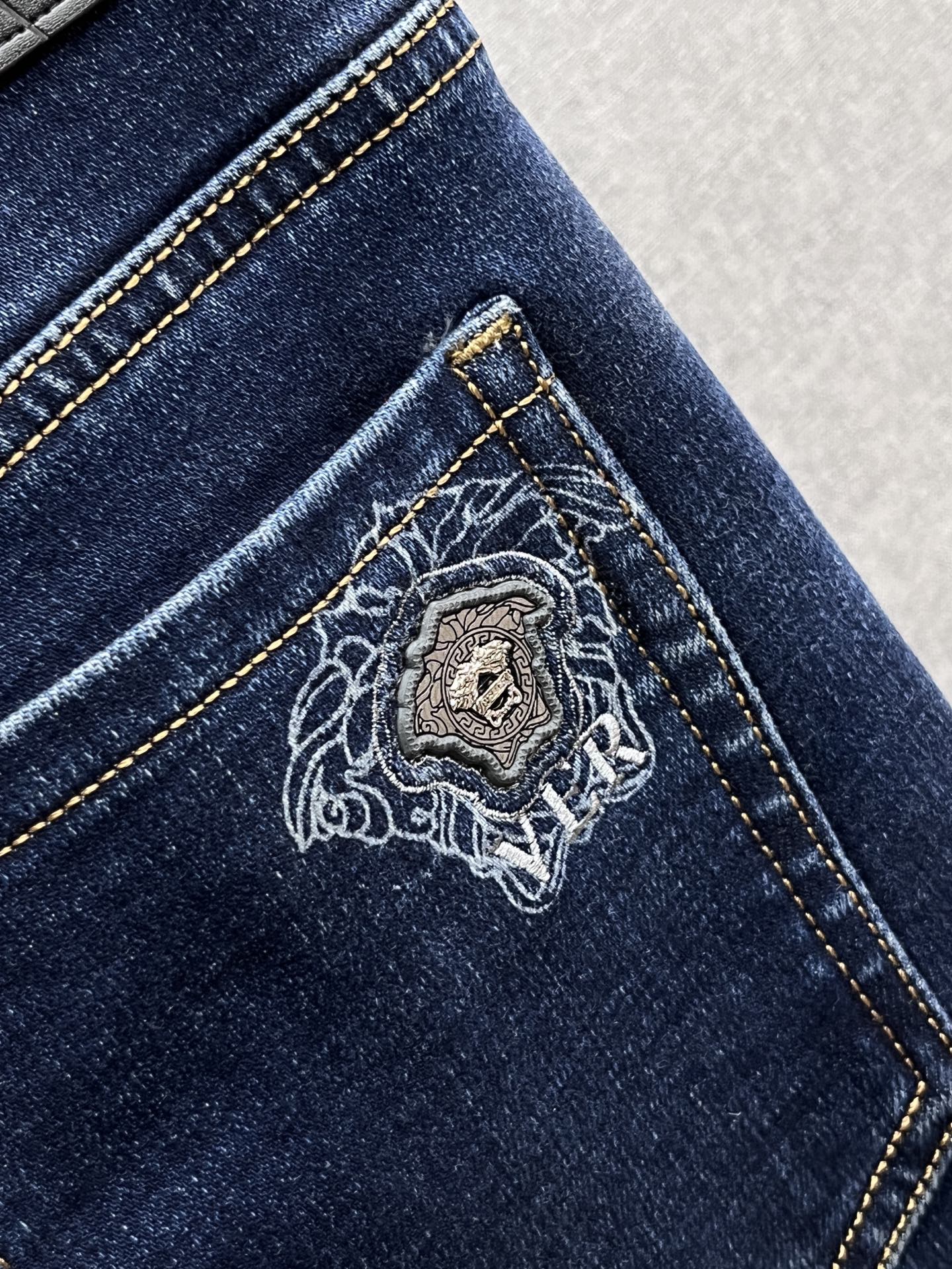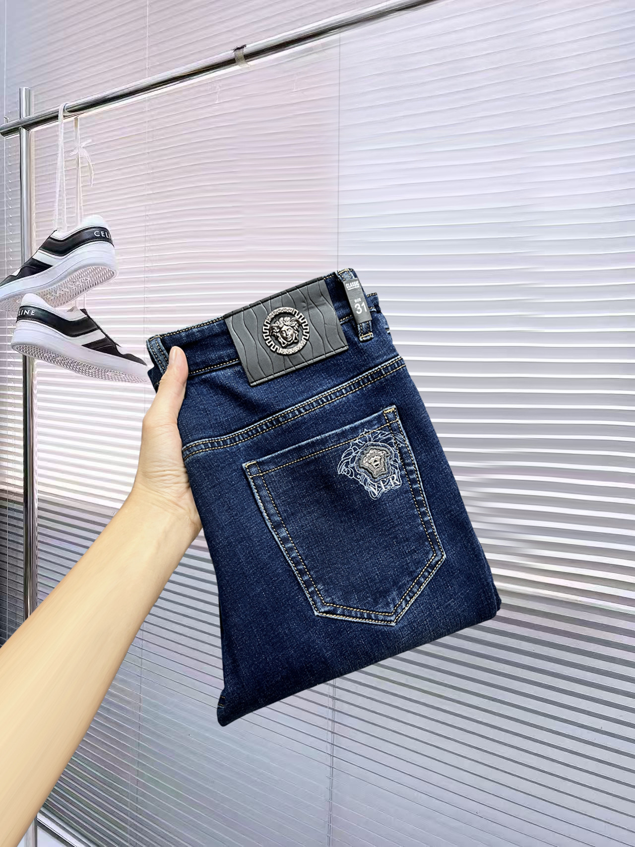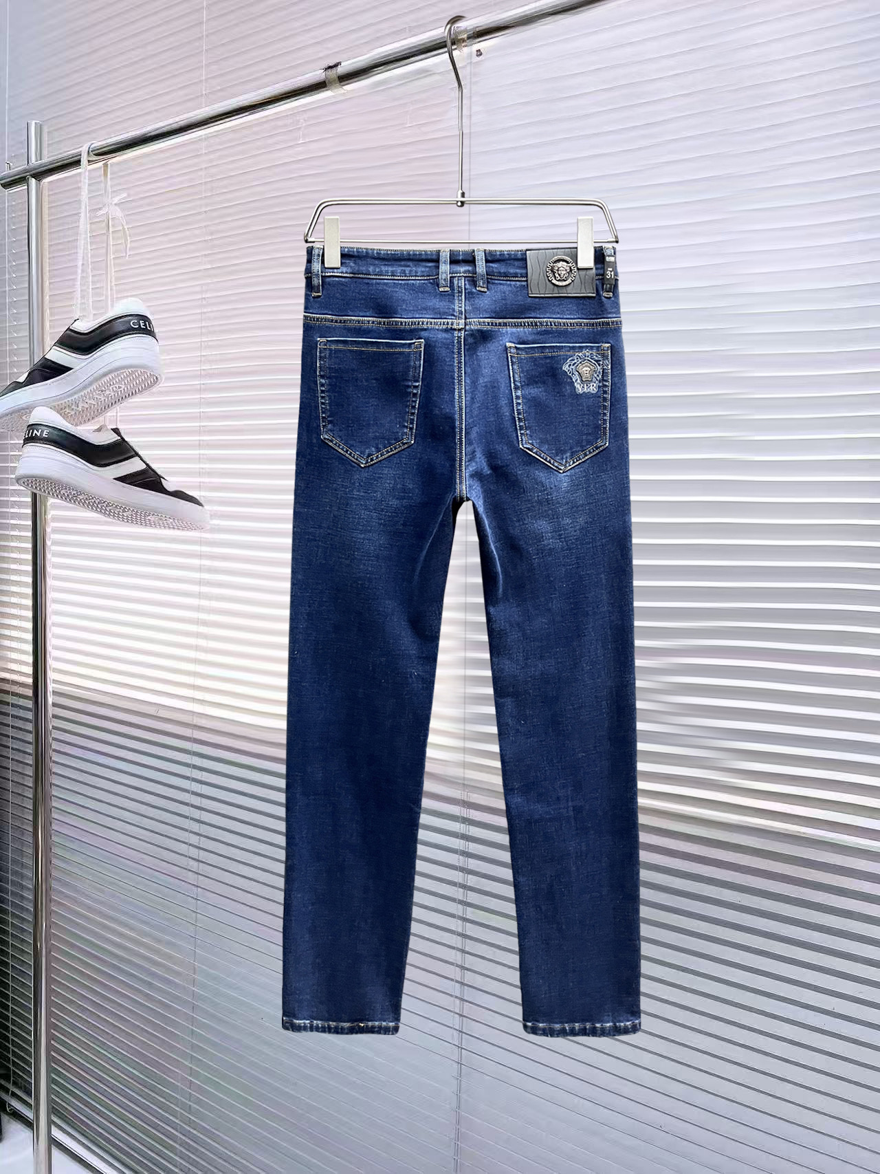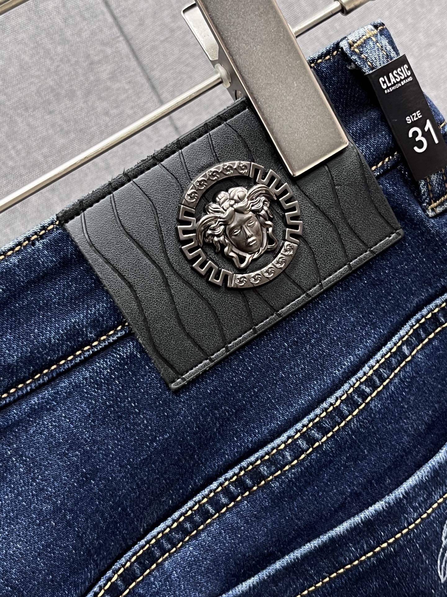 Upgrade your wardrobe with these Versace jeans, the perfect addition for a stylish and confident look.