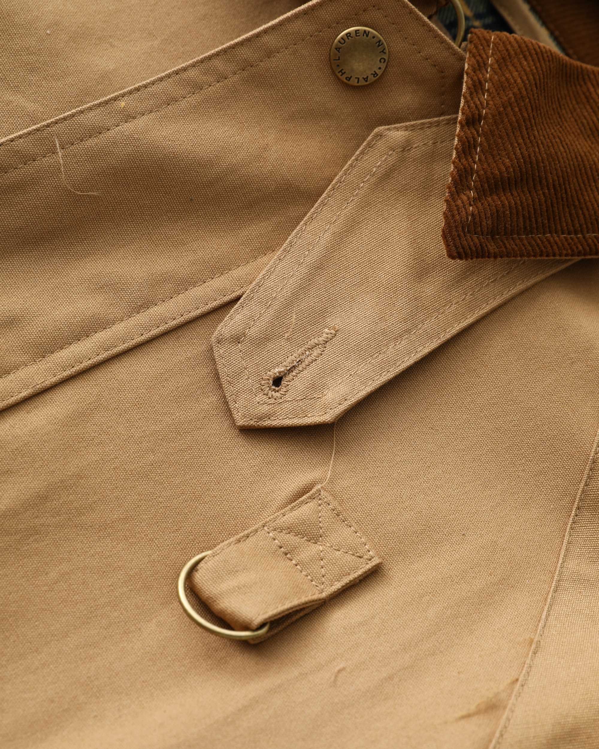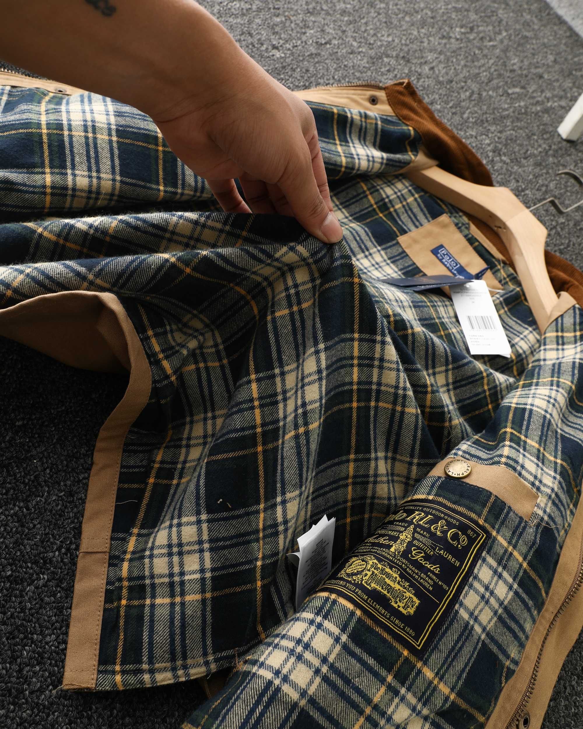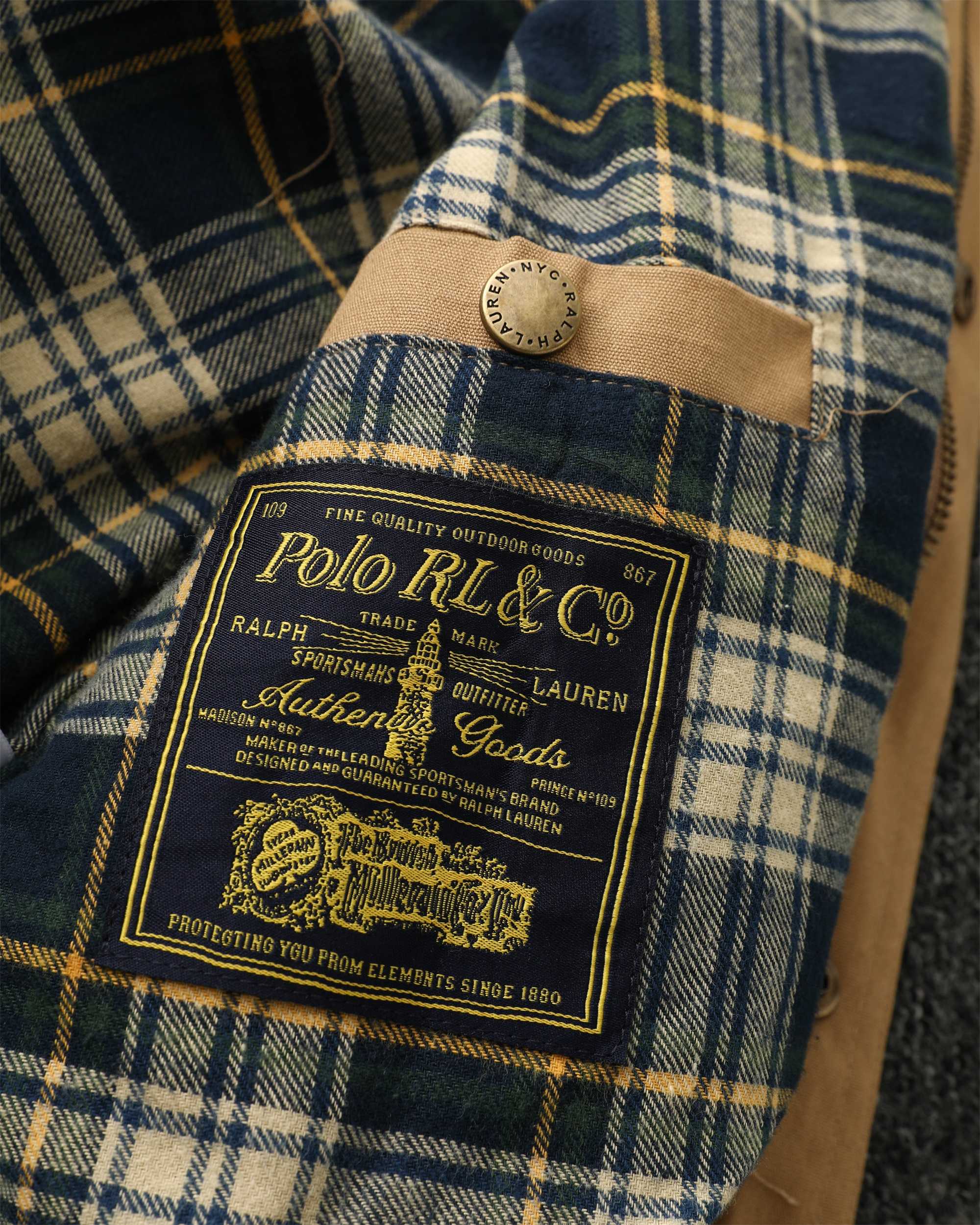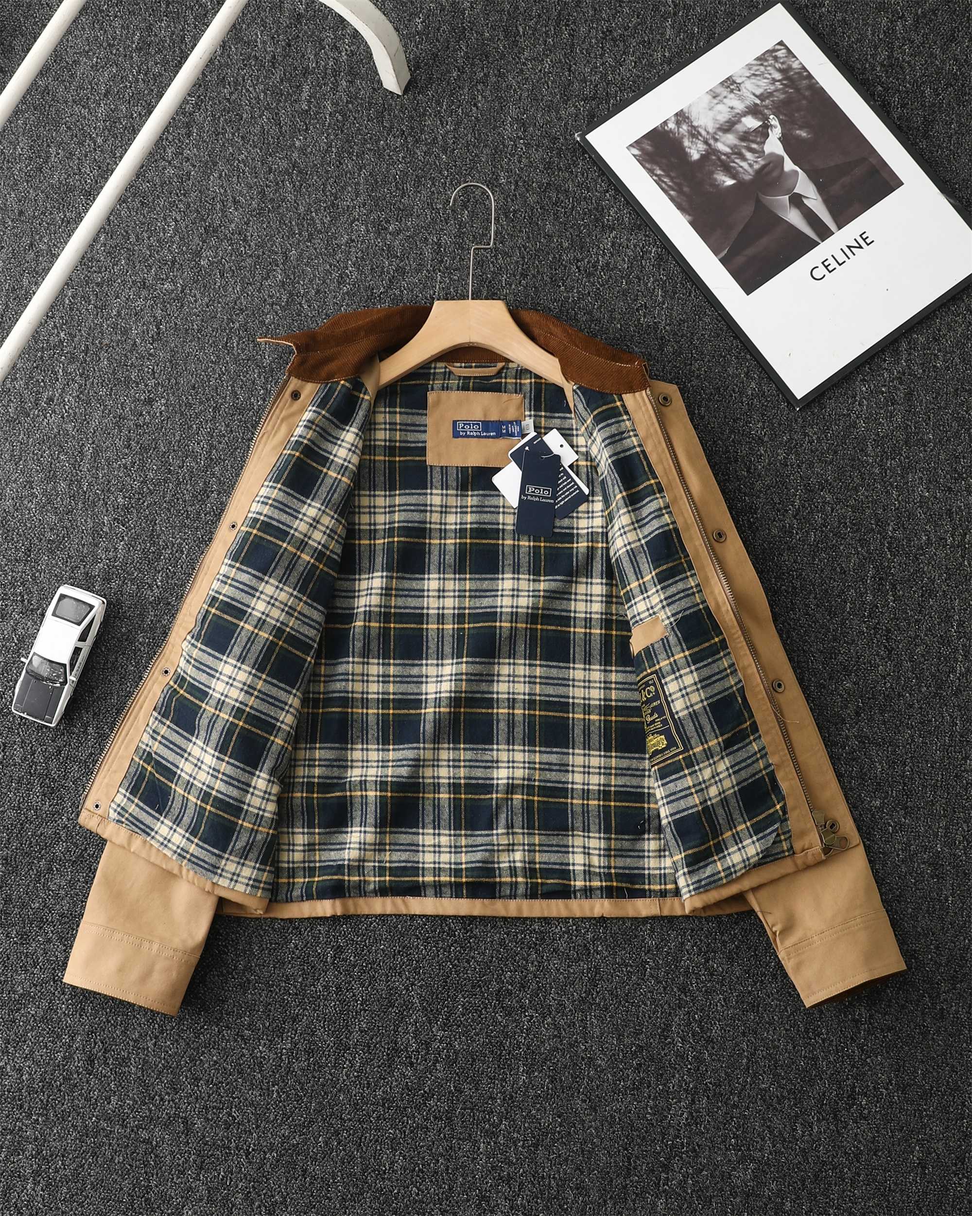 This Ralph Lauren-inspired jacket, with its barn-style design and solid colors, exudes a vintage charm that's both stylish and practical. Perfect for adding a touch of sophistication to any outfit, this jacket is a versatile addition to your wardrobe.