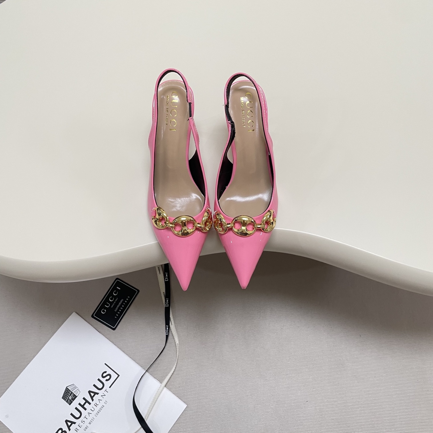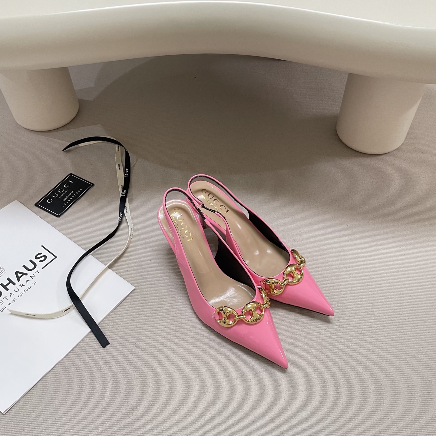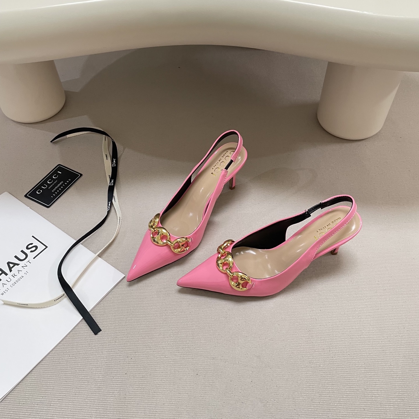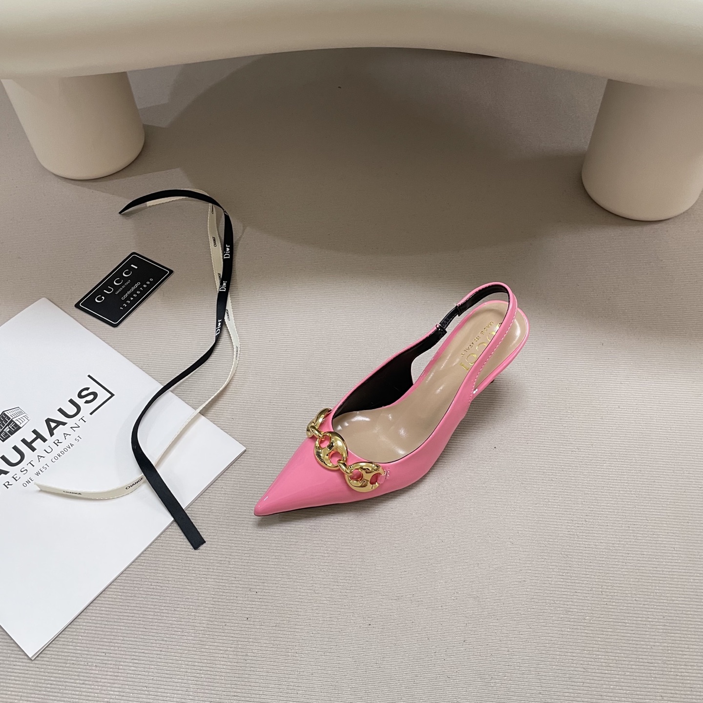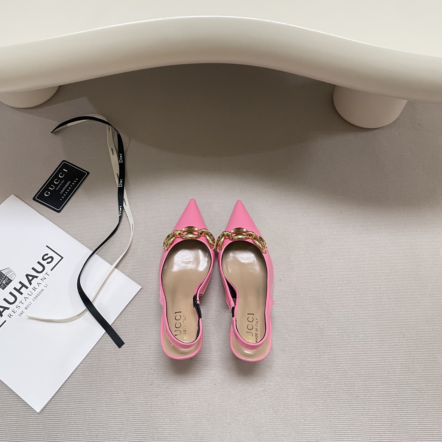 Gucci Pink Leather Slingback Kitten Heels with Gold Chain Detail