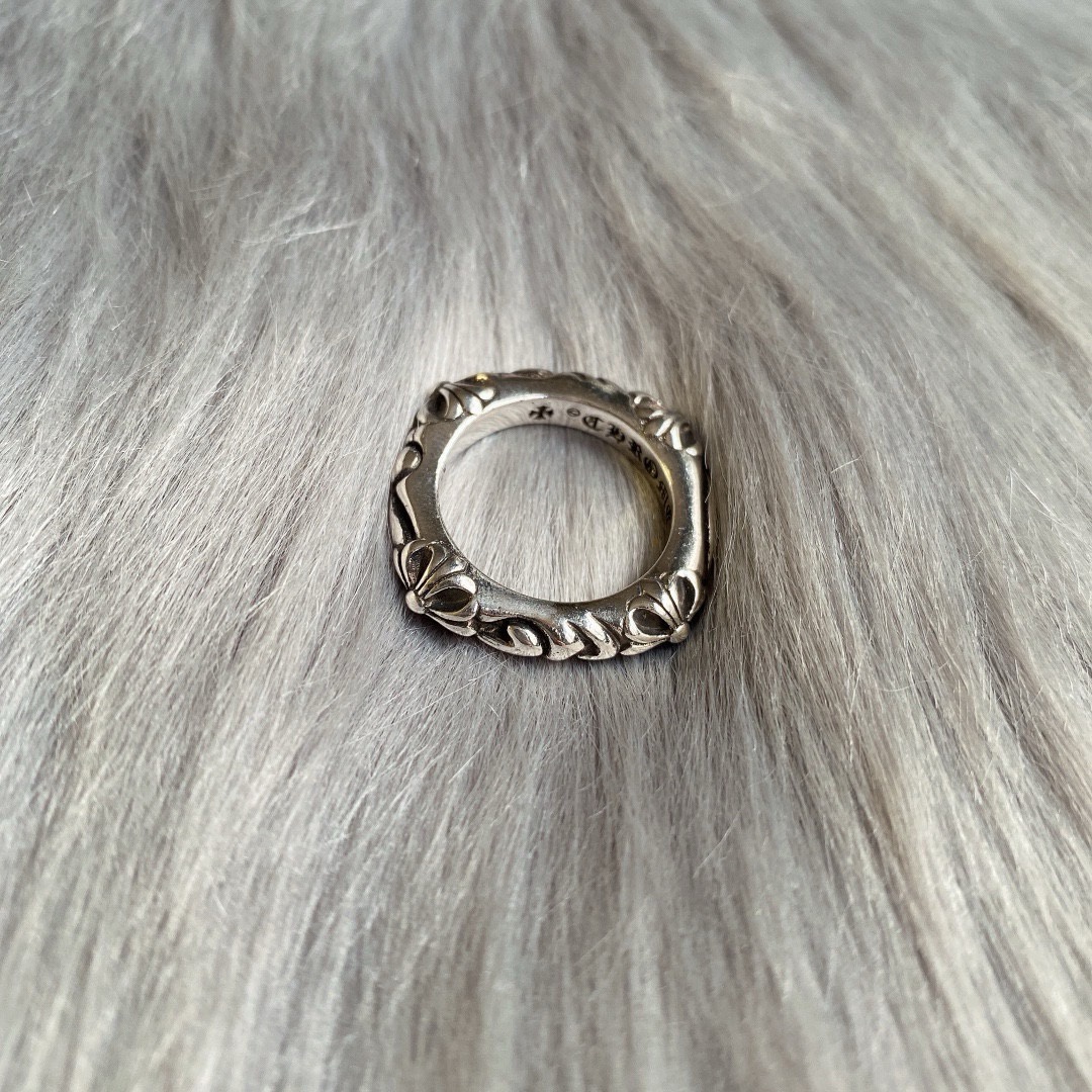 Chrome Hearts Classic Retro Ring With Floral and Cross Design