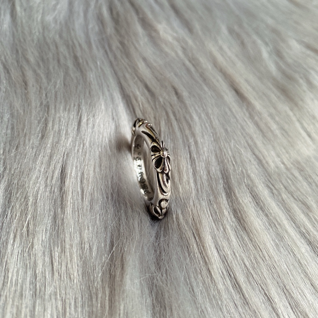 Elevate your style with this Chrome Hearts ring, showcasing classic retro aesthetics and a unique floral and cross design. A unisex piece that blends rock, punk, and vintage.