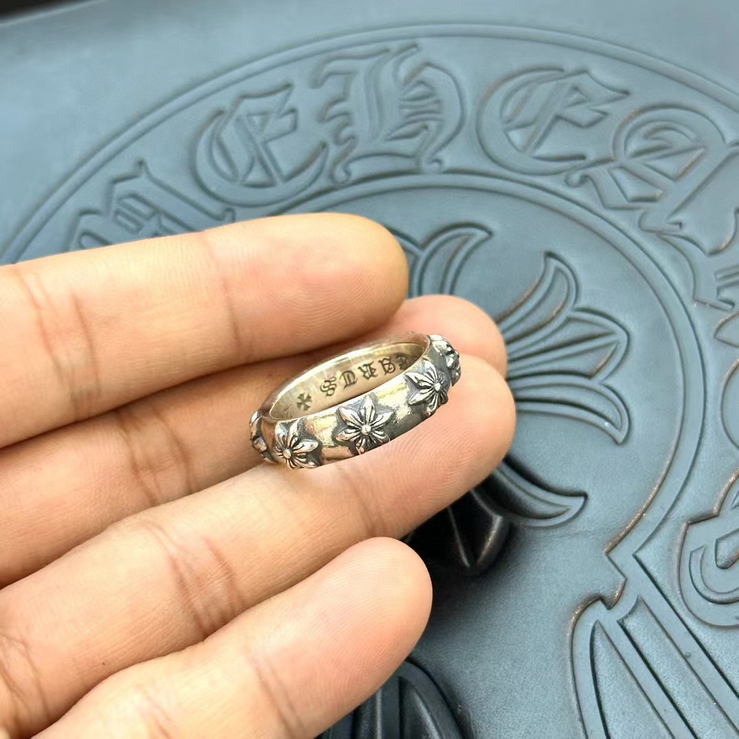 Chrome Hearts Six-Pointed Star Ring,Vintage Silver Style,Unisex Fashion