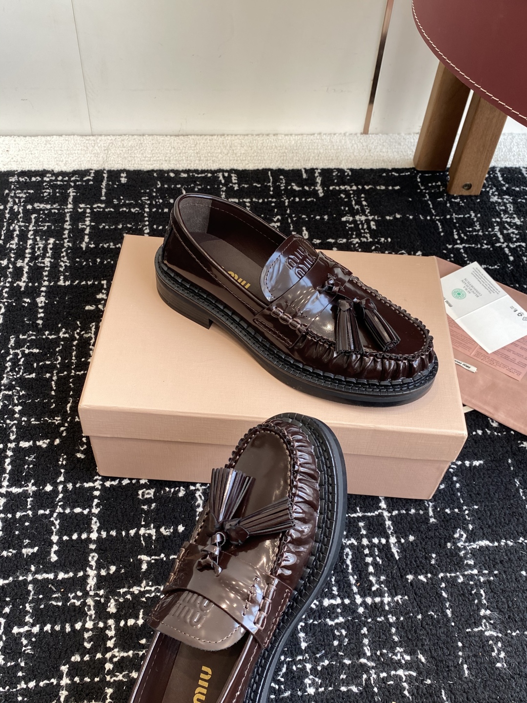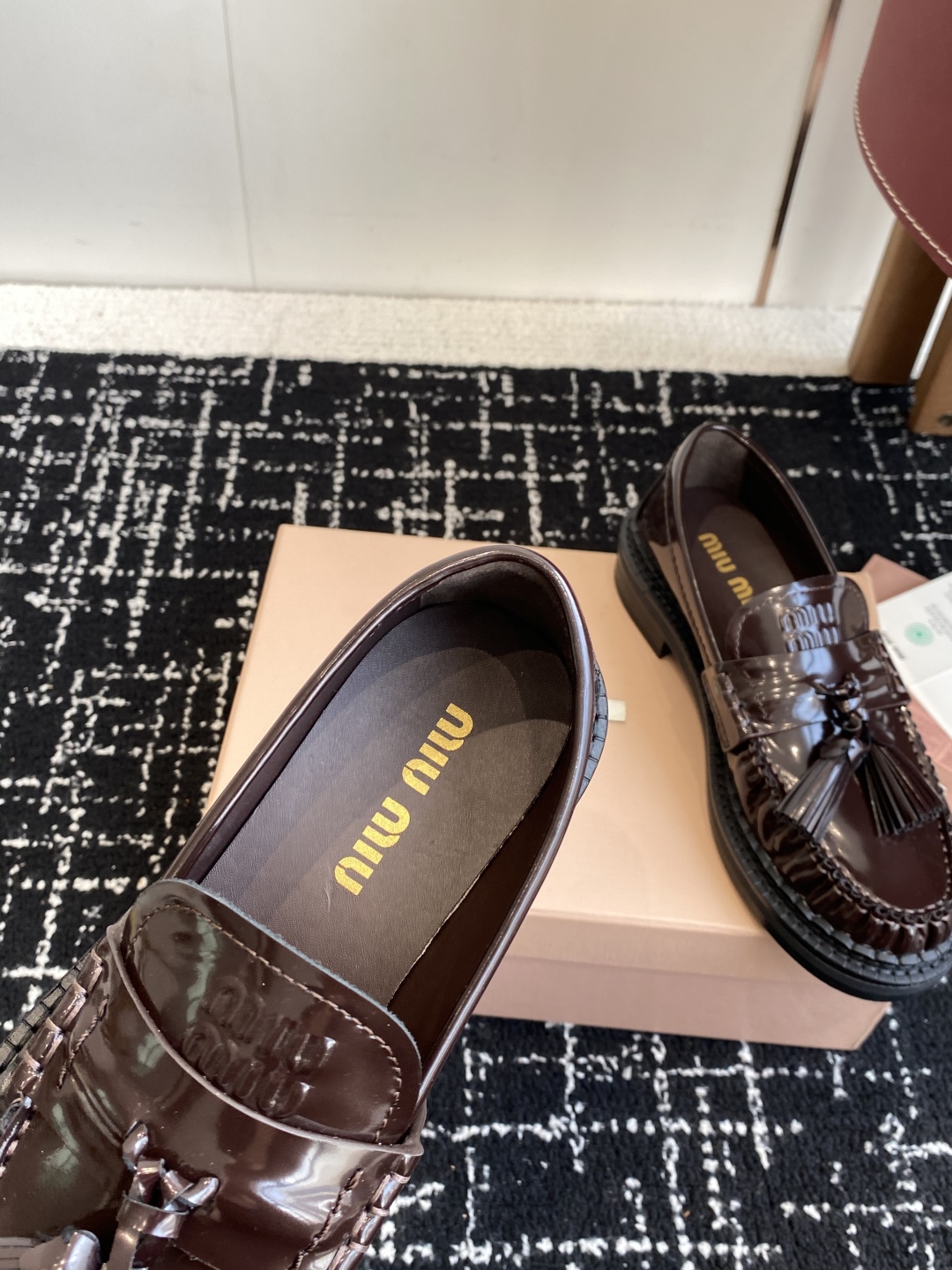 Step out in style with these Miu Miu loafers. Crafted from premium leather, these shoes offer a classic design with tassel detailing.