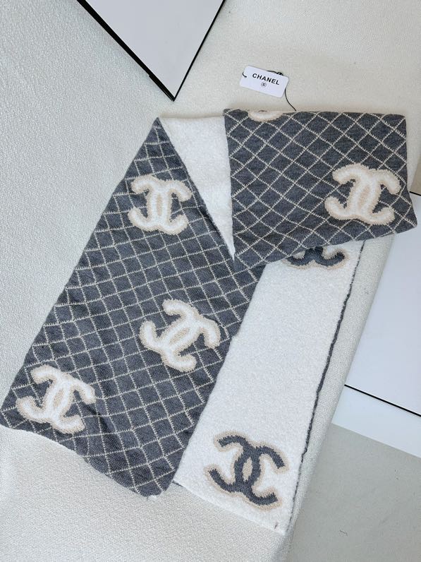 Elegant Chanel Cashmere Scarf, 35x180cm, Designer Embroidered Shawl