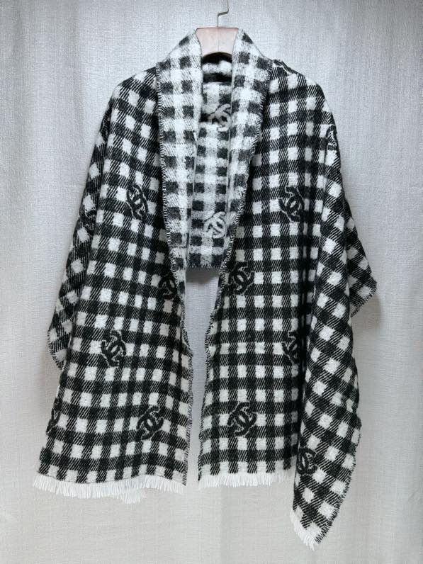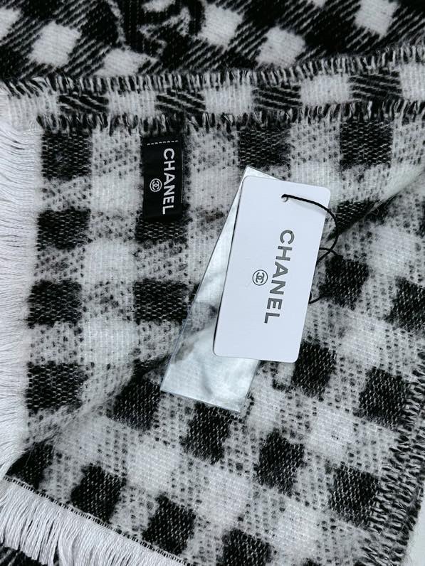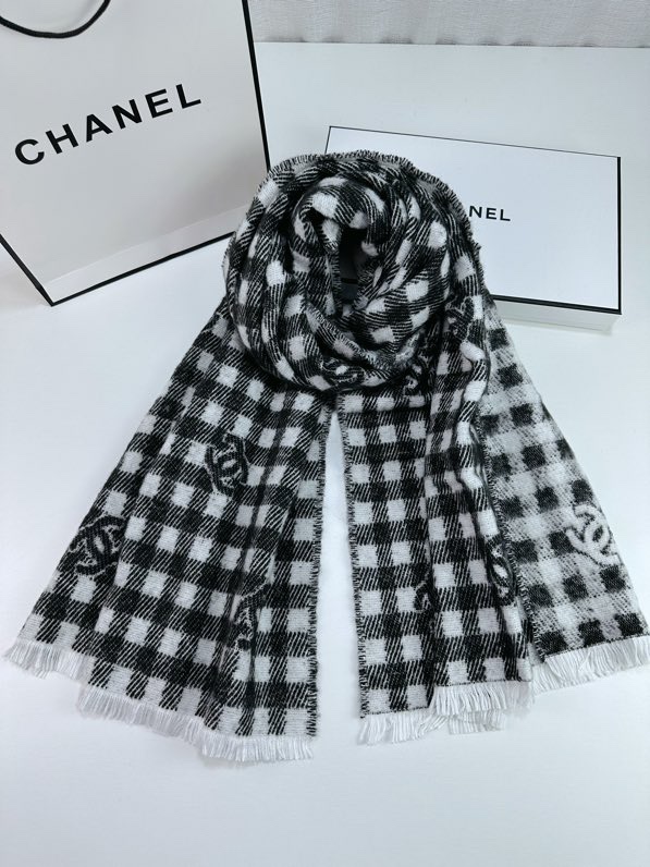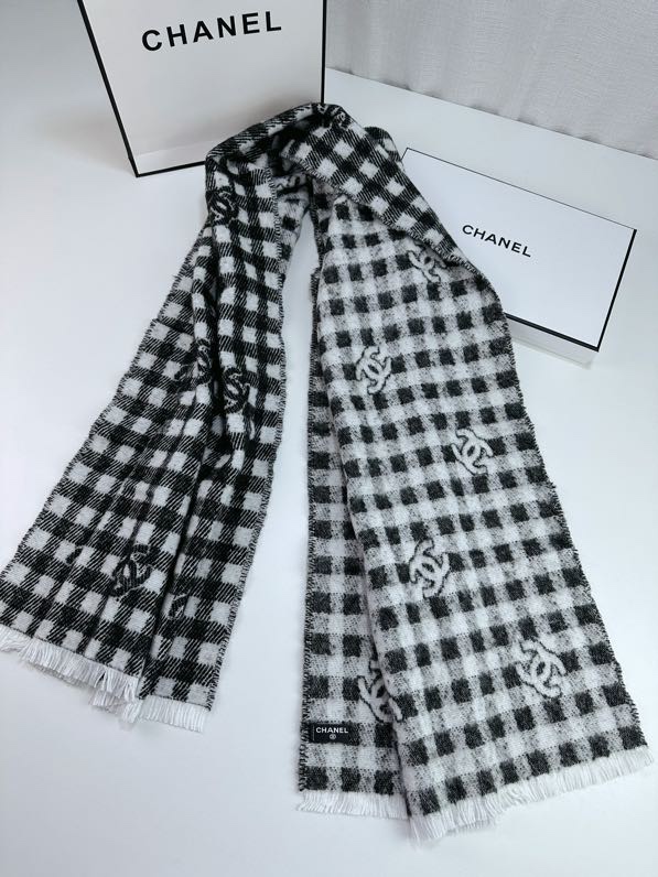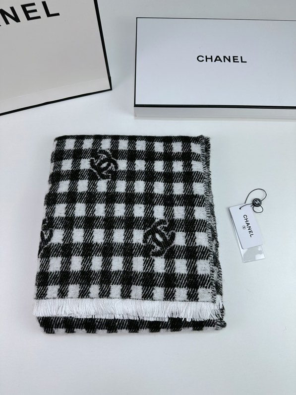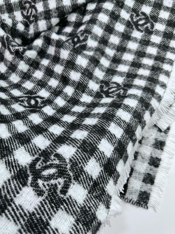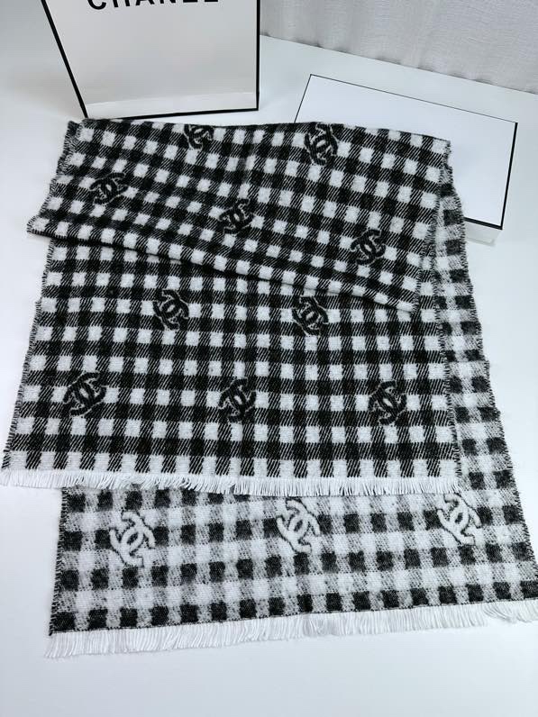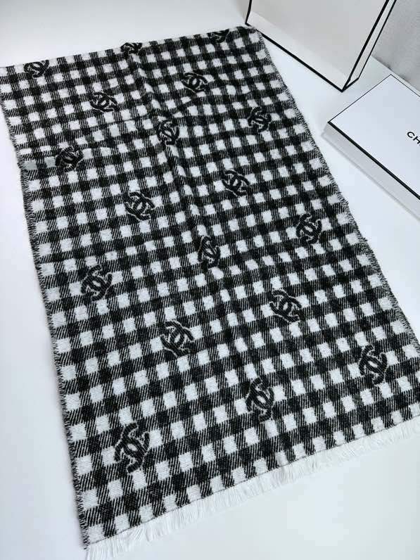 Elegant Chanel Wool Cashmere Blend Scarf - Classic Plaid Design, 50 x 180 cm