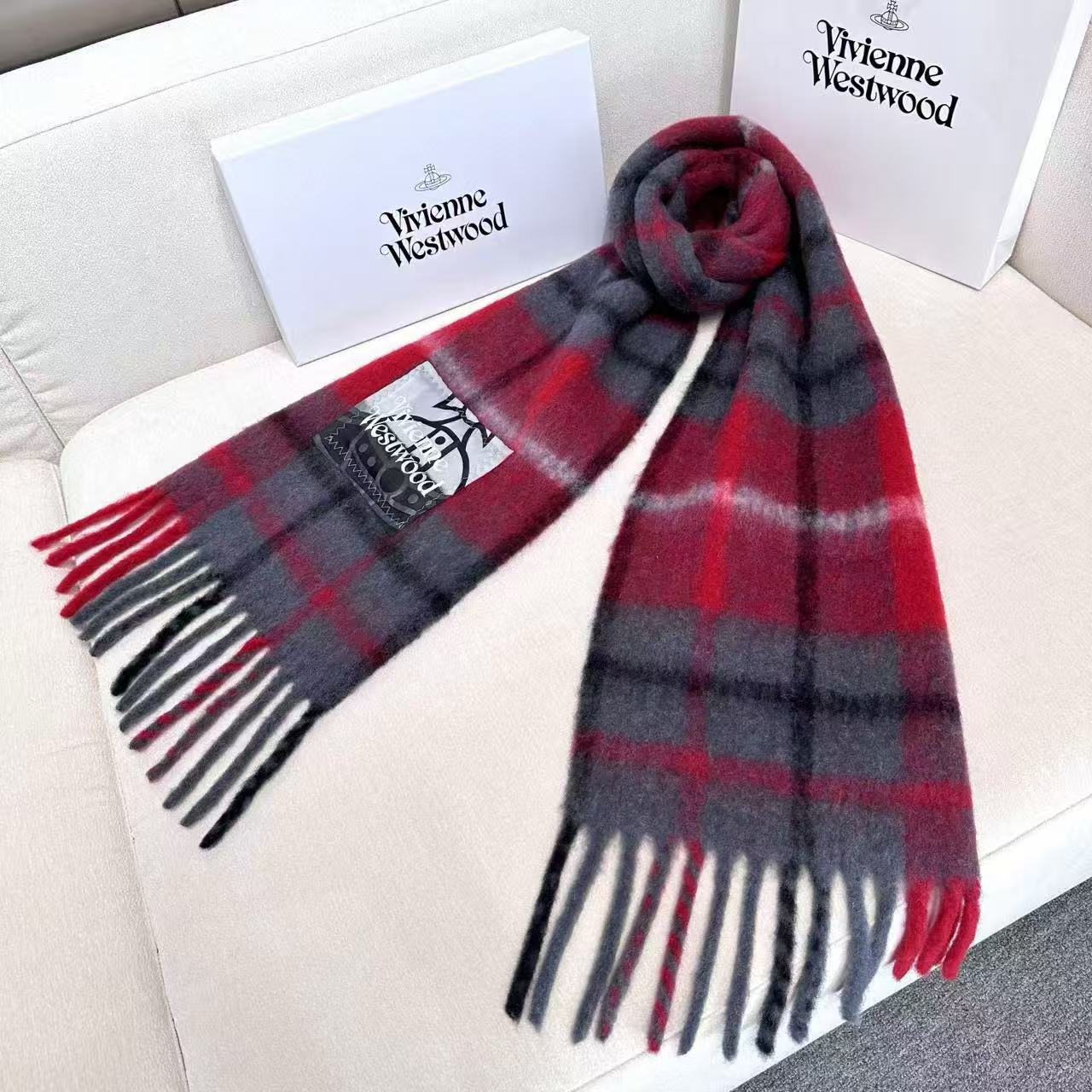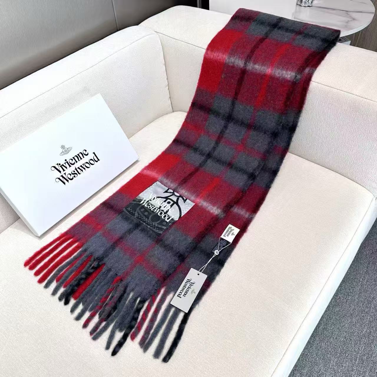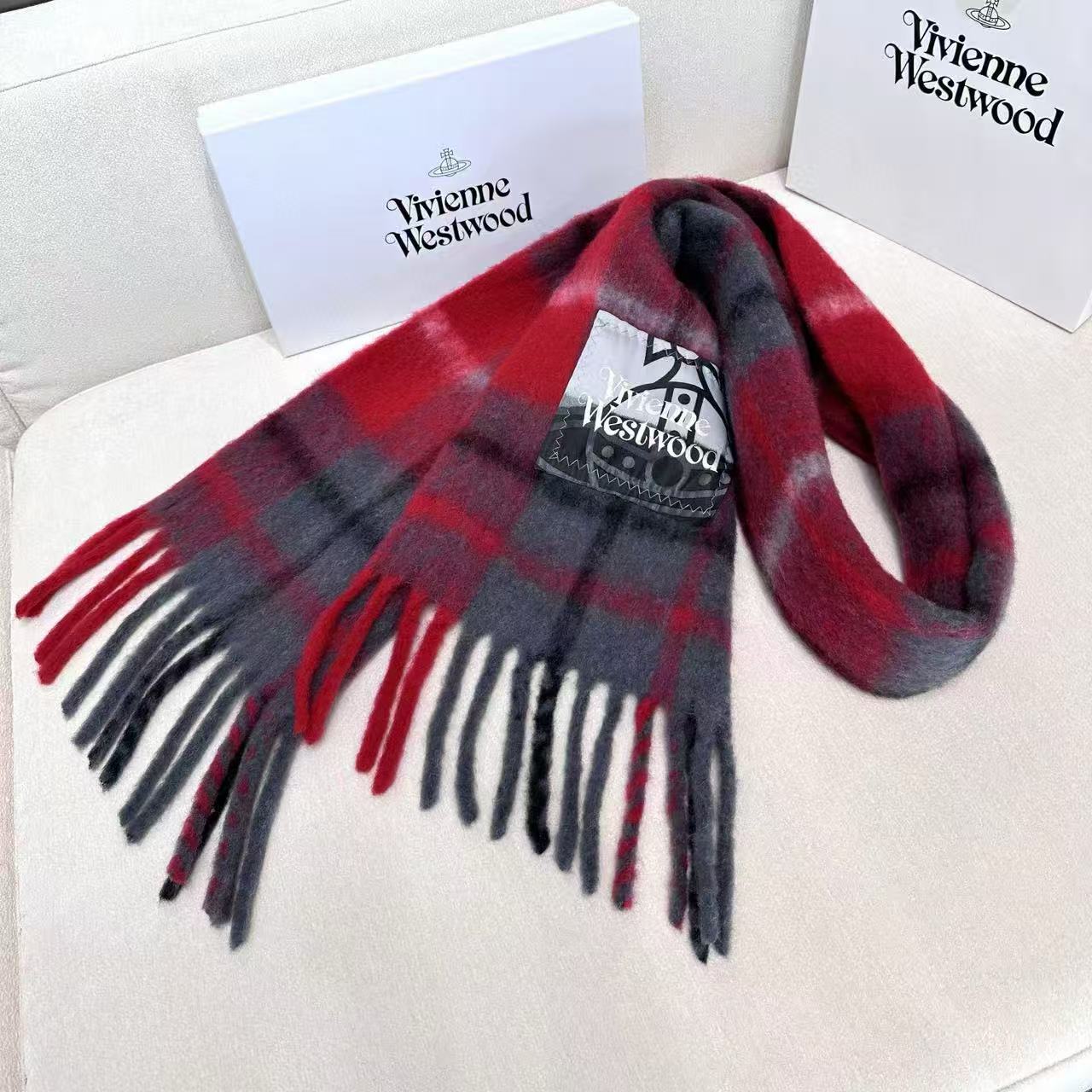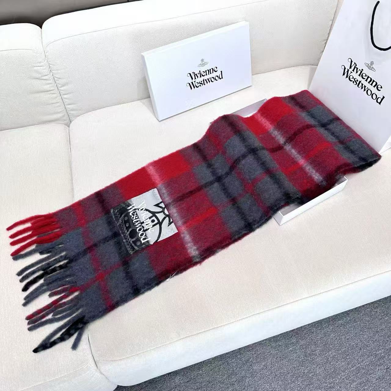 Wrap yourself in luxury with this iconic Vivienne Westwood scarf. Featuring a classic plaid pattern, perfect for adding a touch of punk elegance to any outfit.