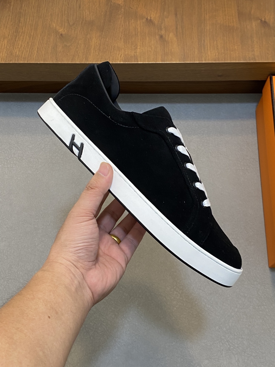 Hermès Kiddy Black Suede Sneakers with White Laces, Sizes 39-44