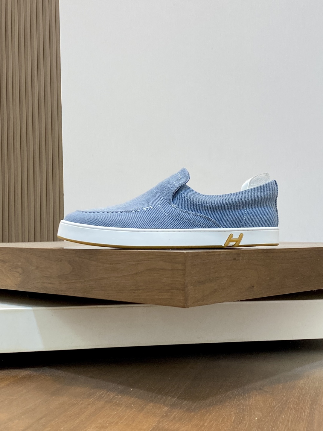 The HHermesKiddy slip-on sneakers redefine casual style with their blend of comfort and iconic design. Crafted from premium denim and suede, these sneakers feature a distinctive 'H' detail, making them a standout addition to any wardrobe.