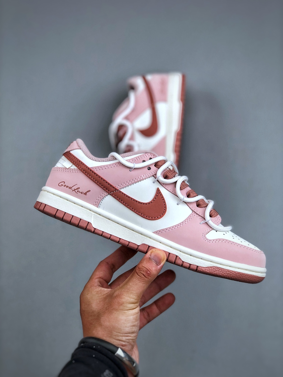 Nike SB Dunk Low "Just Do It" Pink and Brown Leather Shoes