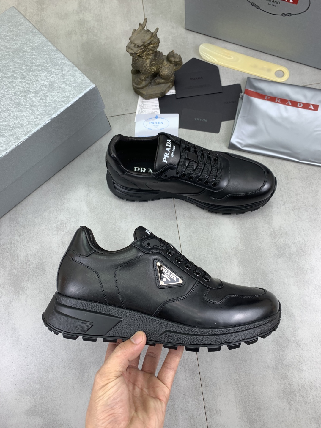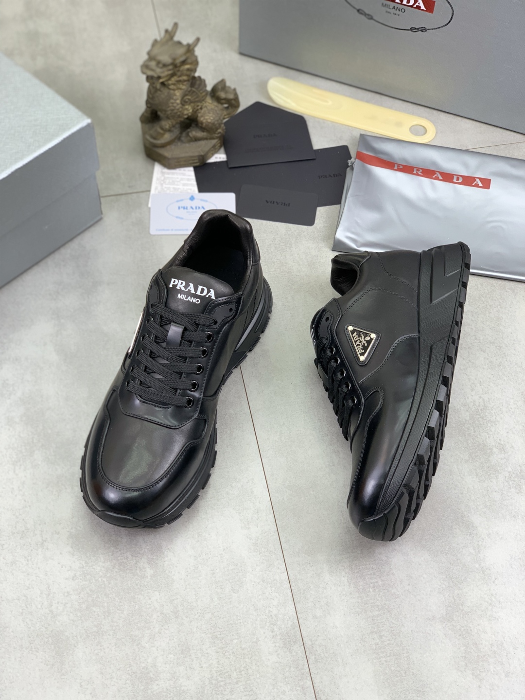 Prada Men's Black Leather Sneakers - Stylish, Comfortable, and High-Quality