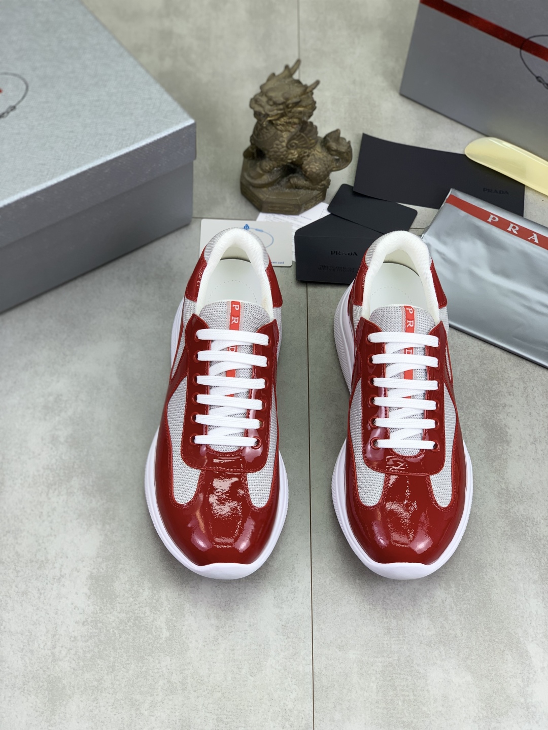 Prada Men's Fashion Sneakers Cowhide Patchwork Lace-up Casual Shoes