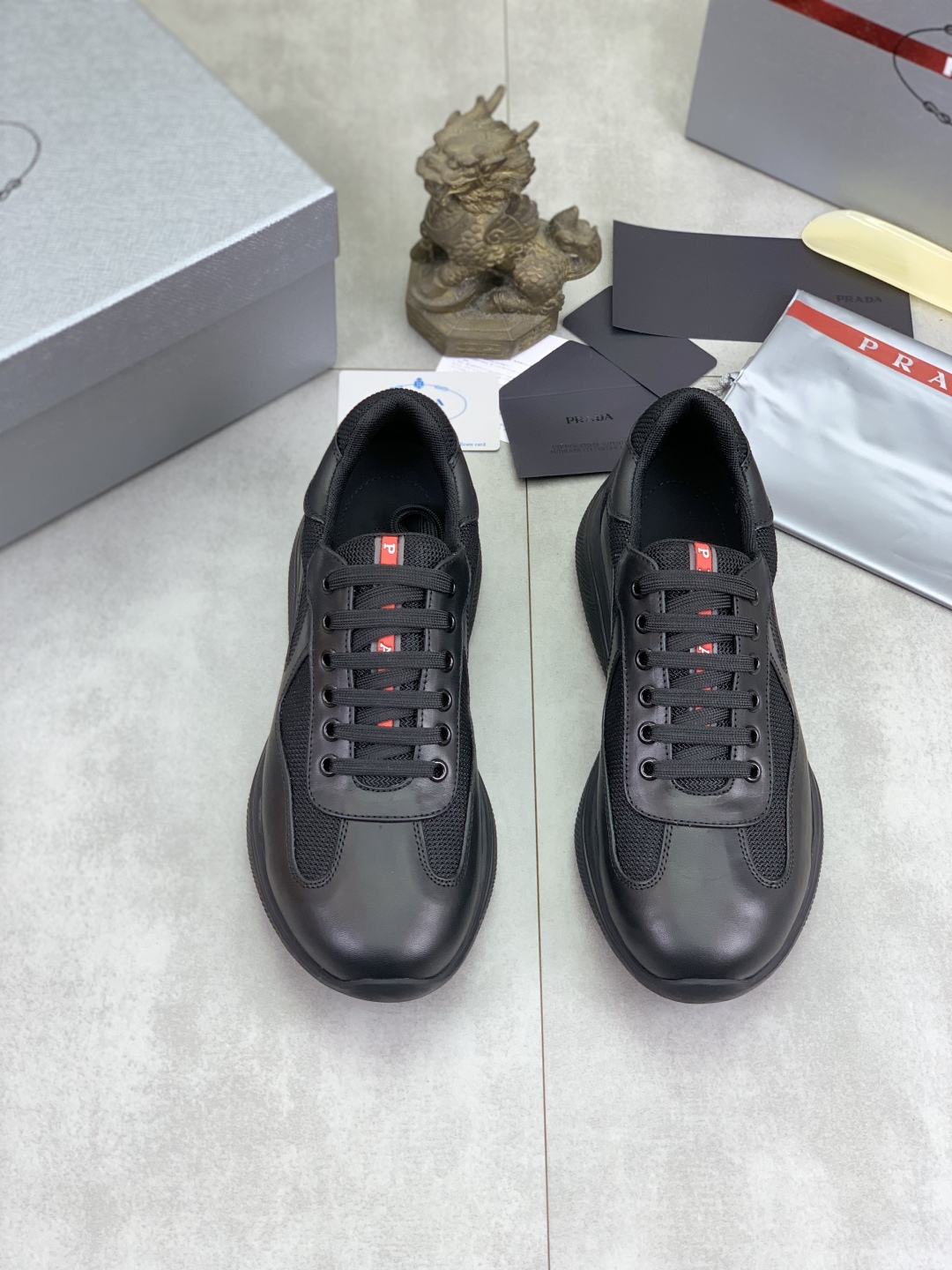 Prada Men's Fashion Sneakers - Stylish Leather & Mesh Lace-Up Shoes