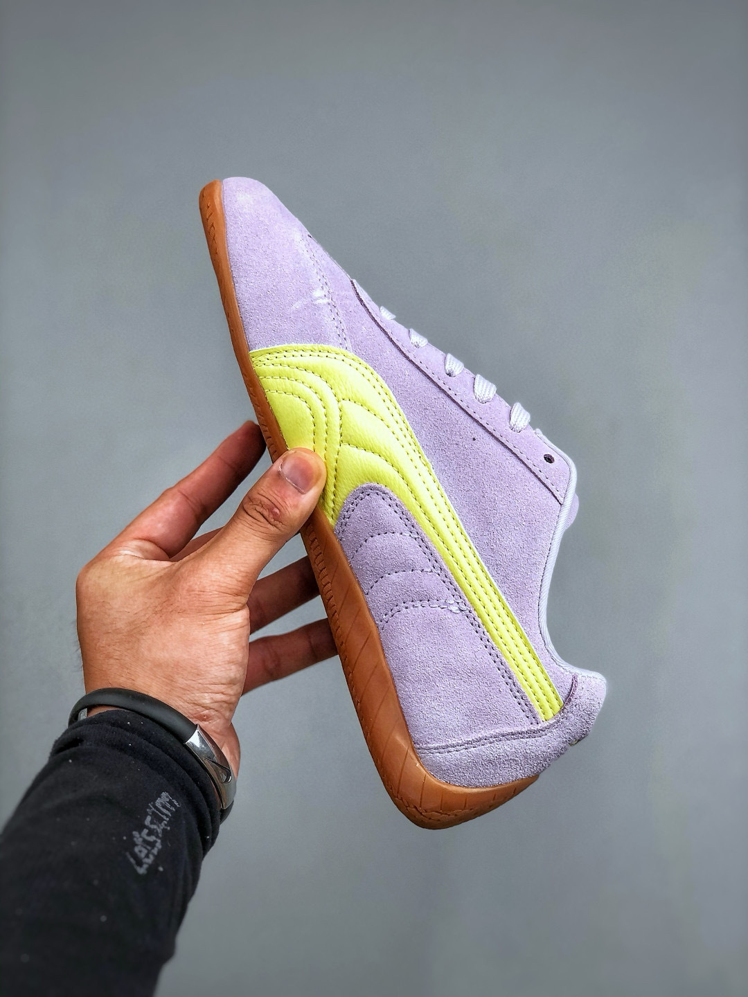 These Puma Speedcat OG sneakers are the perfect blend of classic style and modern comfort. Featuring a sleek lilac suede upper, these shoes are sure to turn heads wherever you go.