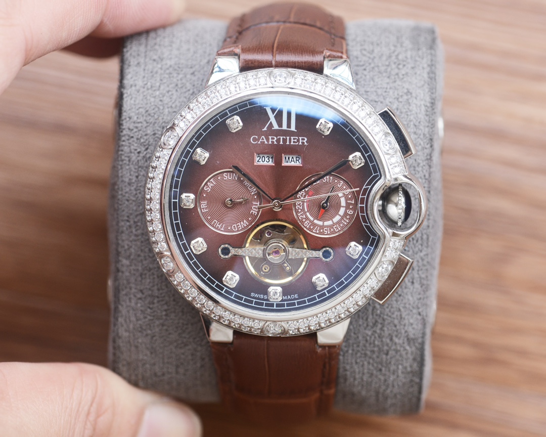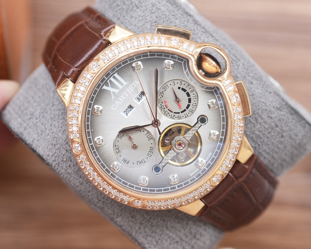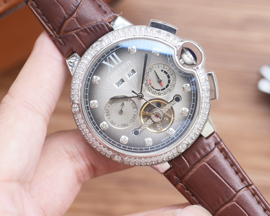 Cartier Men's Multifunctional Automatic Mechanical Watch with Leather Band
