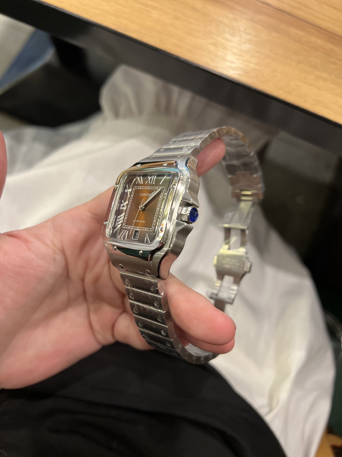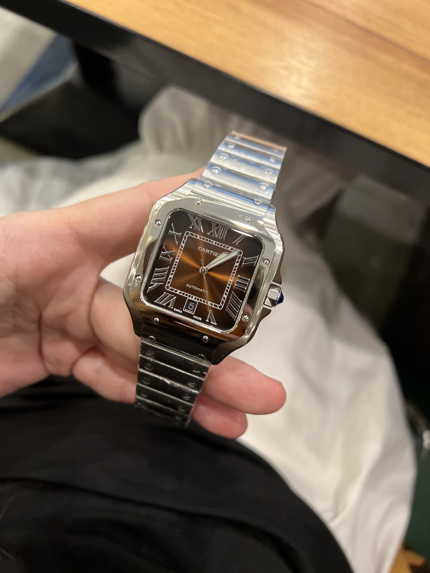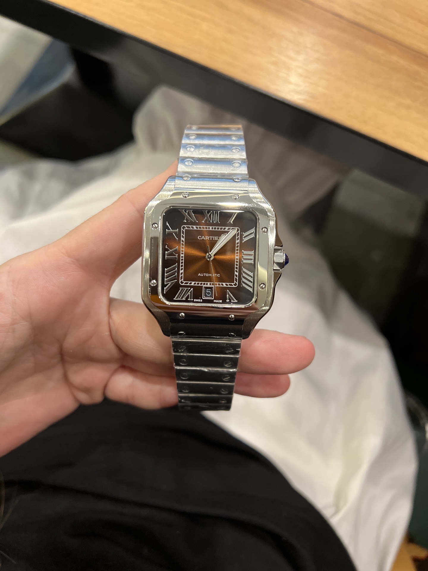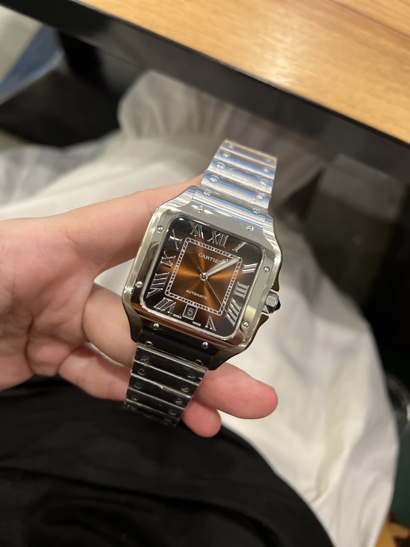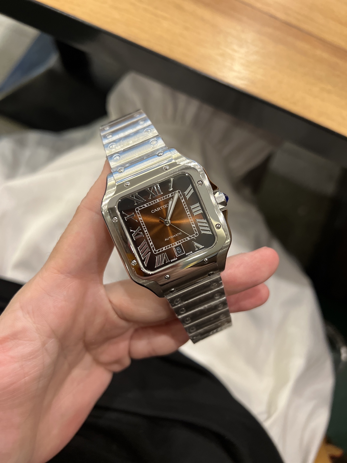 Cartier Santos de Cartier Automatic Silver Stainless Steel Brown Dial Watch