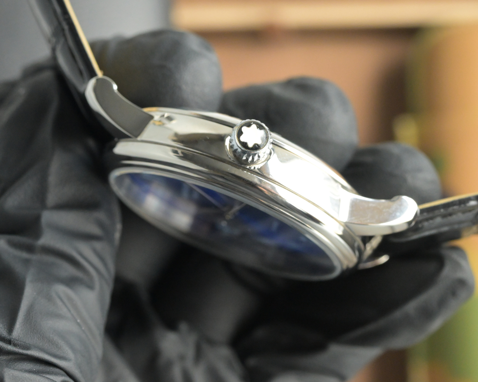 Montblanc Tradition Blue Dial Automatic Men's Watch, Silver Case, Leather Strap