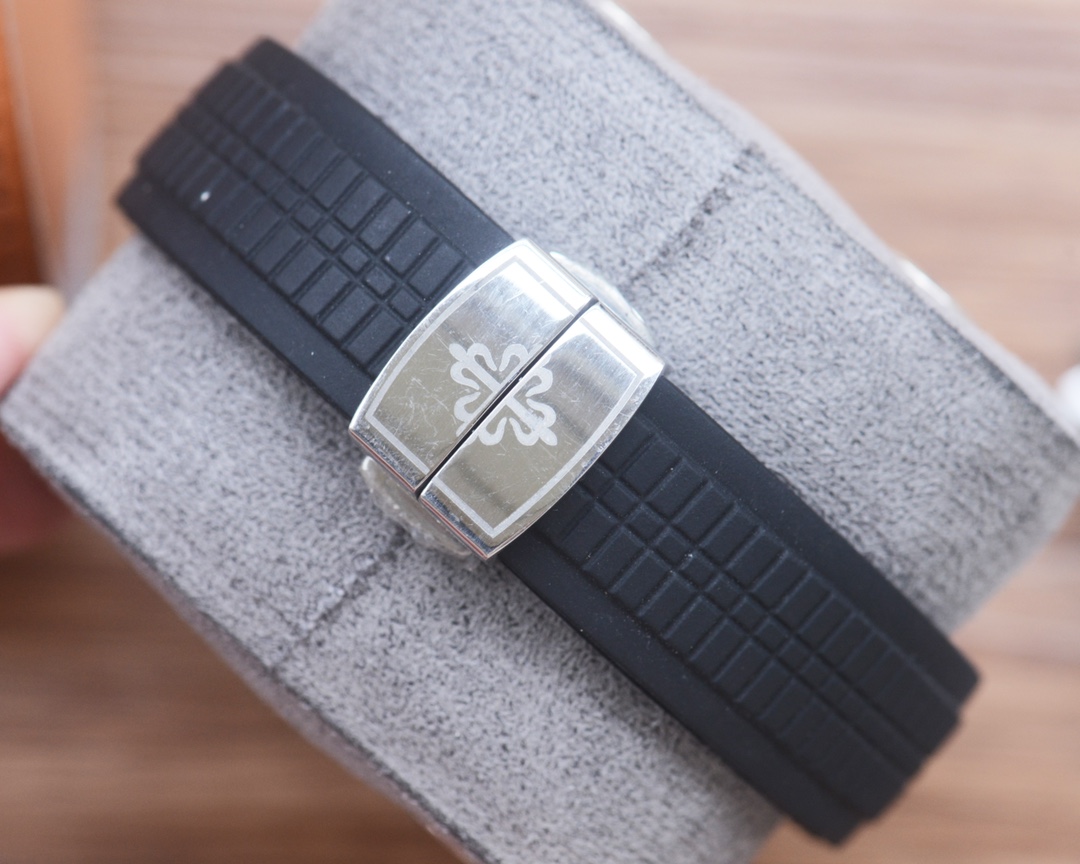 Patek Philippe Men's Automatic Watch with Rubber Strap and Engraved Case